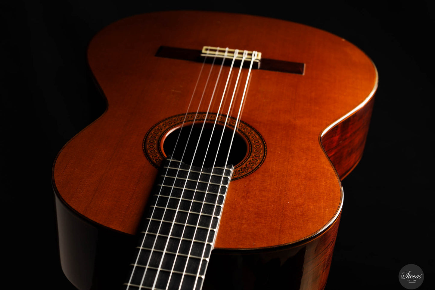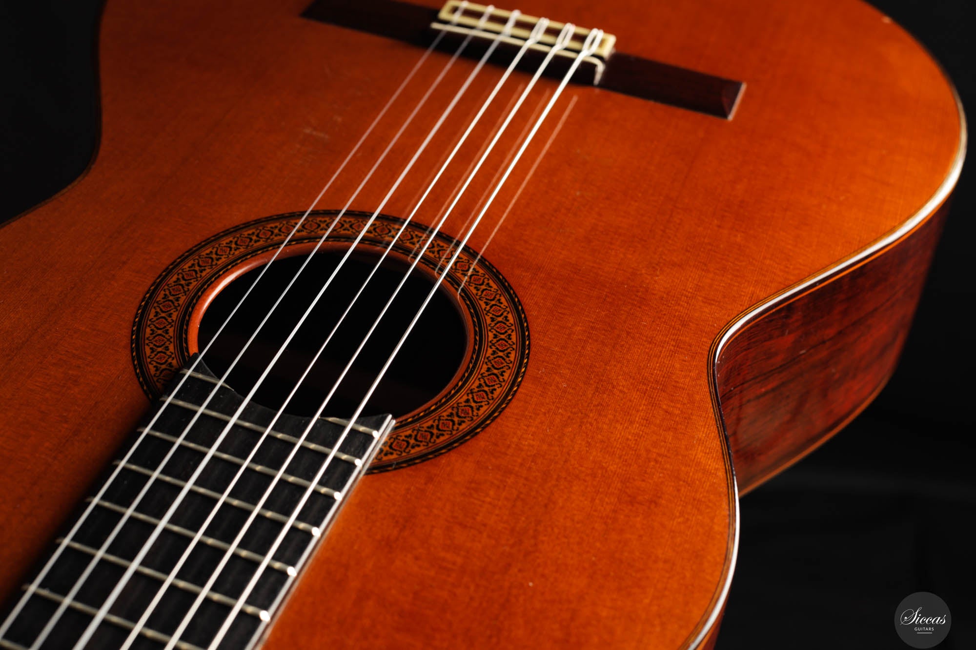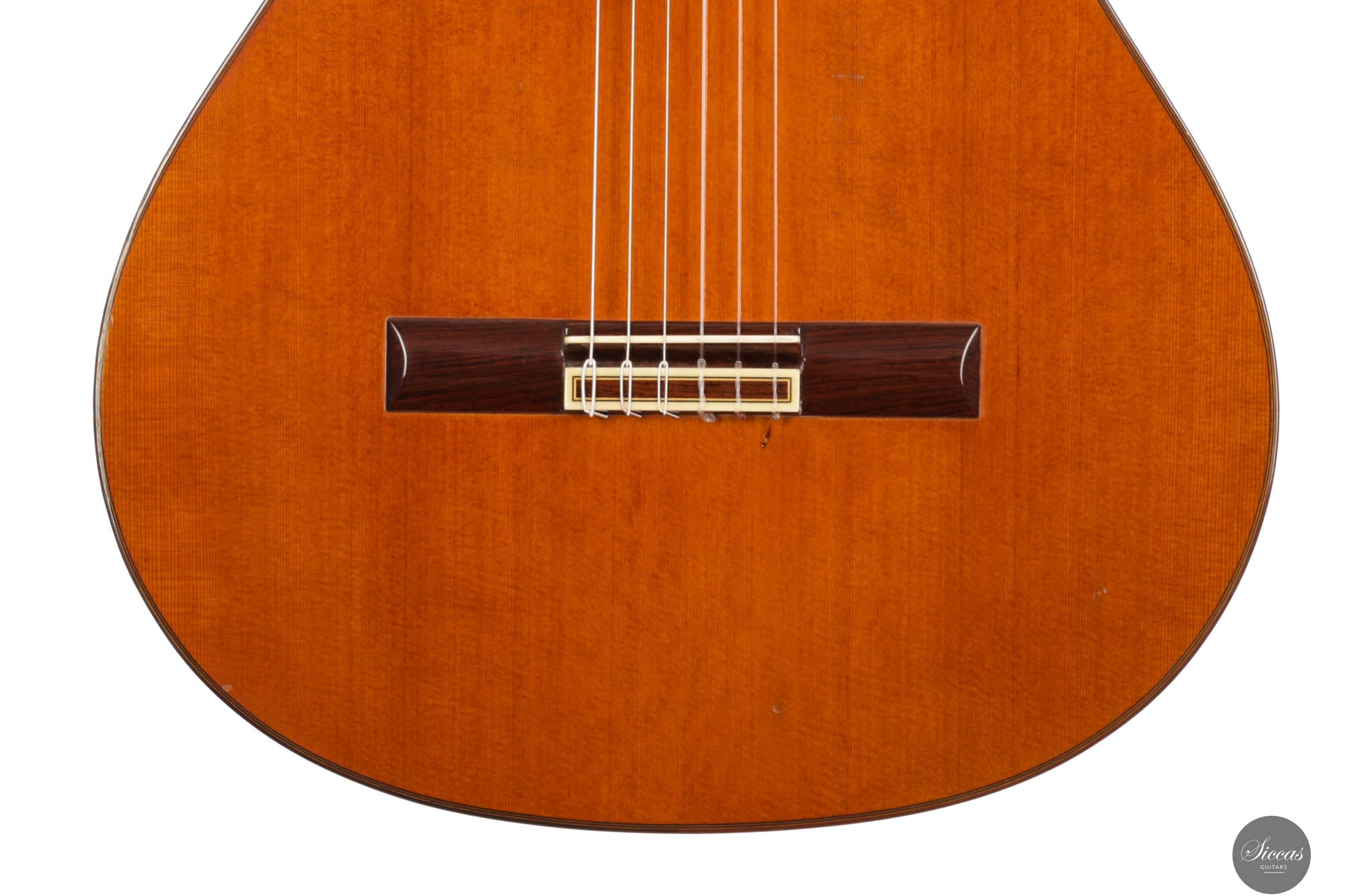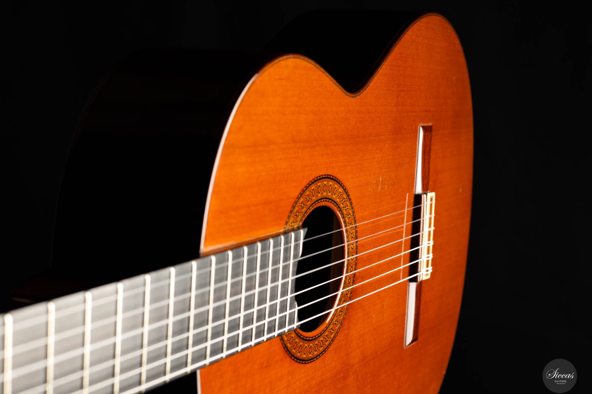 José Ramirez III (1922-1995) pioneered cedar tops for guitars. His instruments gained international fame in the 1960s through Andrés Segovia and his many students. In 1965, José Ramirez III began developing a new instrument built with a top made of Western Red Cedar (Thuja plicata) and double sides (rosewood and cypress). This revolutionary new way of building guitars and using this innovative type of wood spread very quickly in the guitar world. In addition, Andrés Segovia played several J. Ramirez III was his main concert instrument. He played four instruments over an extended period [1962 (but dated 1963), Spruce, 1965, 1967, 1969 (all three cedar).