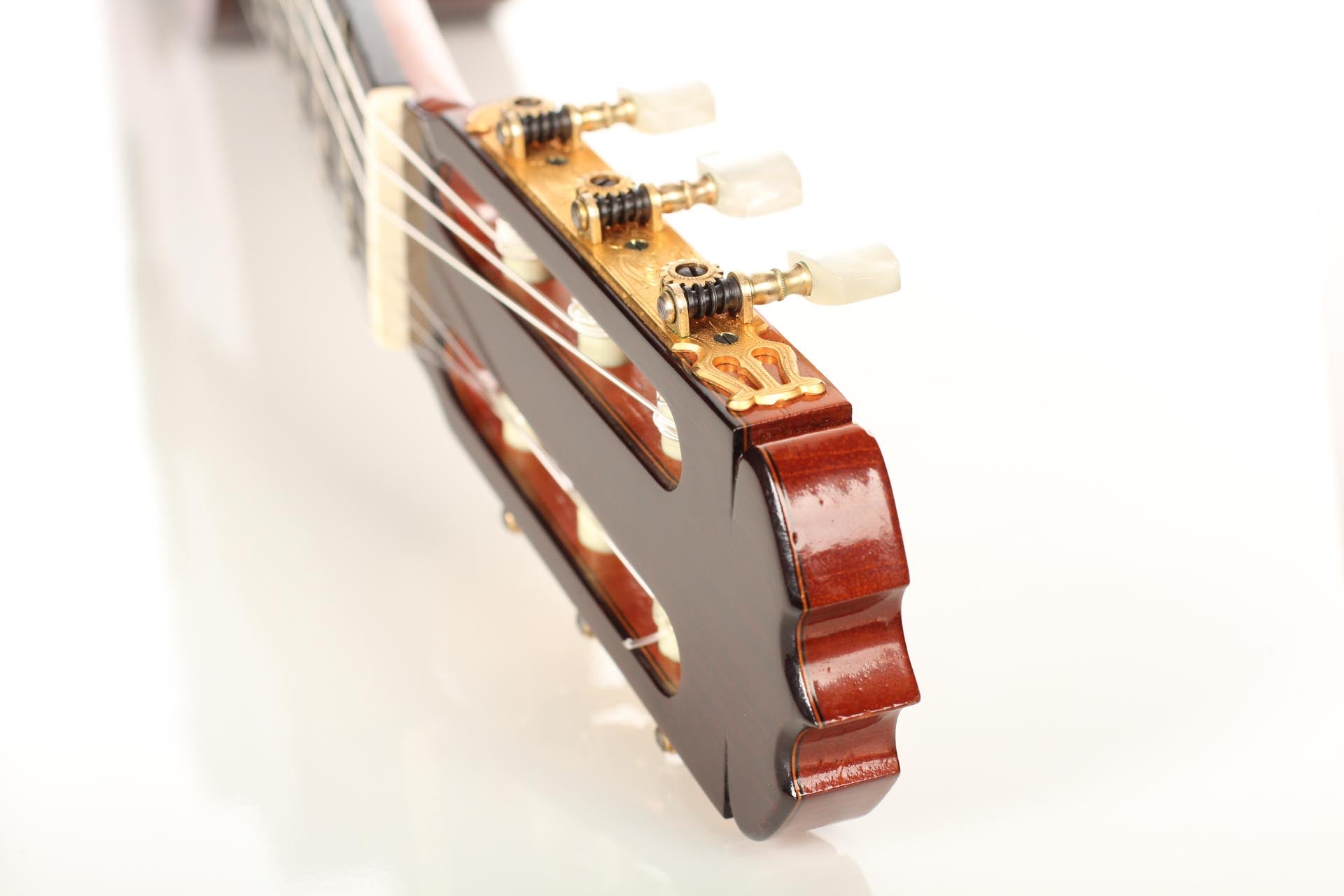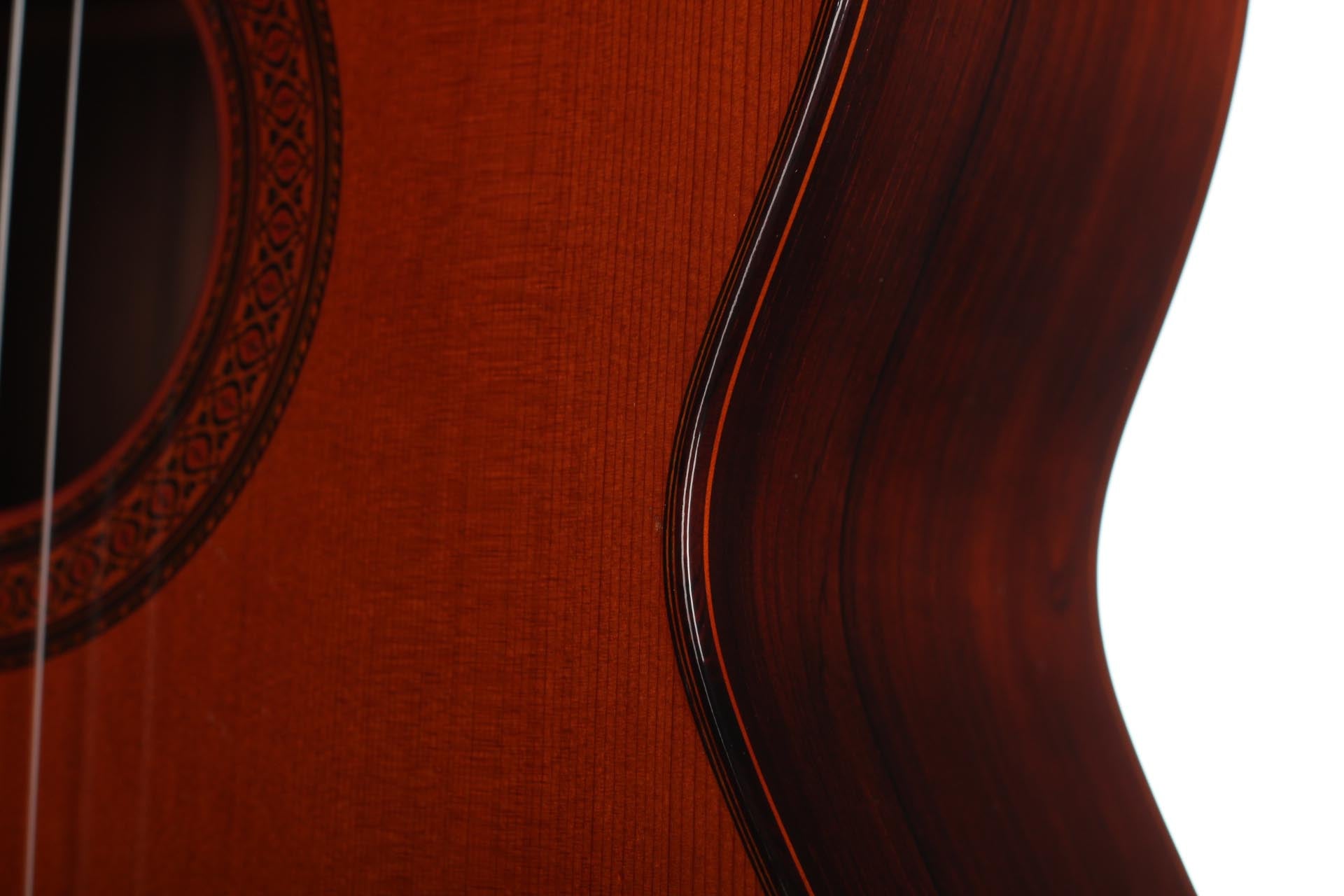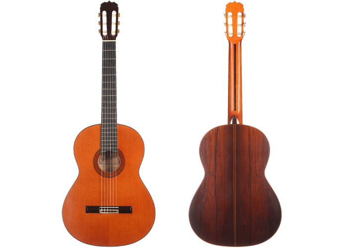 This guitar was built in 1971 and has a cedar top and stunning CITES-certified Brazilian rosewood back and sides. The ample basses are very strong, warm and responsive. The balance between bass and treble is excellent and the sympathetic resonances are supporting the mediums to give a very complete instrument. The guitar is in near original mint condition with only a very few superficial playing marks. Altogether, the original condition of this guitar and its beautiful sound makes it very interesting for both players and collectors. The tuning machines are made by Fustero. The original hard-shell case is included.
