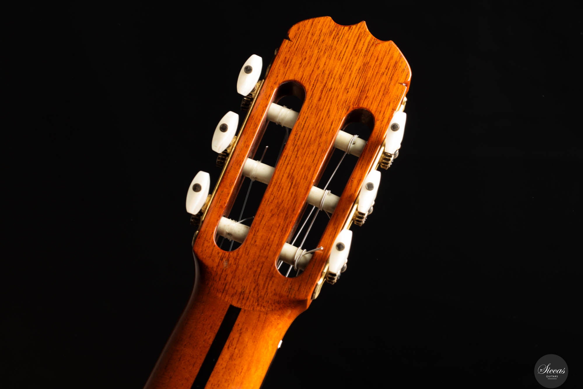 This José Ramírez 1a, number 9525, was built in 1976 and represents the golden era of the Ramírez workshop under José Ramírez III. The number 19 stamped under the soundboard identifies Julian Moraga Rodríguez as the luthier who crafted this instrument.