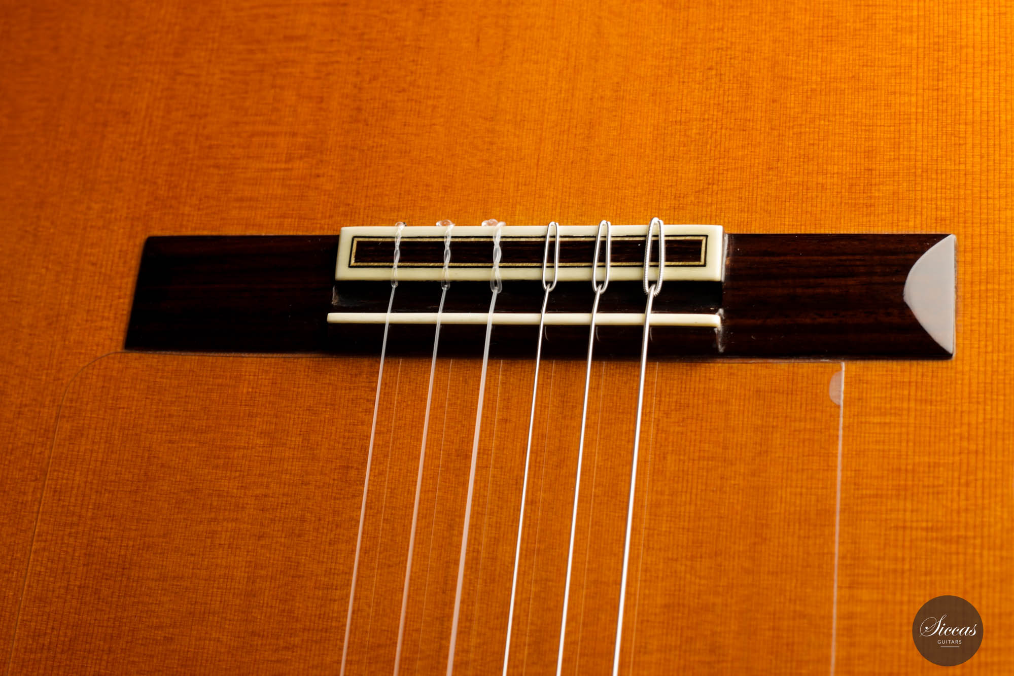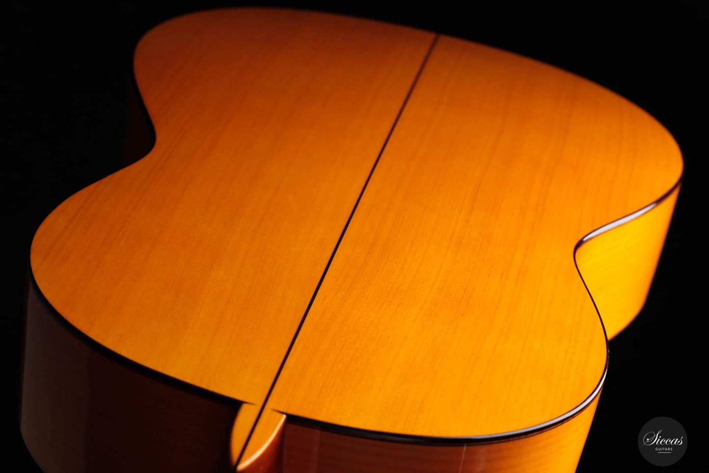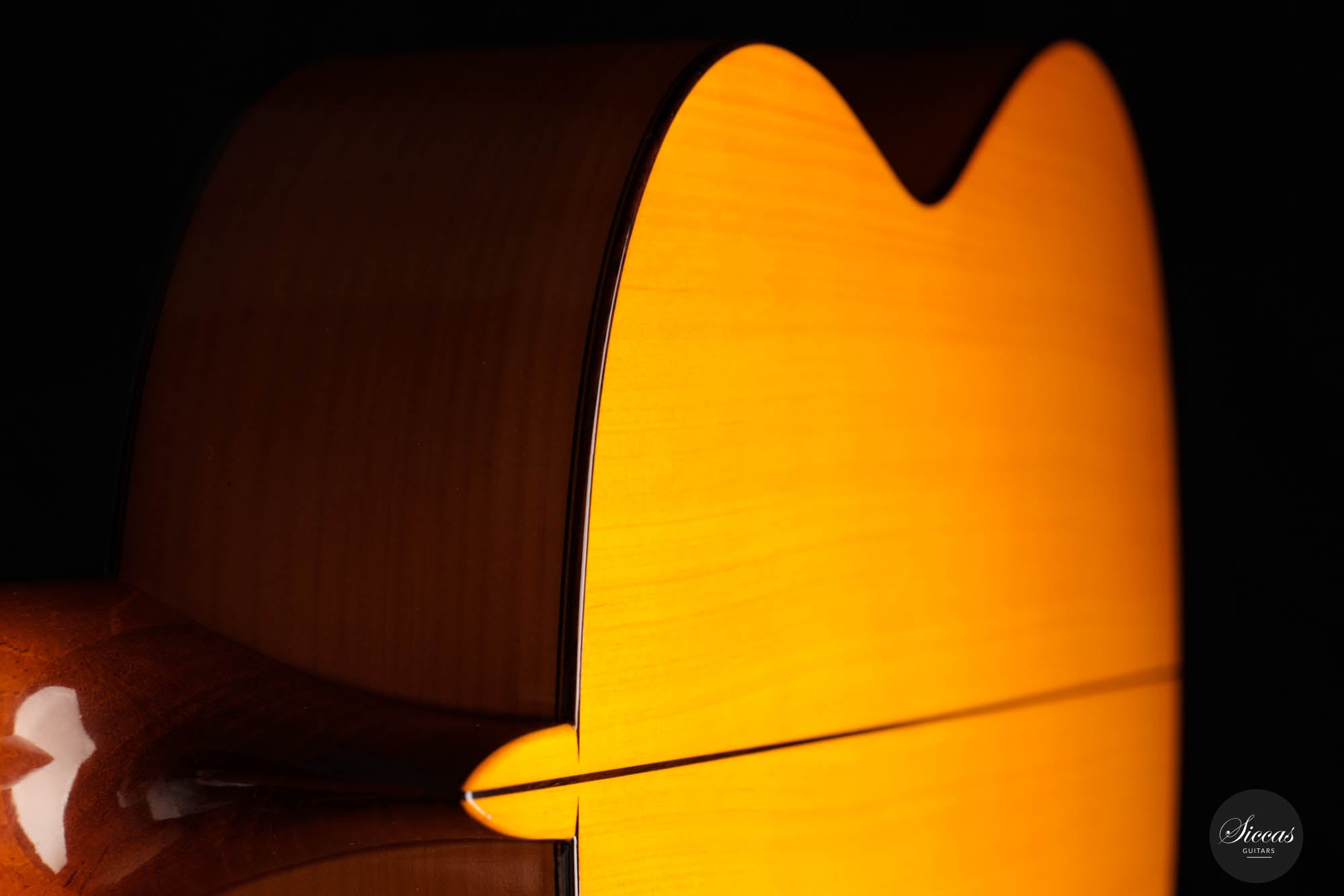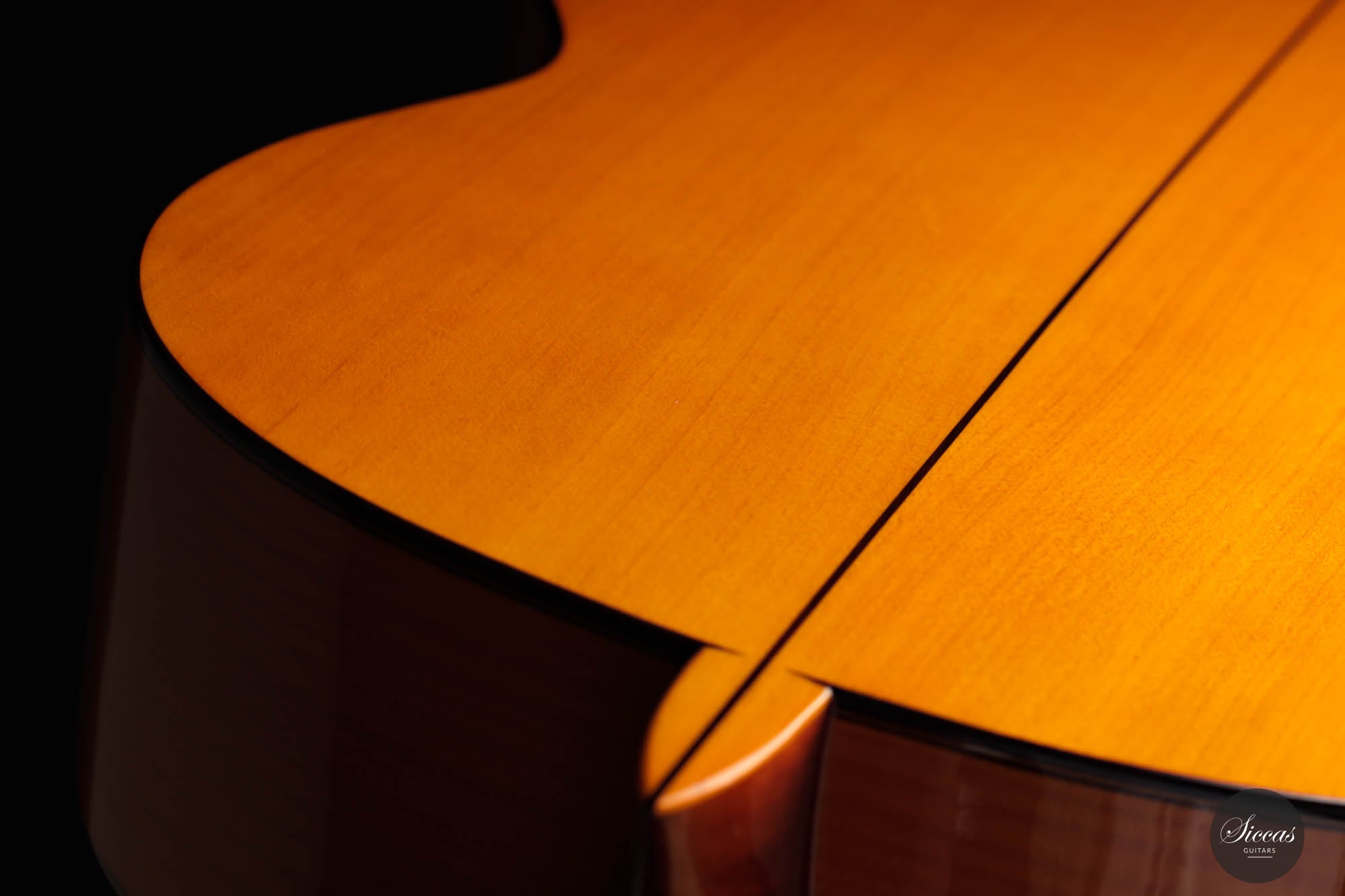 José Ramirez III (1922-1995) was a pioneer of cedar tops for guitars. His instruments gained international fame in the 1960s through Andrés Segovia and his many students. Starting in 1965, José Ramirez III began developing a new instrument built with a top made of Western Red Cedar (Thuja plicata) and featuring double sides (rosewood and cypress). This revolutionary new way of building guitars and the use of this innovative type of wood spread very quickly in the guitar world. In addition, Andrés Segovia played several J. Ramirez III as his main concert instrument. He played four instruments over an extended period of time [1962 (but dated 1963), Spruce, 1965, 1967, 1969 (all three cedar)].