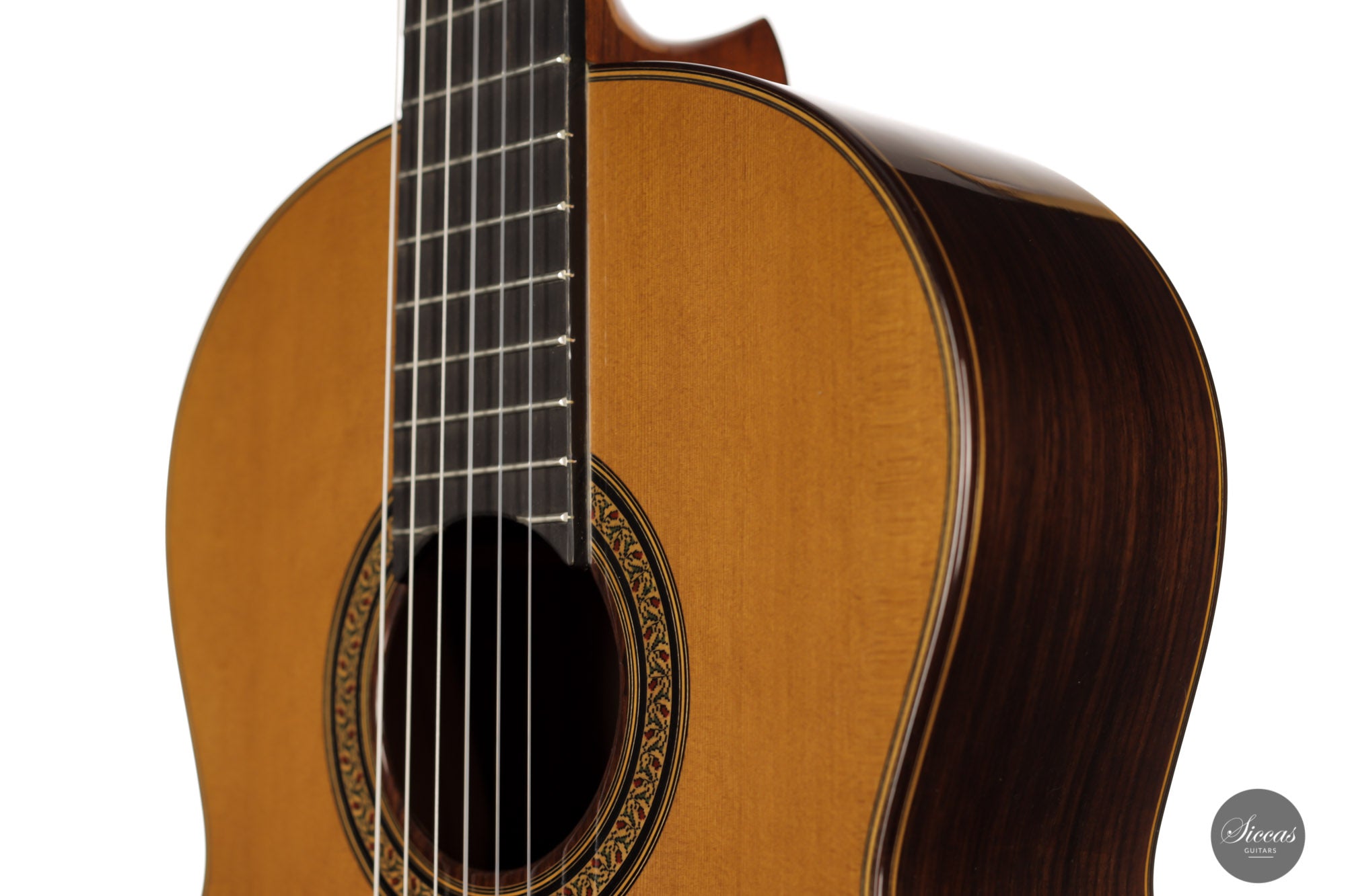This absolute classic José Ramirez 1A was built in 2004 in the legendary Madrilean workshop, under the guidance of Amalia Ramirez, the fifth generation of the Ramirez Dynasty. It has a cedar soundboard and Indian rosewood back and sides, a timeless combination making for a warm, powerful and rich sound. A pleasing feature is the 65 cm scale, which contrasts with the more demanding 66,4 cm scale of the 60s and 70s models, making this guitar a comfortable instrument with a genuine Spanish tone. Condition-wise, this guitar is close to flawless, with very scarce playing marks, original Fustero tuners, and an optimal playing setup.
