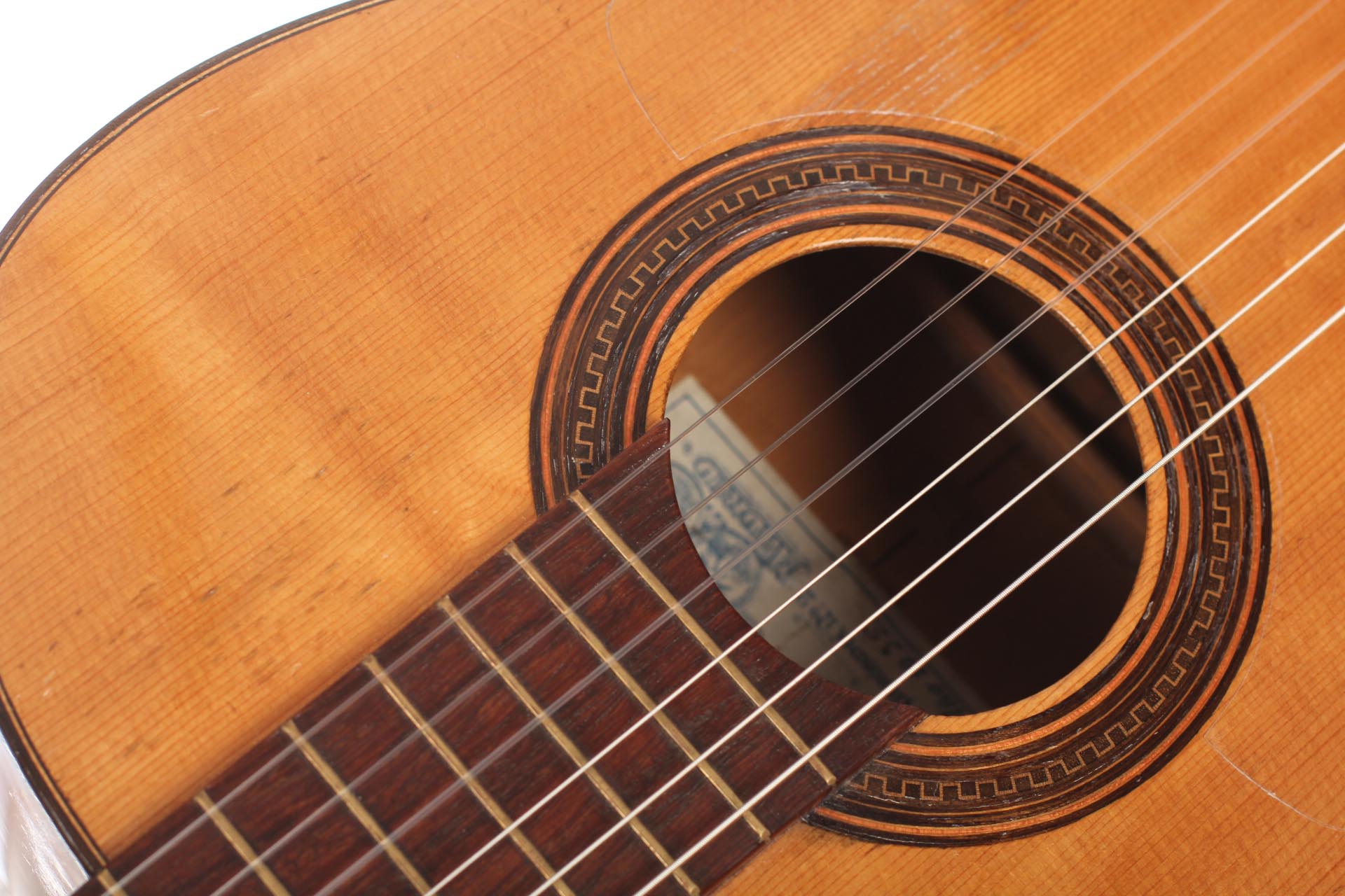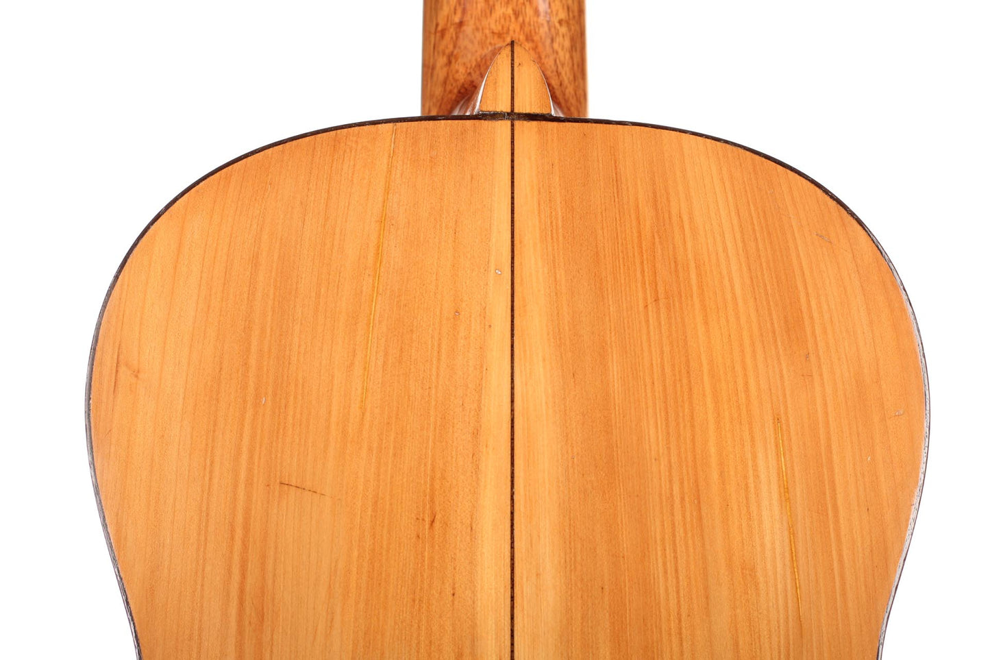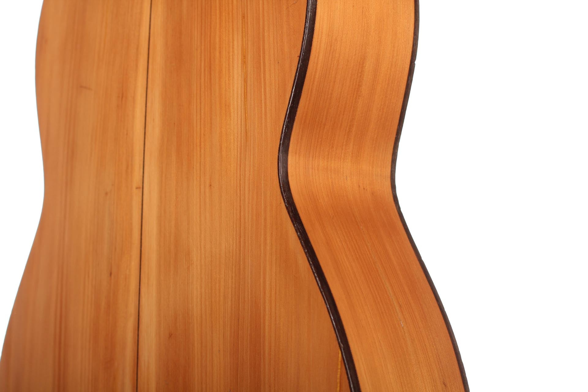 This very light flamenco guitar was built in 1935 in Madrid by José Ramirez II. It has a spruce top and Spanish cypress back and sides. It is a very responsive small bodied instrument with a direct response and playful colours. The tuning pegs are very good, the guitar is easy to tune and light to handle. This is a very special guitar with a bright, silvery and voluminous tone. The guitar is in overall very good condition for its age. A hard-shell case is included.