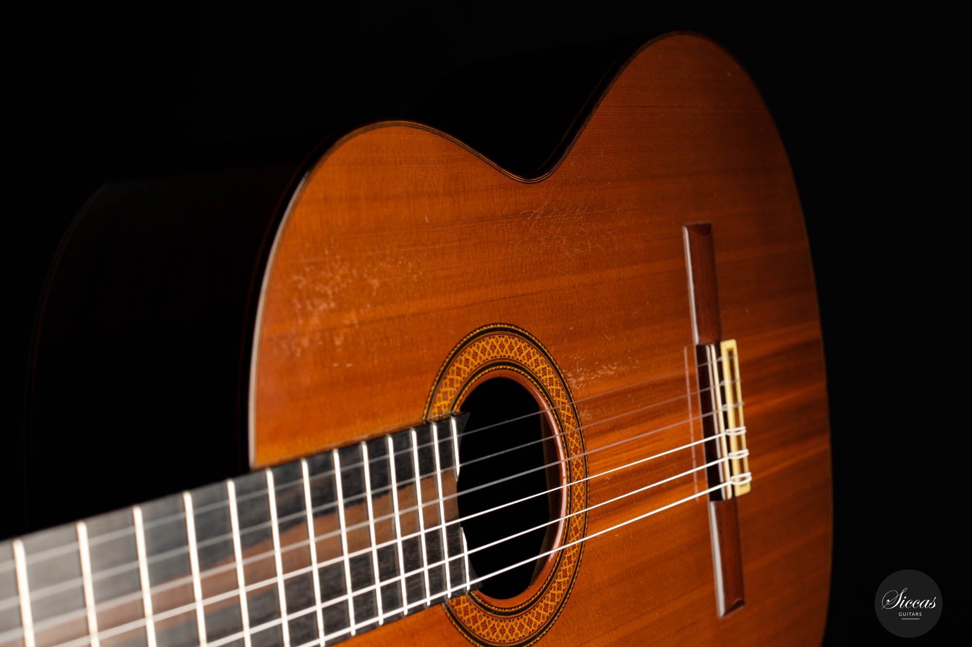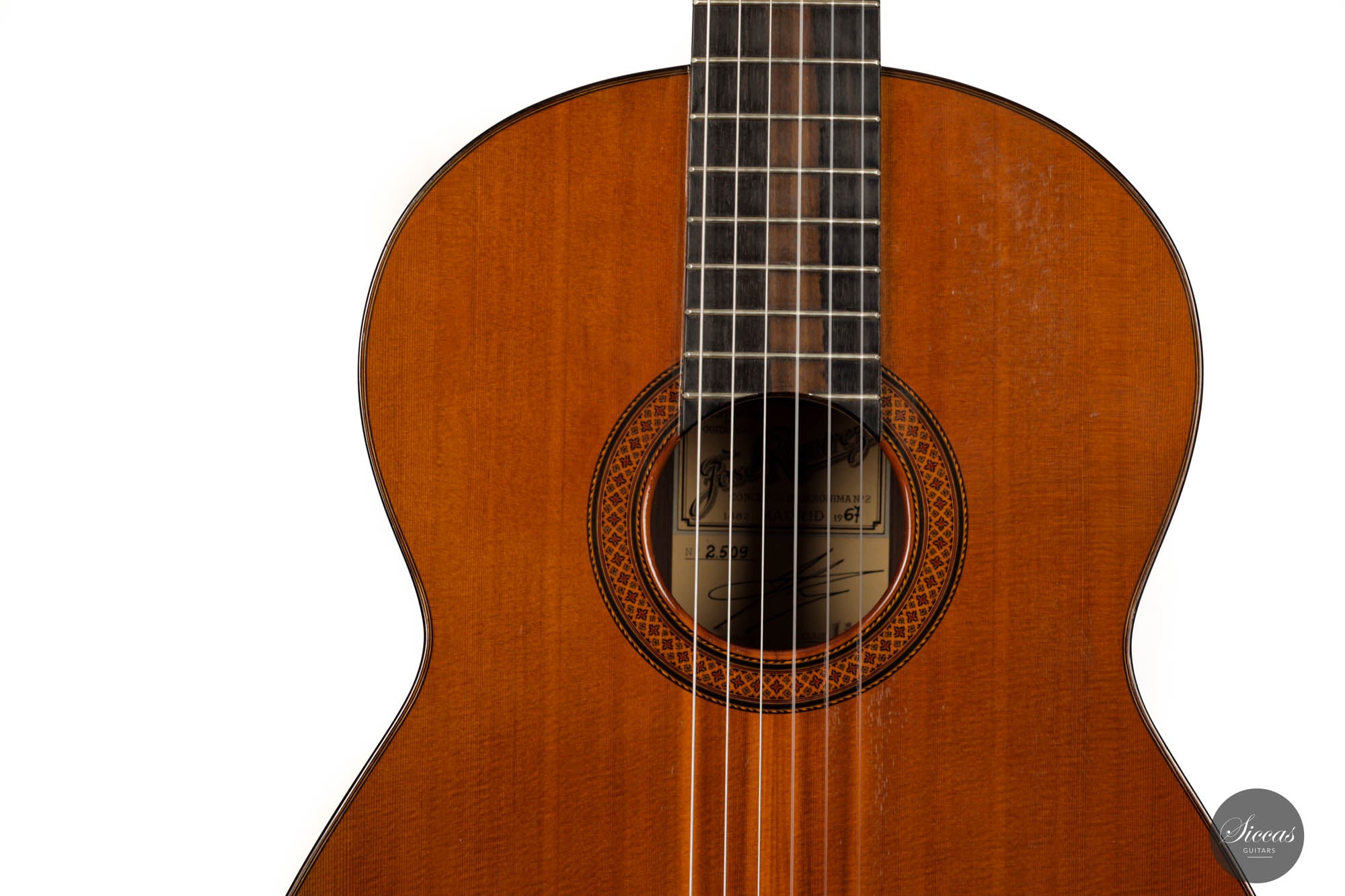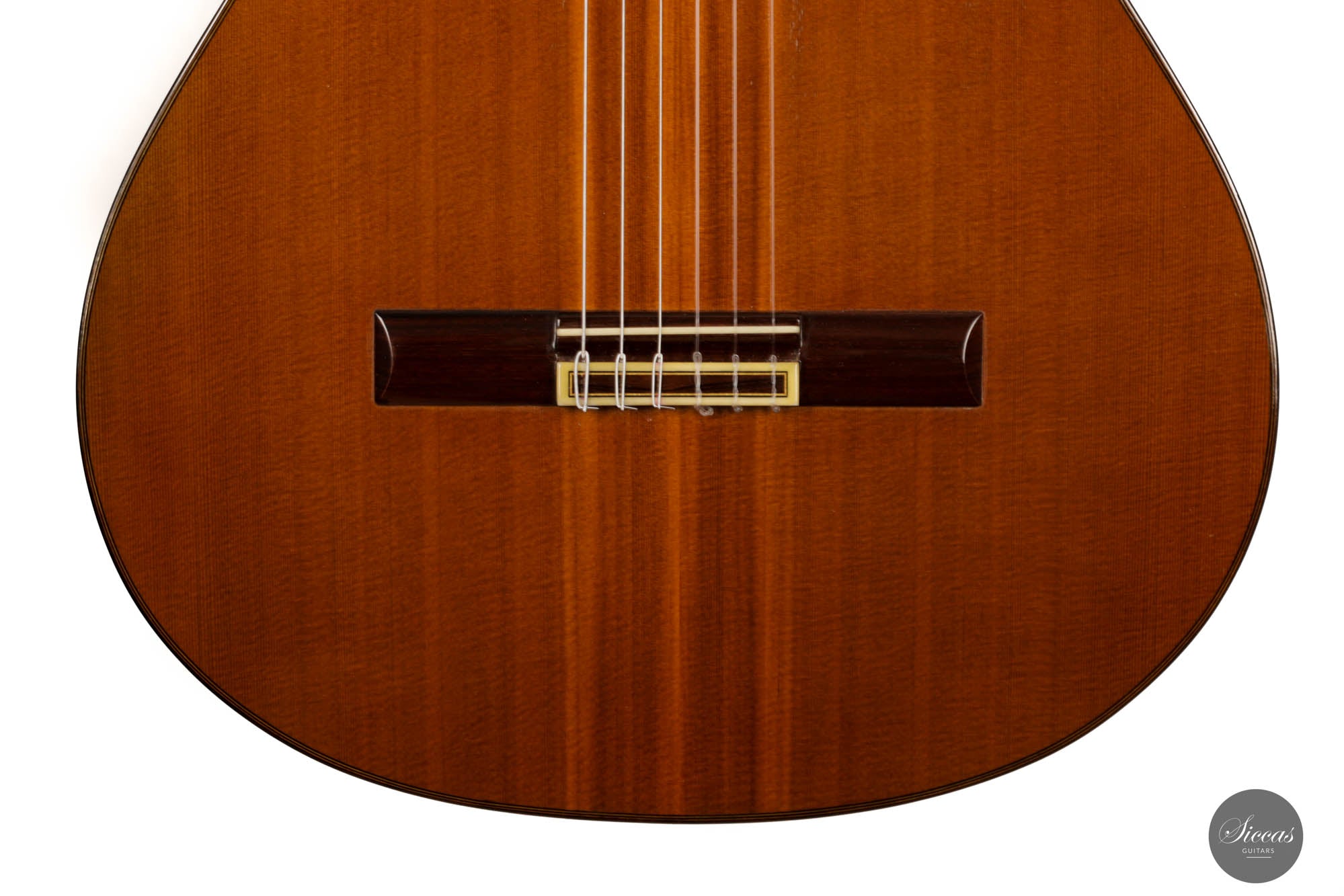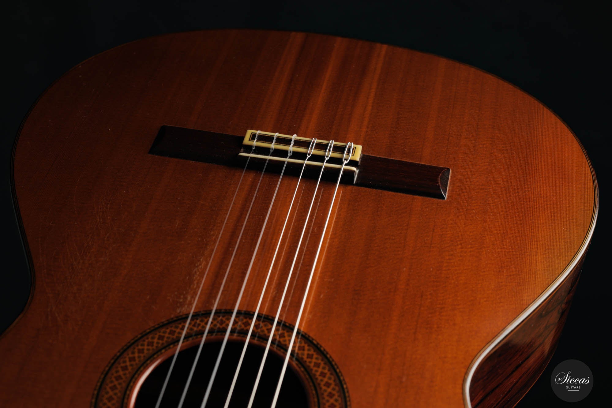 José Ramirez III (1922-1995) pioneered cedar tops for guitars. His instruments gained international fame in the 1960s through Andrés Segovia and his many students. In 1965, José Ramirez III began developing a new instrument built with a top made of Western Red Cedar (Thuja plicata) and double sides (rosewood and cypress). This revolutionary new way of building guitars and using this innovative type of wood spread very quickly in the guitar world. In addition, Andrés Segovia played several J. Ramirez III was his main concert instrument. He played four instruments over an extended period [1962 (but dated 1963), Spruce, 1965, 1967, 1969 (all three cedar)].