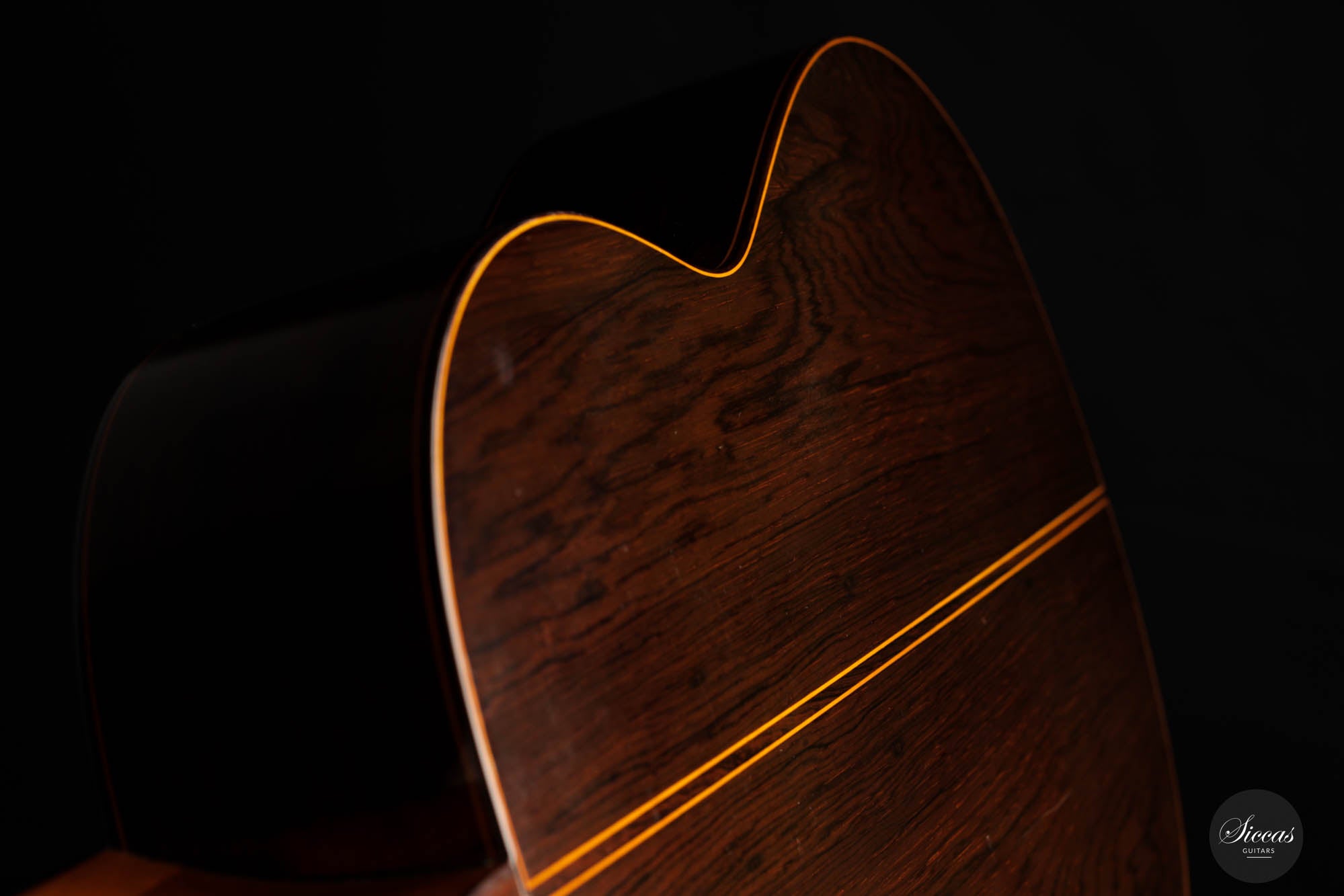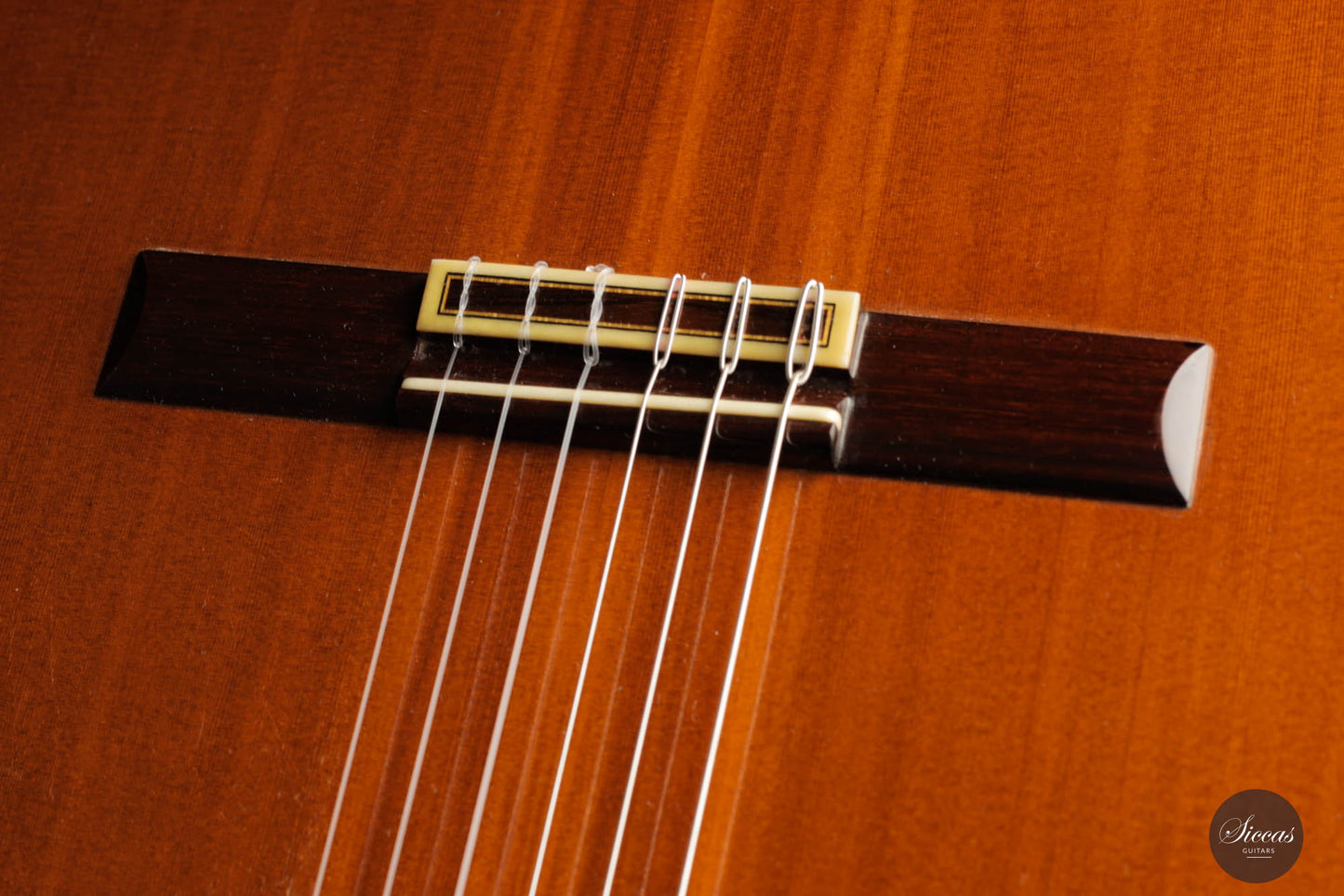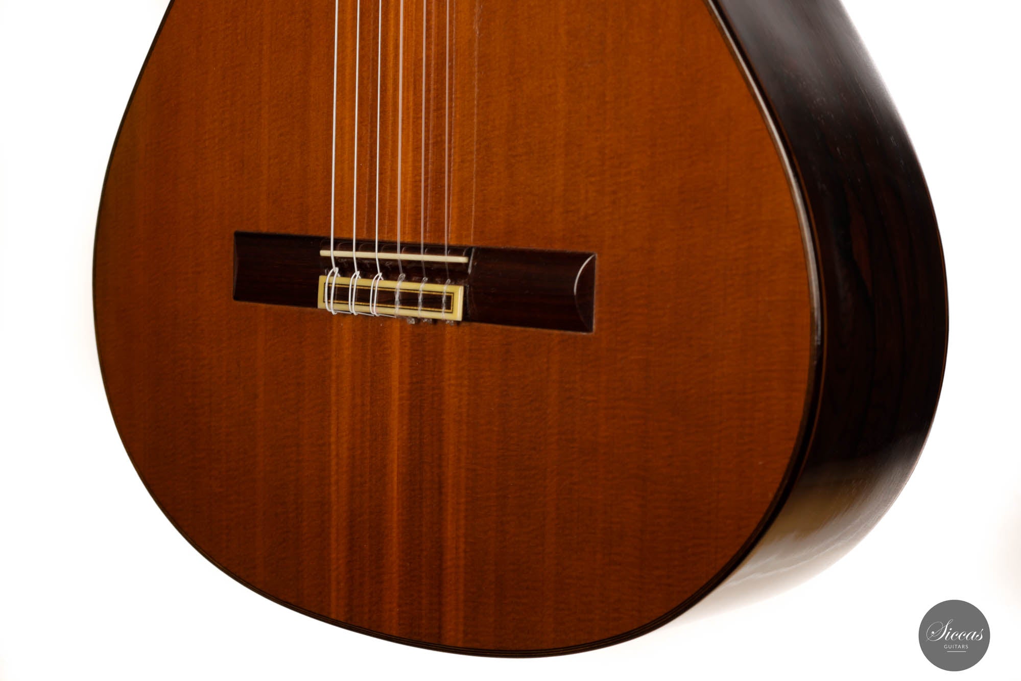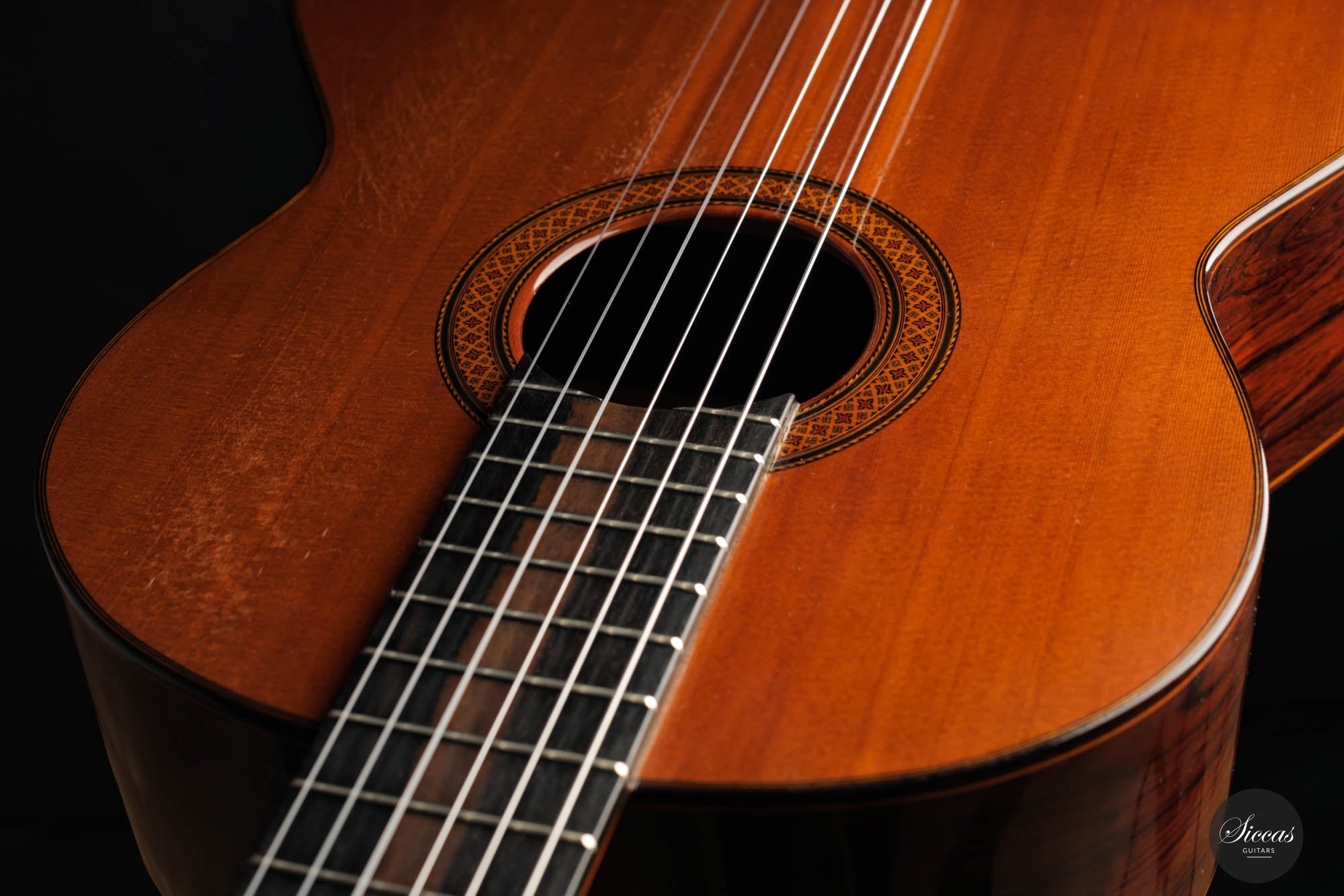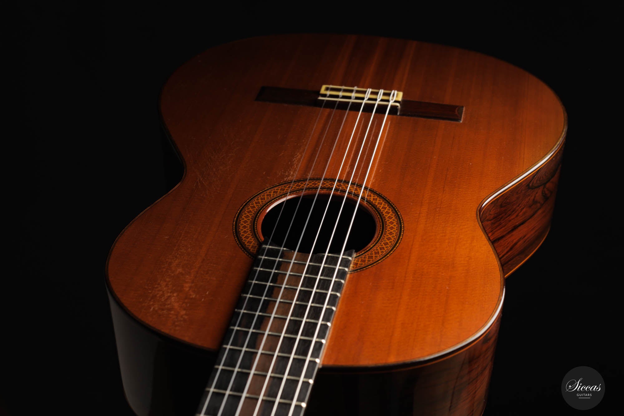 José Ramirez III (1922-1995) pioneered cedar tops for guitars. His instruments gained international fame in the 1960s through Andrés Segovia and his many students. In 1965, José Ramirez III began developing a new instrument built with a top made of Western Red Cedar (Thuja plicata) and double sides (rosewood and cypress). This revolutionary new way of building guitars and using this innovative type of wood spread very quickly in the guitar world. In addition, Andrés Segovia played several J. Ramirez III was his main concert instrument. He played four instruments over an extended period [1962 (but dated 1963), Spruce, 1965, 1967, 1969 (all three cedar)].