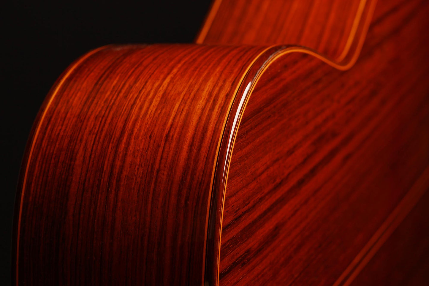What a roundness in the sound. The notes are balanced all along the fingerboard and the sustain is very consistent. It is a lovely concert guitar with a generous volume, wide dynamic possibilities and a rich palette of sound colours. With its strong projection, it is easy to play and can undoubtedly fill concert halls.