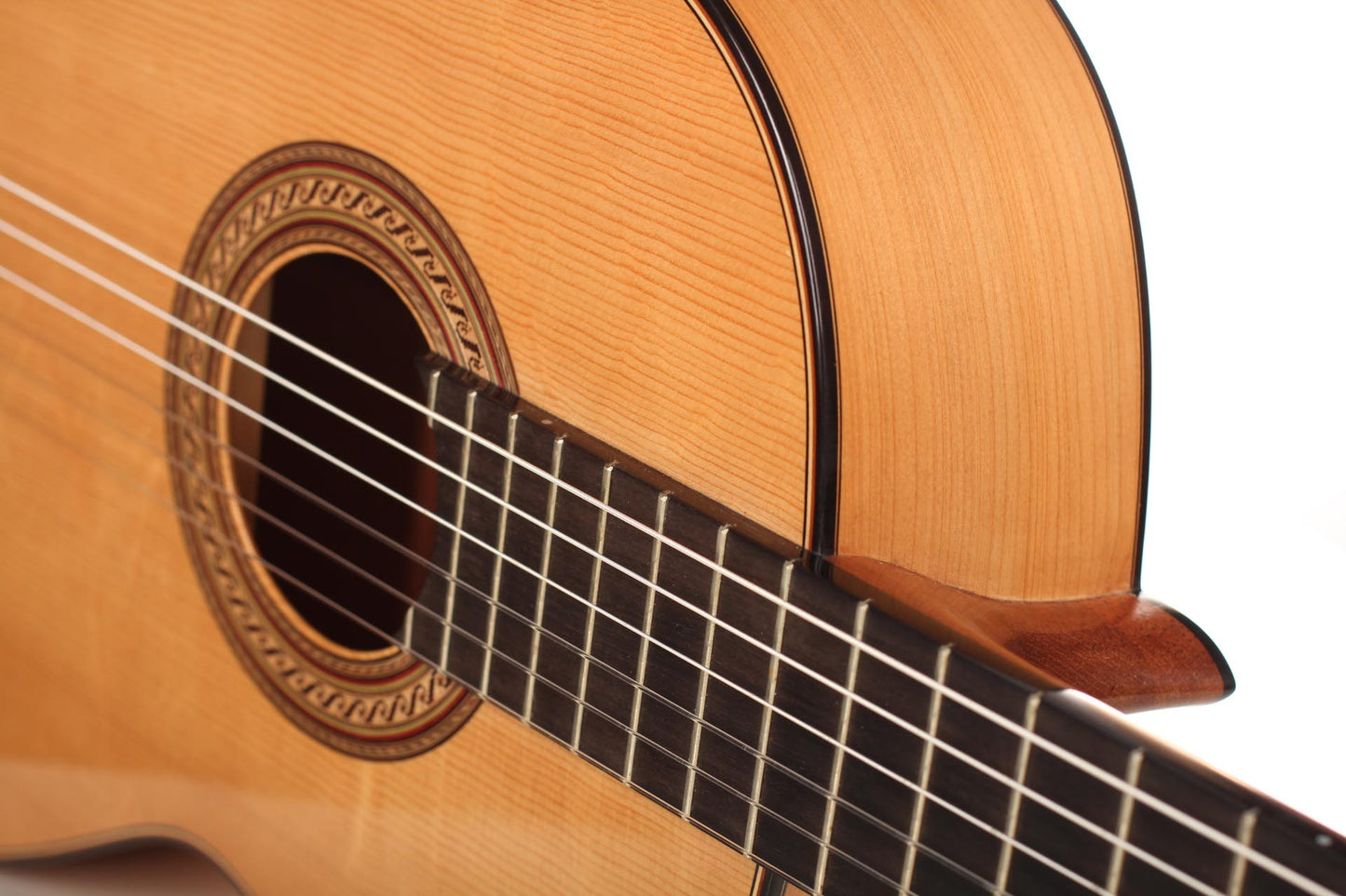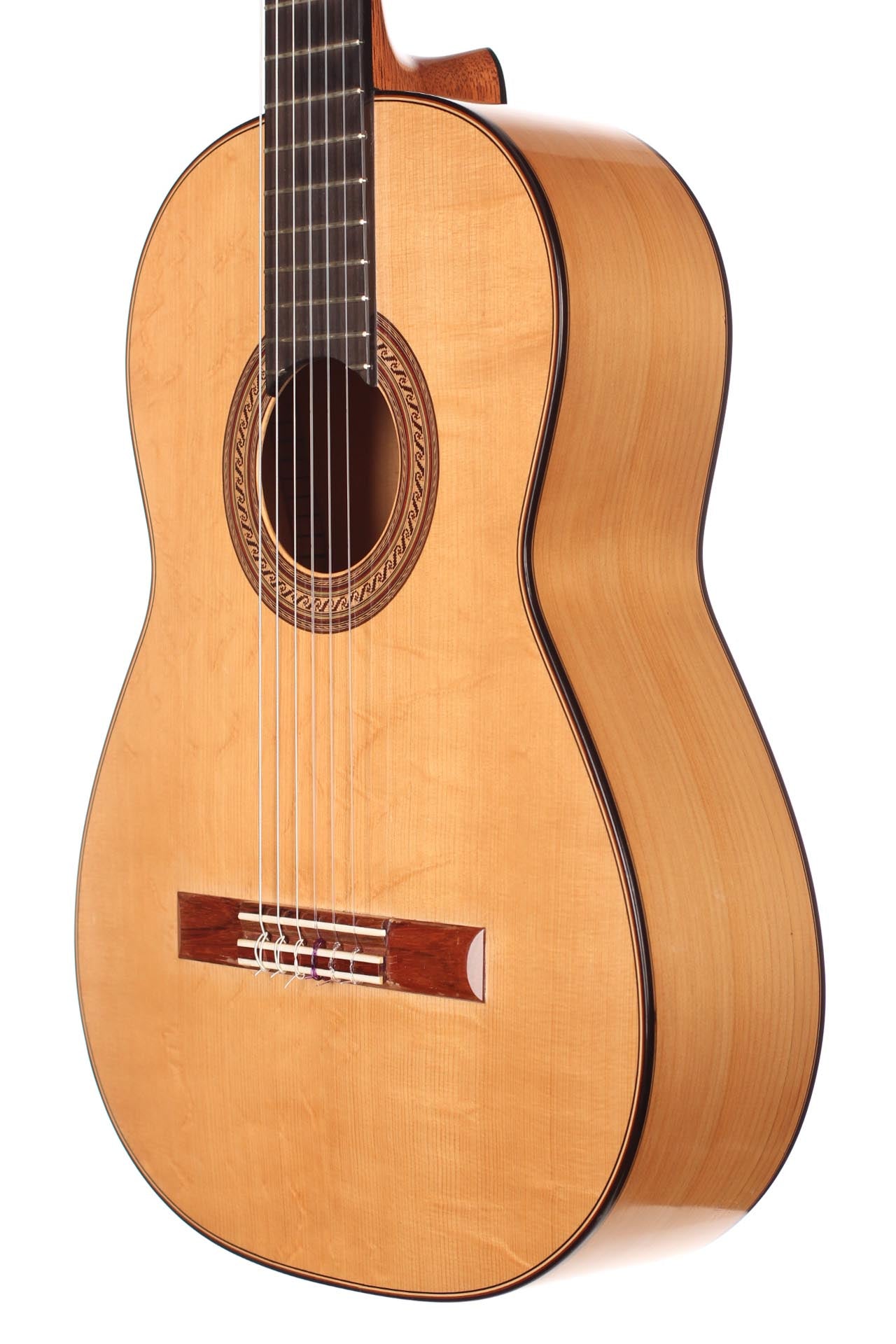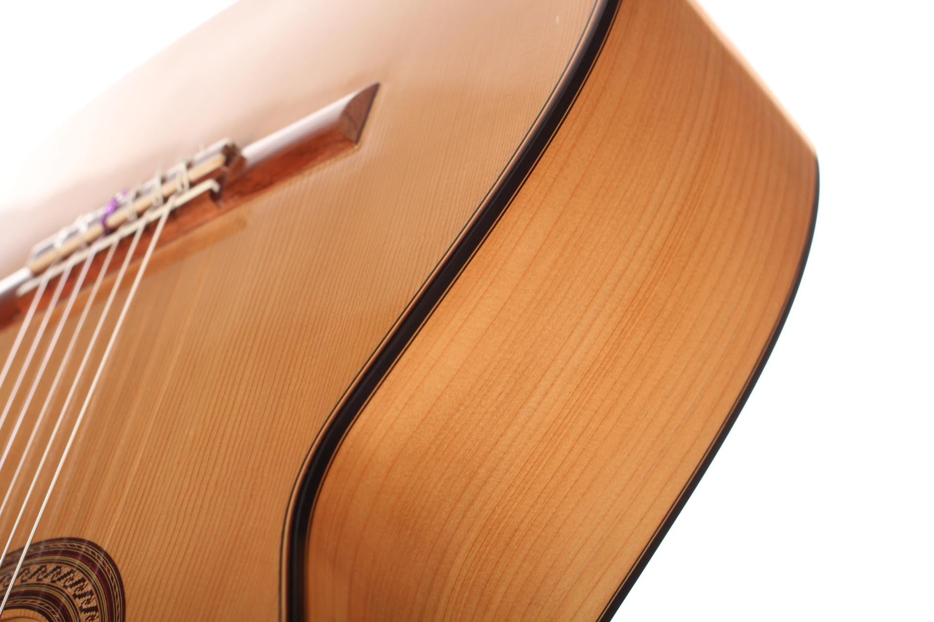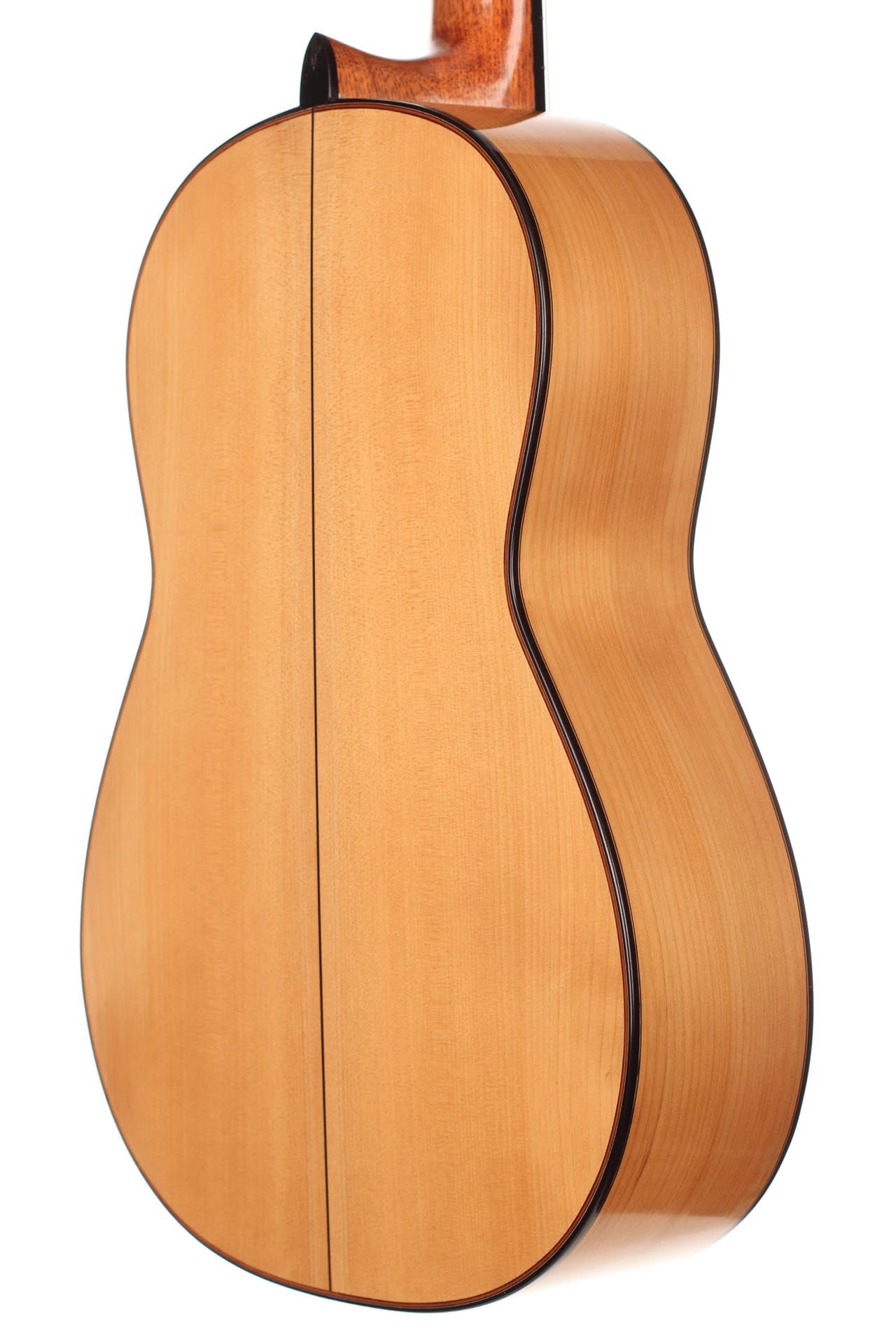 This guitar, named “La Compañera”, was built in 1993 by José Luis Romanillos and is wearing the number 91. It was made for Pepe Romero which is documented in pencil in the inside of the top. The guitar’s fine spruce top is featuring extensive “Bear claws”. Back and sides are made of thoroughly selected cypress and the guitar is in almost perfect condition. It is has no cracks nor repairs and has its original French polish finish. This instrument has an incredibly rich and delicate sound. It opens endless colours and expression possibilities that emphasize musical dynamics. It is really a guitar to play thoroughly and take the time to discover. The cypress back and sides give a great spontaneity to the top’s response. The long and clear sustain of the singing first string is an undeniable proof of the immense skills, craftmanship and wood knowledge of Romanillos. We are absolutely delighted and honoured to offer this prodigious masterpiece in our showroom and are sure that any guitarist would be seduced from the first note on.