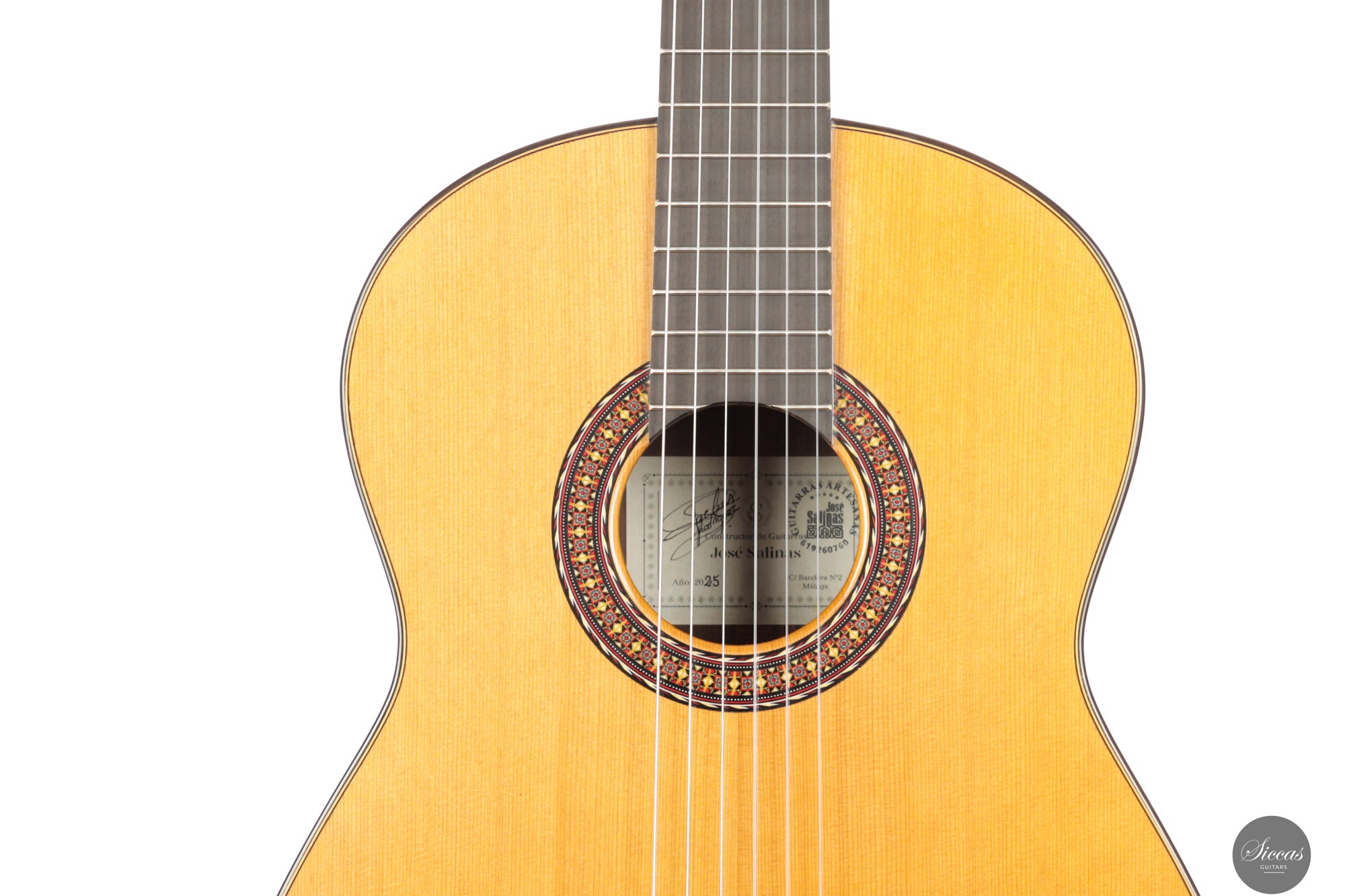 José Salinas is one of the most respected names in Spanish guitar making, known not only for his work as a flamenco singer but also for his finely crafted classical and flamenco instruments. His guitars reflect a deep understanding of Spanish tonal tradition, combined with precise construction and responsiveness suitable for professional performance.