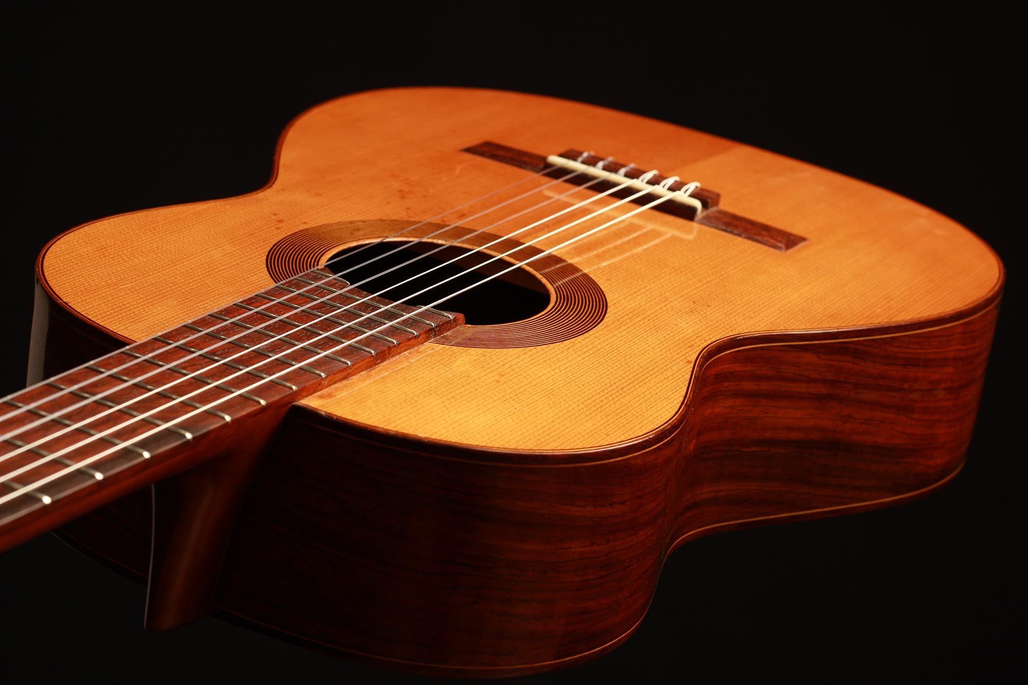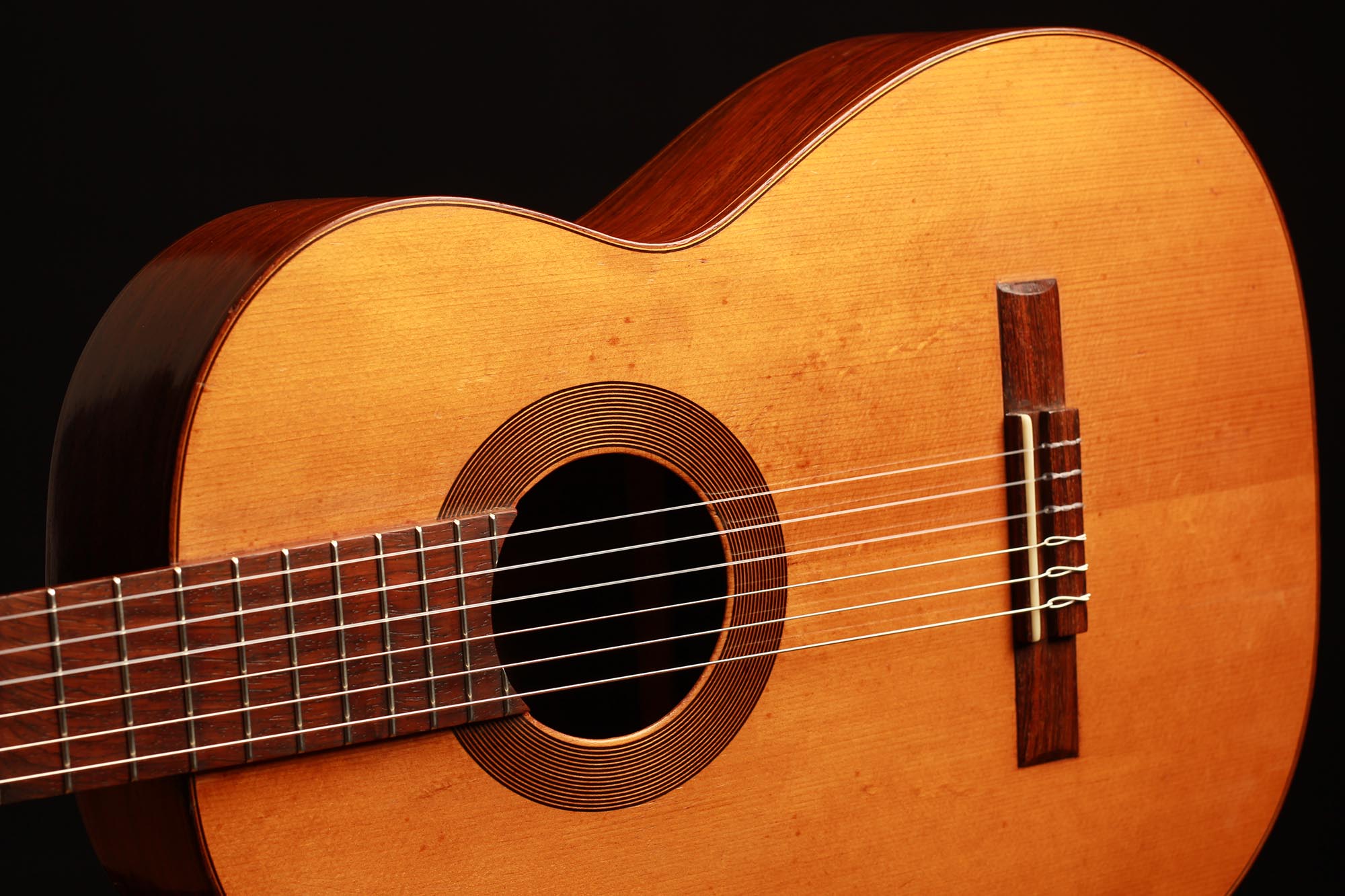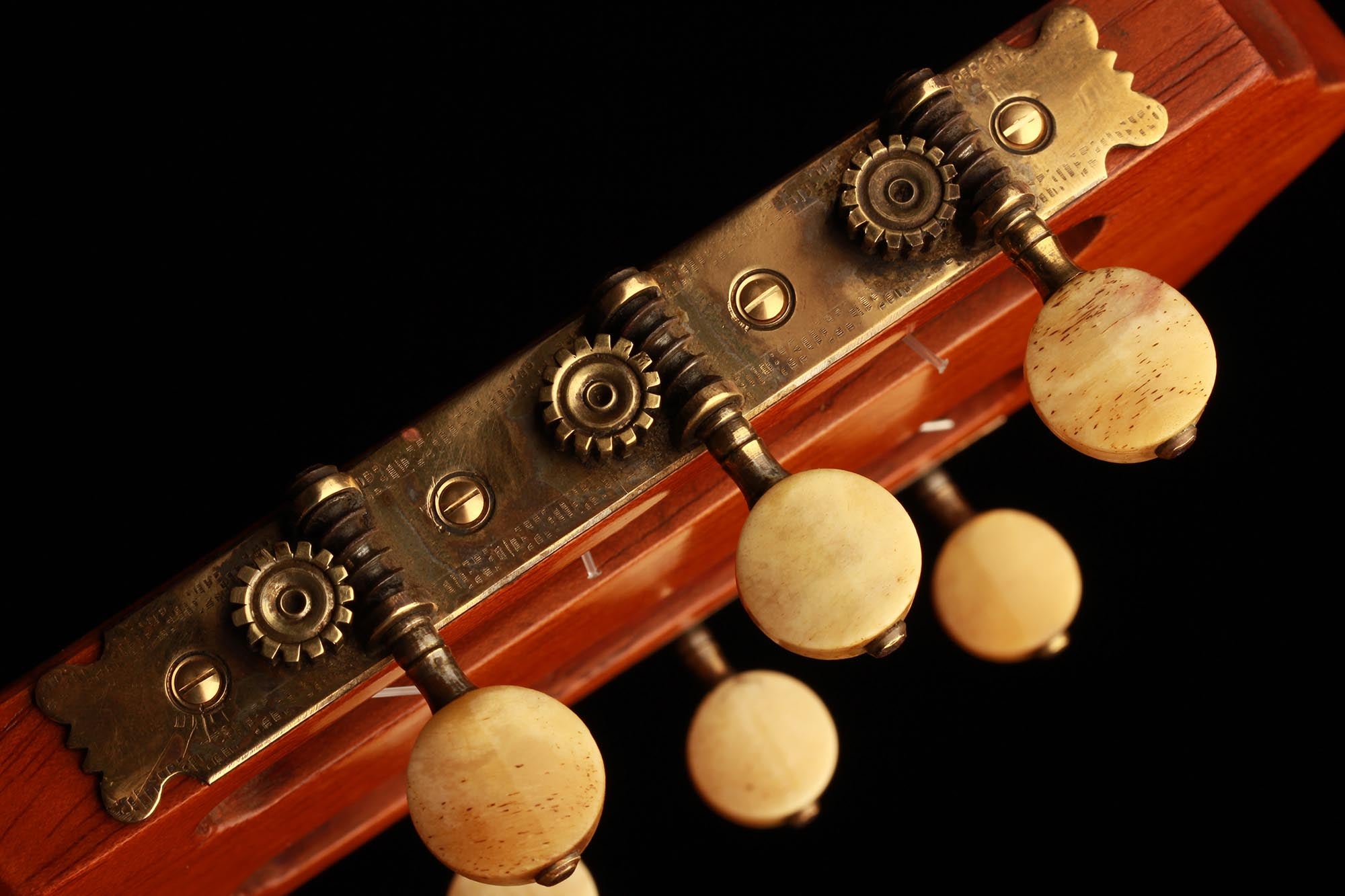 What a breath-taking sound. The elegance of its timbre and the delicacy of its touch are remarkable. Extremely sensitive trebles make this guitar sing in an absolutely charming way. At the height of its 100th anniversary, this instrument in great condition has a generous sound and is ready to be played.