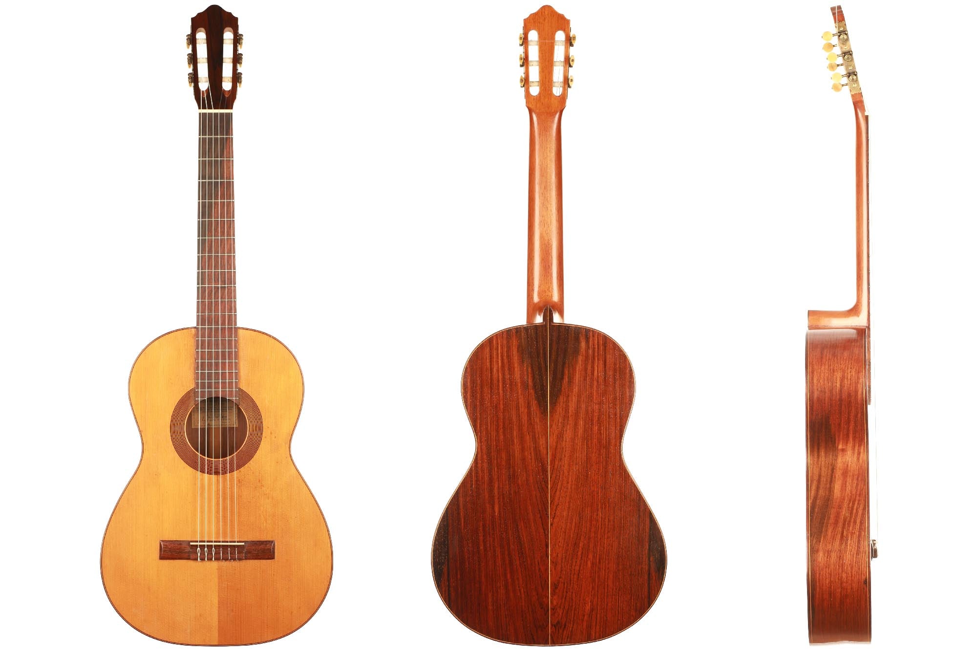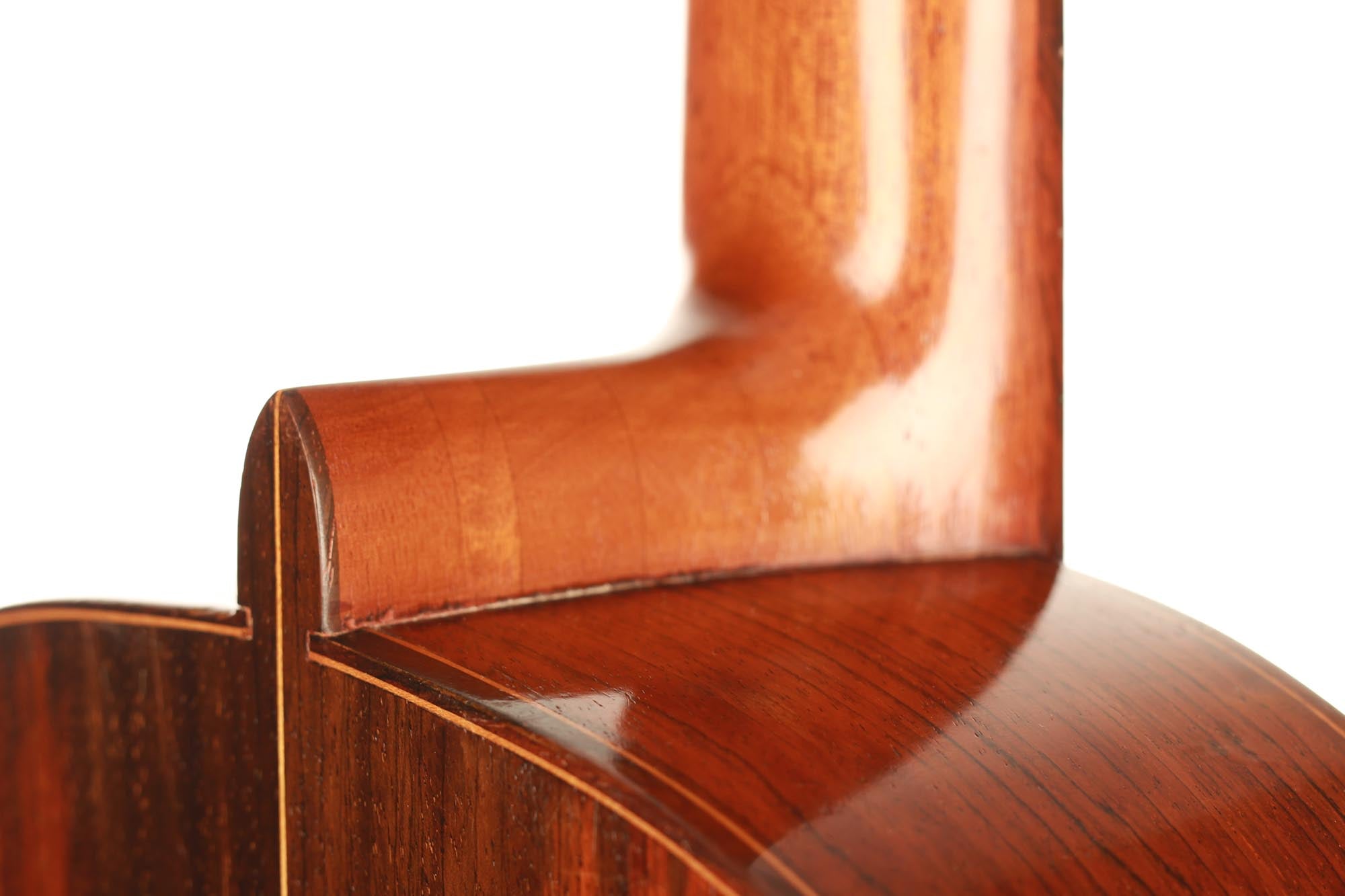 This superb guitar is in fantastic condition. It only has two superficial cracks, one under the bridge and one on the back. Both are perfectly stable. In addition, sublime woods have been chosen for the back and sides. This quality of Brazilian rosewood (Pre-CITES) is almost impossible to find nowadays. The original tuning machines are still on the guitar and work perfectly.