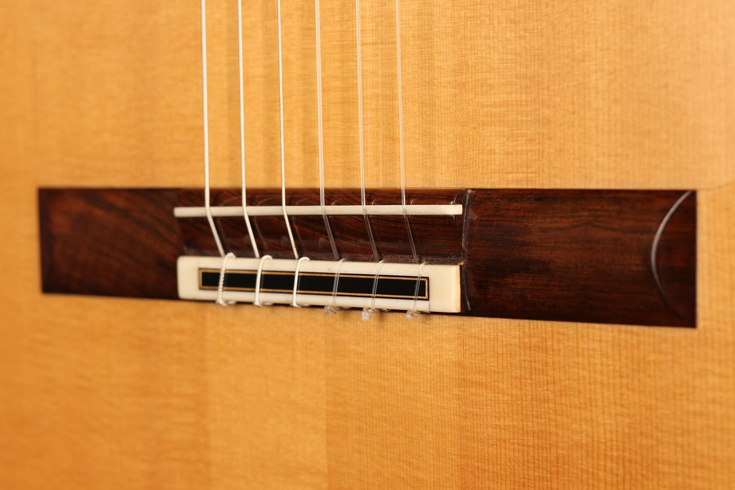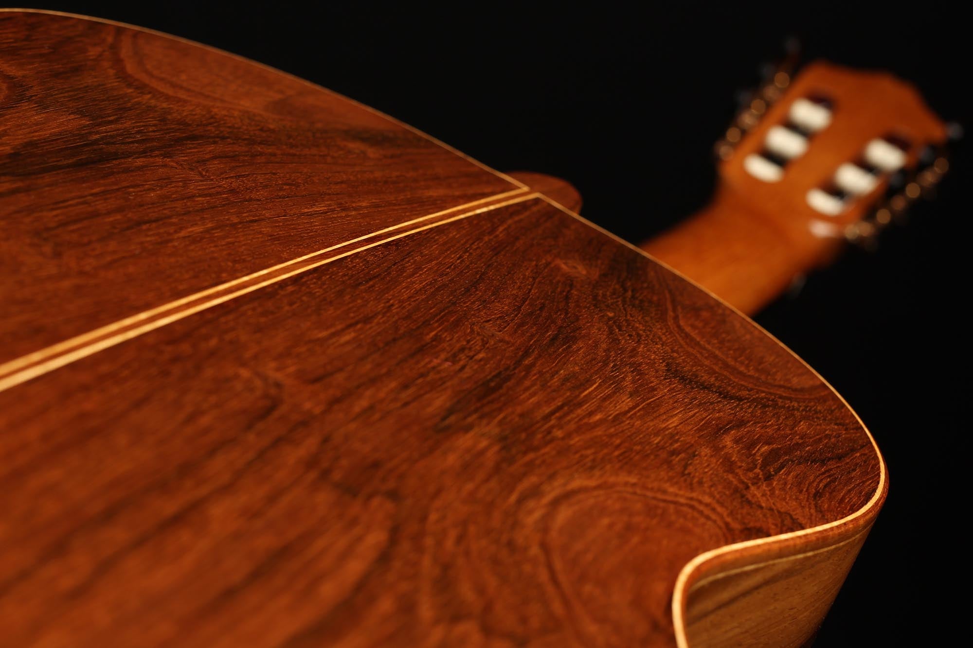 This guitar is powerful, responsive and extremely pleasing to play, especially for the left hand. The string action is pleasantly low and the sound is very clean, which makes this guitar suitable for both classical and flamenco playing. The timbre of the instrument is very rich and full of subtleties. It is an excellent guitar for a musician who plays classical and flamenco guitar and is looking for a versatile instrument.