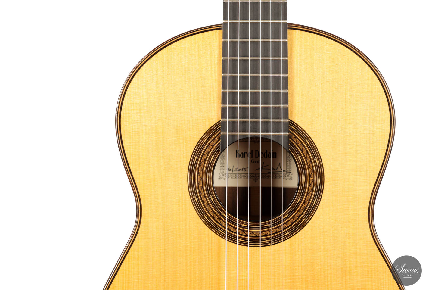 Karel Dedain was born in 1976 and built his first guitar in 1998. he lives and works in Gent, Belgium. The passion for playing flamenco guitar aroused his interest in guitar building. So he was trained at the CMB (Centrum voor Muziekinstrumentenbouw) by Walter Verreydt and has been building guitars full-time since 2006. Karel specializes mainly in building classical and flamenco guitars. He also teaches guitar making at the Centre for Musical Instrument Making in Puurs, Belgium, with Walter Verreydt. Karel builds about ten guitars a year, all completely handmade. One of his specialties is shellac polishing. His philosophy in guitar building is not to reinvent everything but to use the best ideas of historical guitar builders such as Torres, Garcia, Arias, and Hernandez to create beautiful instruments.