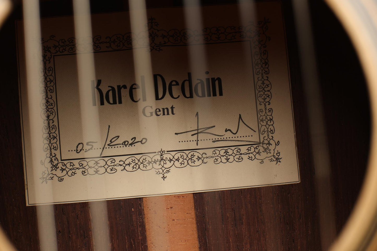 Karel Dedain was born in 1976 and built his first guitar in 1998. he lives and works in Gent, Belgium. The passion for playing flamenco guitar aroused his interest in guitar building. So he was trained at the CMB (Centrum voor Muziekinstrumentenbouw) by Walter Verreydt and has been building guitars full-time since 2006. Karel specializes mainly in building classical and flamenco guitars. He also teaches guitar making at the Centre for Musical Instrument Making in Puurs, Belgium, together with Walter Verreydt. Karel builds about ten guitars a year, all completely handmade. One of his specialties is shellac polishing. His philosophy in guitar building is not to reinvent everything, but to use the best ideas of historical guitar builders such as Torres, Garcia, Arias and Hernandez to create beautiful instruments.
