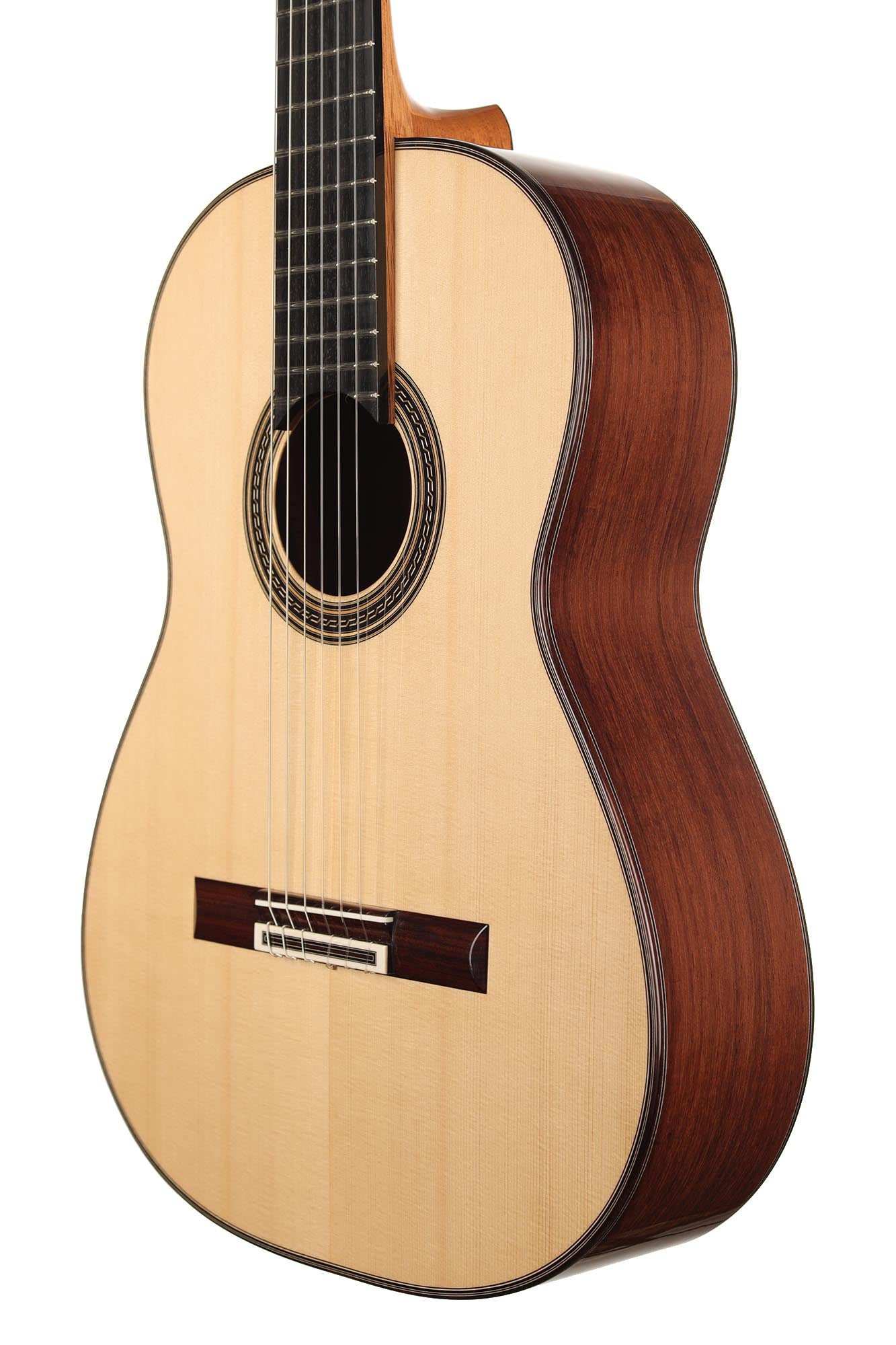 His excellent craftsmanship is also reflected in the sound characteristics. The guitar is rather lightly constructed and has a beautifully open sound and an immediate, direct response. In addition, its volume is also impressive and large dynamic changes can be achieved effortlessly. It is a very comfortable and reliable guitar for both the left and right hand. It will therefore be able to help guitarists looking for a more versatile and enriching instrument to progress quickly. Thus, this guitar is not only distinguished by its beauty, but also by its easy playability and its powerful, colorful, and responsive sound. A fitting Hiscox-Pro II GCL hard-shell case is included in the price.