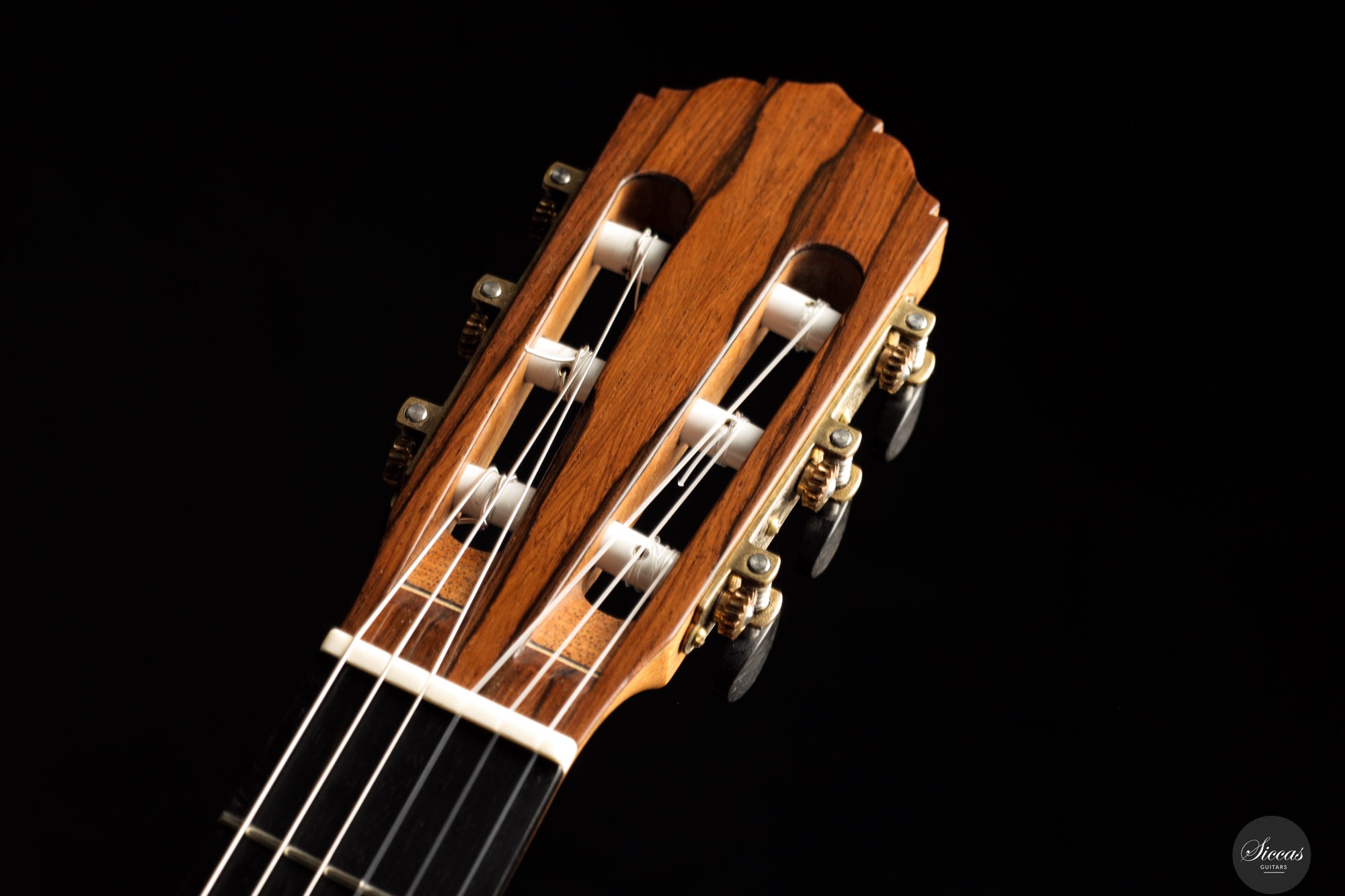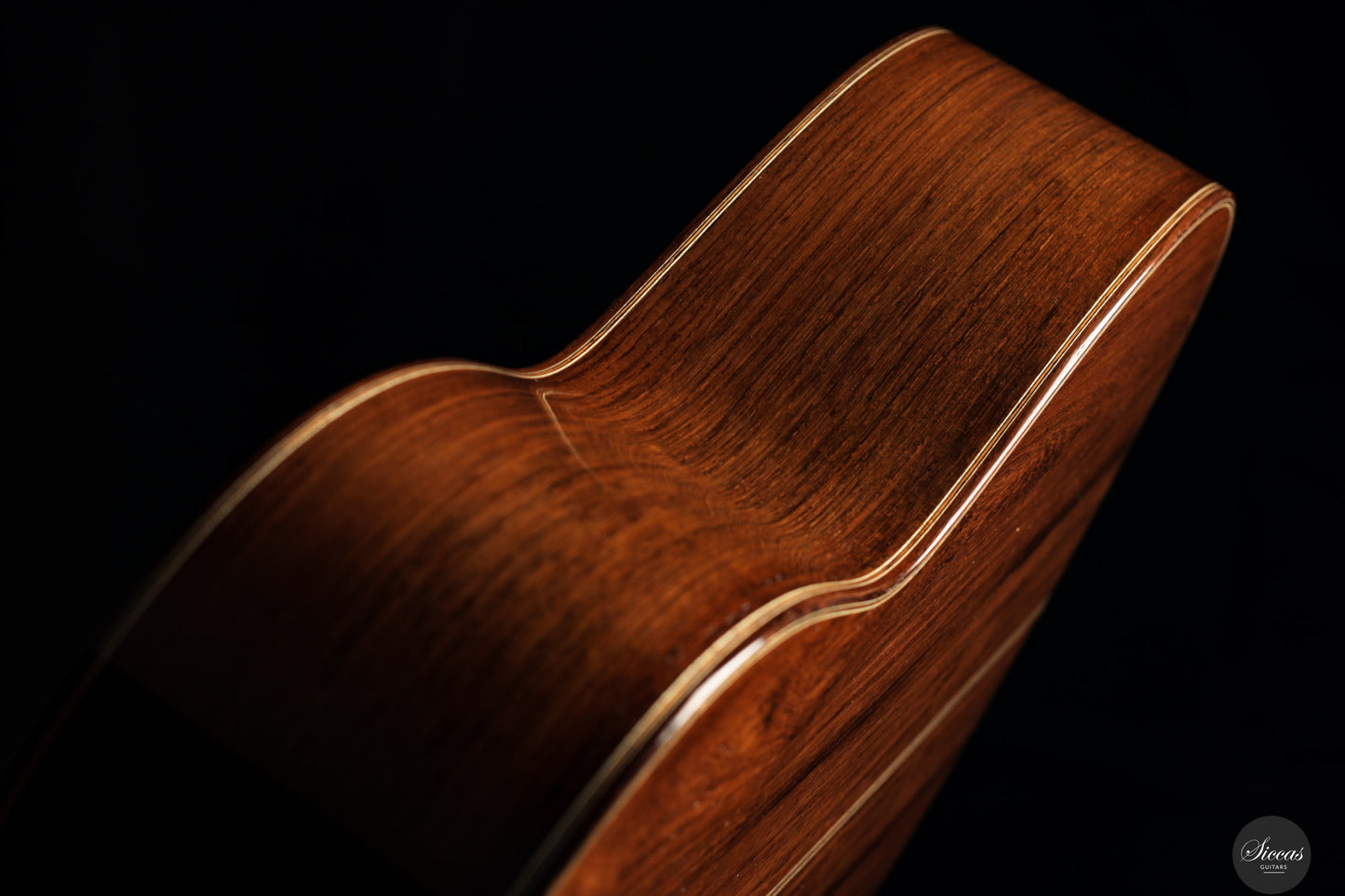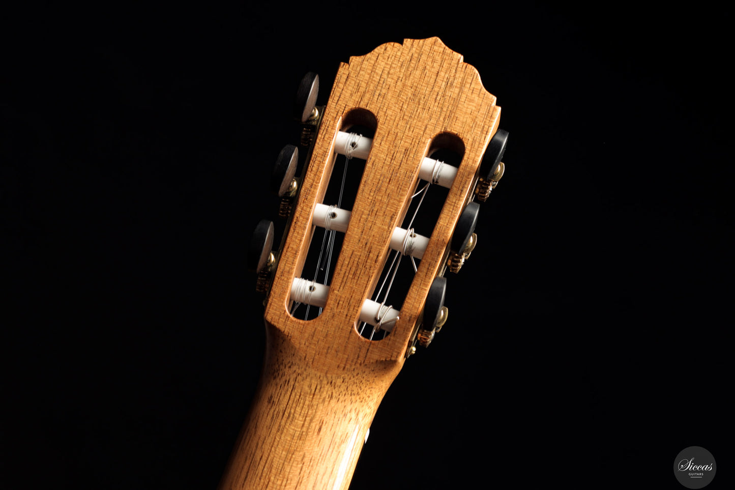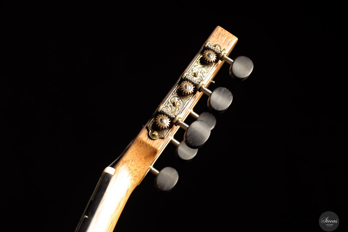 This 2021 guitar by Karel Dedain exemplifies the essence of expert craftsmanship, blending traditional techniques with tonewoods of the highest quality to deliver a remarkable musical instrument. It features a spruce soundboard supported by seven fan braces, and the back and sides are made of Madagascar rosewood, contributing not only to the visual elegance of the instrument but also to its lush, resonant sound. The result is a guitar with a highly desirable combination of balance, depth, and responsiveness, an ideal choice for serious players seeking tonal sophistication and precision.
