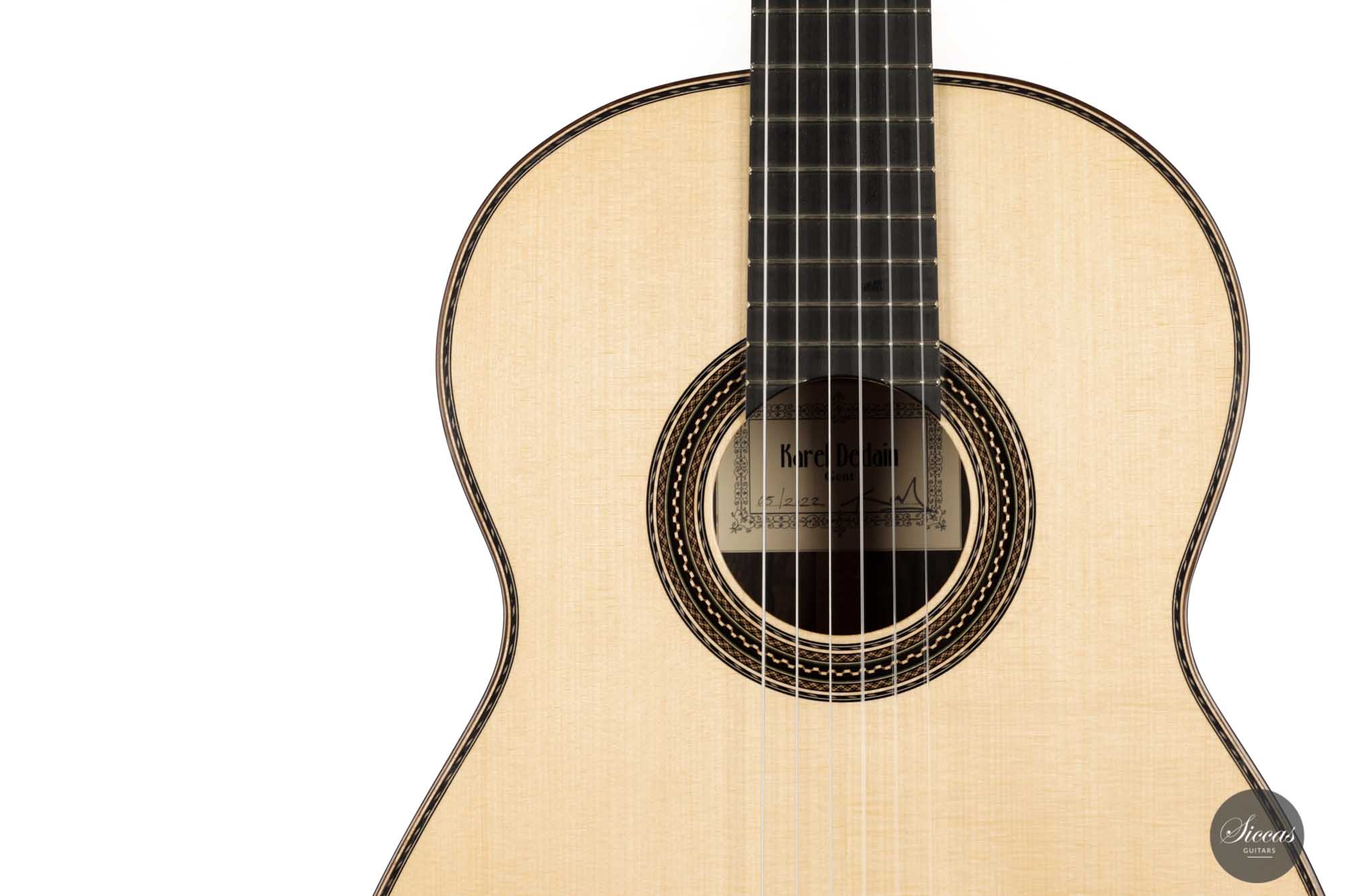 Karel Dedain was born in 1976 and built his first guitar in 1998. he lives and works in Gent, Belgium. The passion for playing flamenco guitar aroused his interest in guitar building. So he was trained at the CMB (Centrum voor Muziekinstrumentenbouw) by Walter Verreydt and has been building guitars full-time since 2006. Karel specializes mainly in building classical and flamenco guitars. He also teaches guitar making at the Centre for Musical Instrument Making in Puurs, Belgium, together with Walter Verreydt. Karel builds about ten guitars a year, all completely handmade. One of his specialties is shellac polishing. His philosophy in guitar building is not to reinvent everything, but to use the best ideas of historical guitar builders such as Torres, Garcia, Arias and Hernandez to create beautiful instruments.