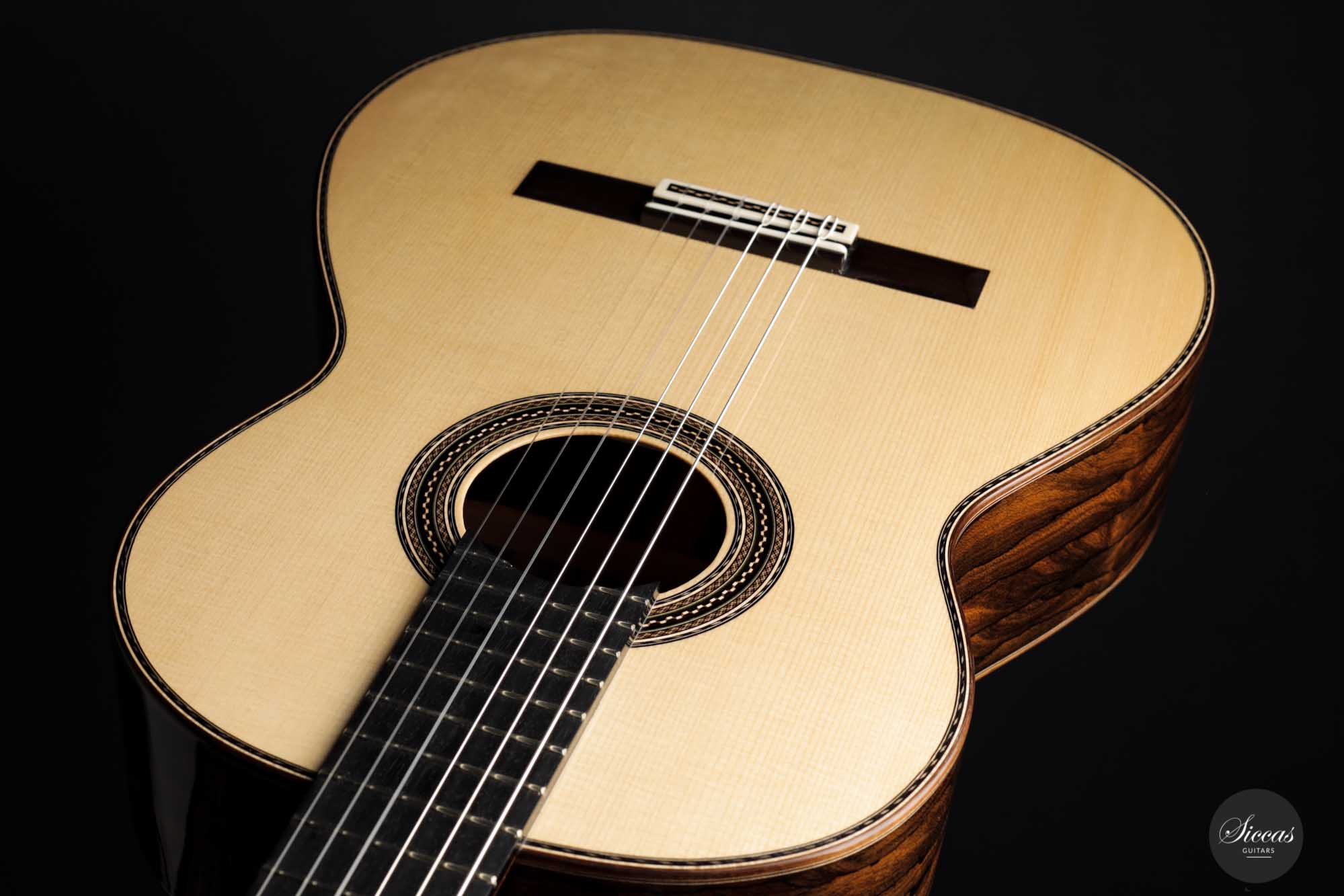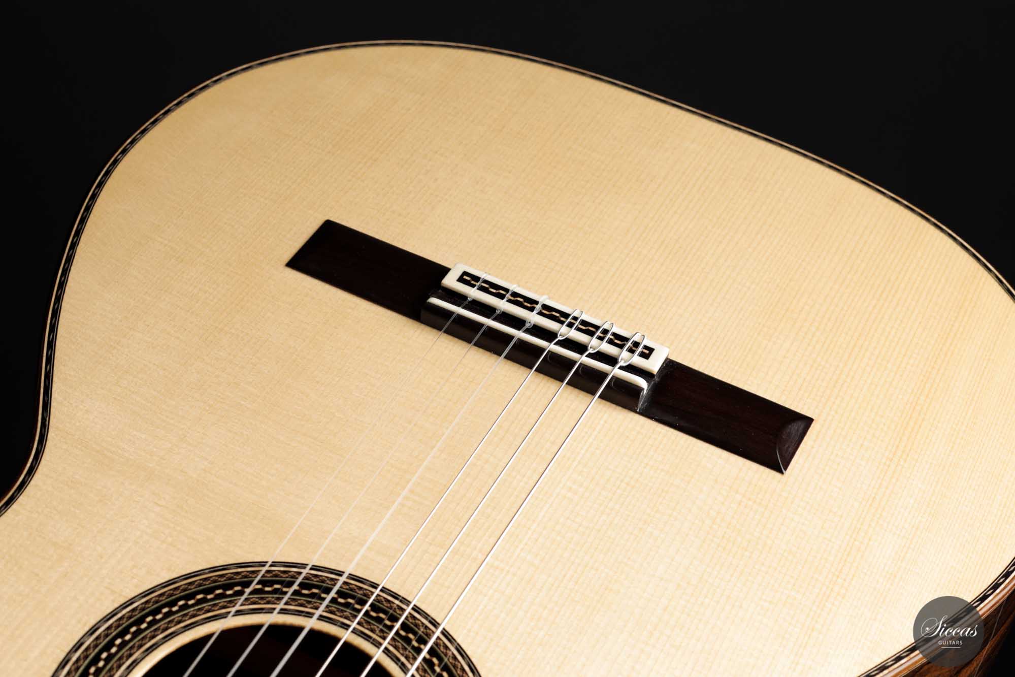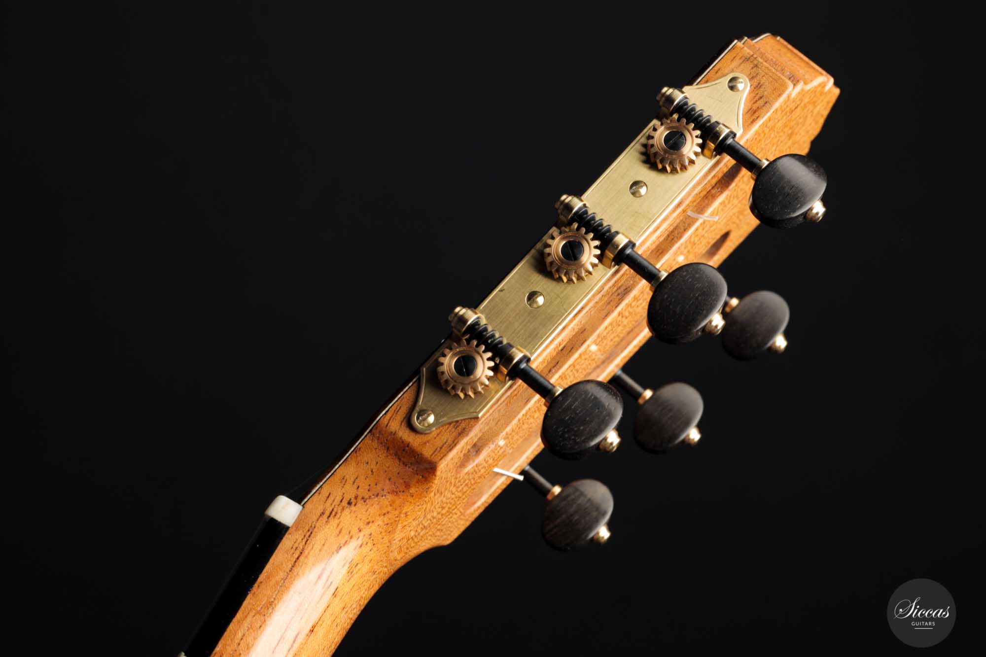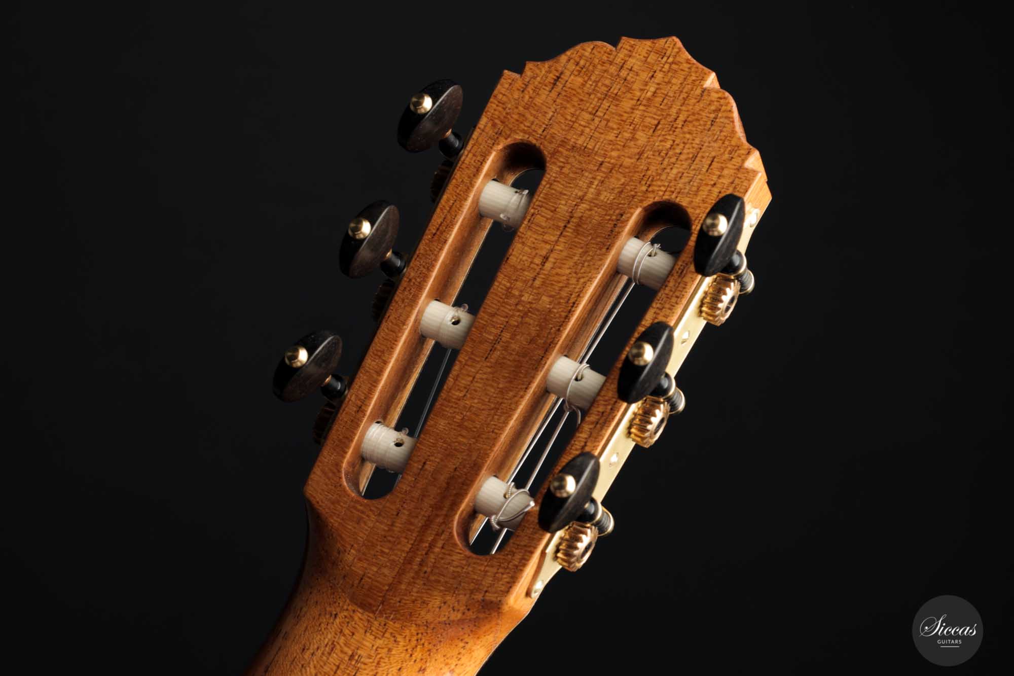 This guitar, built in 2022 especially for Siccas Guitars, has a lot of unique and exciting features. Together with Karel we aimed to create an instrument that combines excellent playability with a rich, powerful and traditional sound. As a result, this guitar has a 64 cm scale length, which provides a comfortable playing feel for the left hand, and a slightly raised fingerboard, which makes playing in the high registers more comfortable.