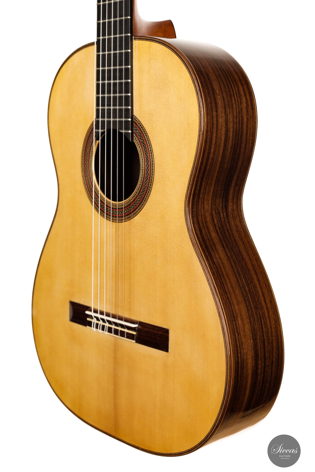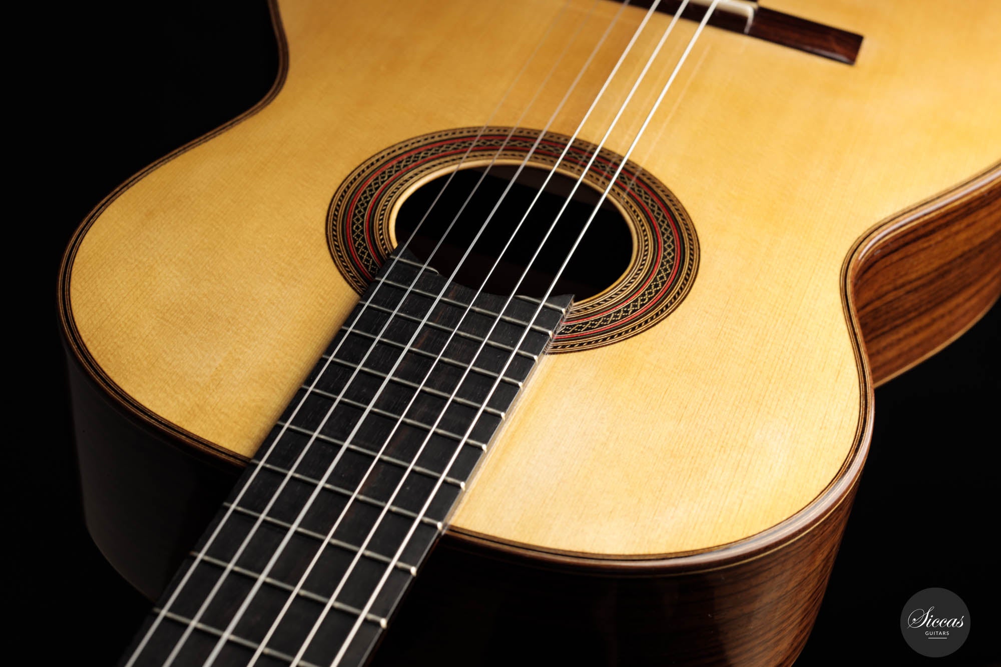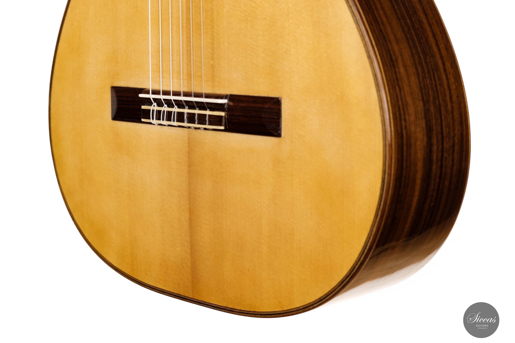 Discover the auditory finesse of the 2023 Karl-Hermann Schäfer guitar. Constructed with a spruce soundboard paired with Indian rosewood for the back and sides, this guitar embodies an exceptional blend of materials meticulously chosen to perfect the sound quality. From an acoustical standpoint, the 2023 Karl-Hermann Schäfer guitar exhibits a complexity, depth, and elegance synonymous with high-end musical instruments. Its sonorous bass notes resonate deeply, while the treble tones present a smooth, clear, and expansive sound. The instrument's construction imbues it with an intriguing and inspiring aura, an inherent quality that, coupled with its prolonged sustain, distinguishes it from its contemporaries. This guitar is not just an instrument; it is a testament to the enduring legacy of fine craftsmanship and sonic excellence.