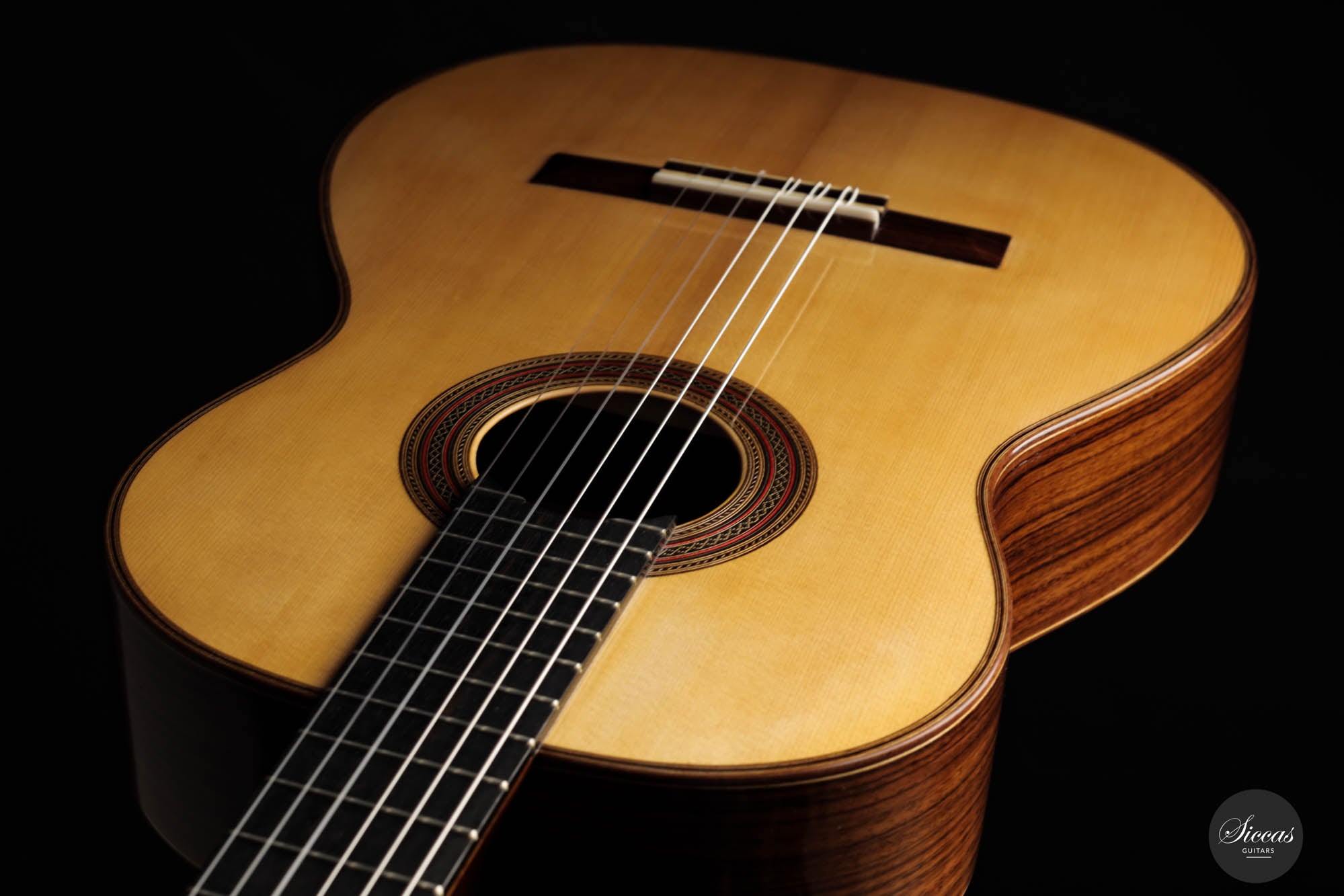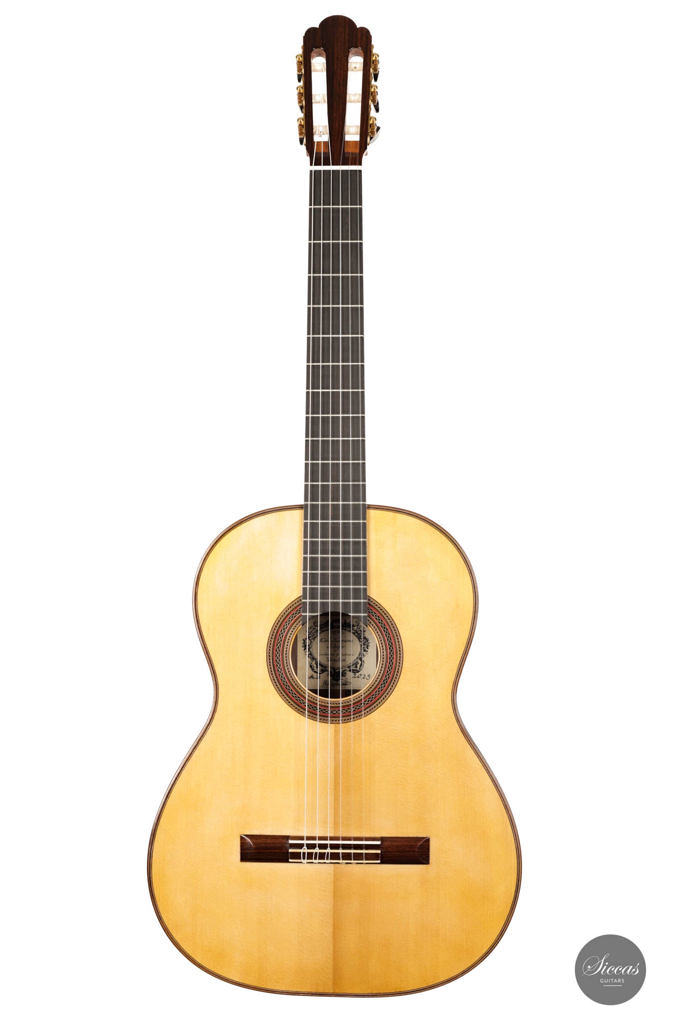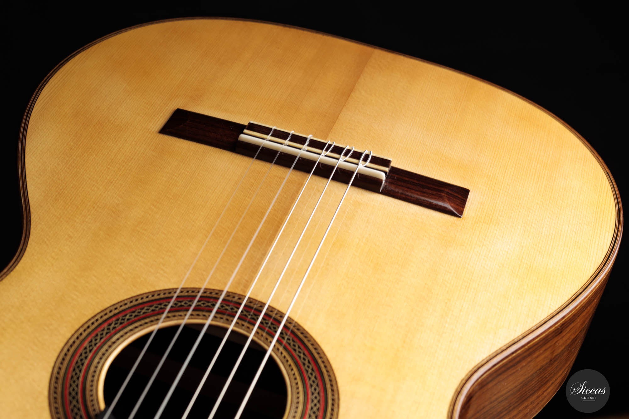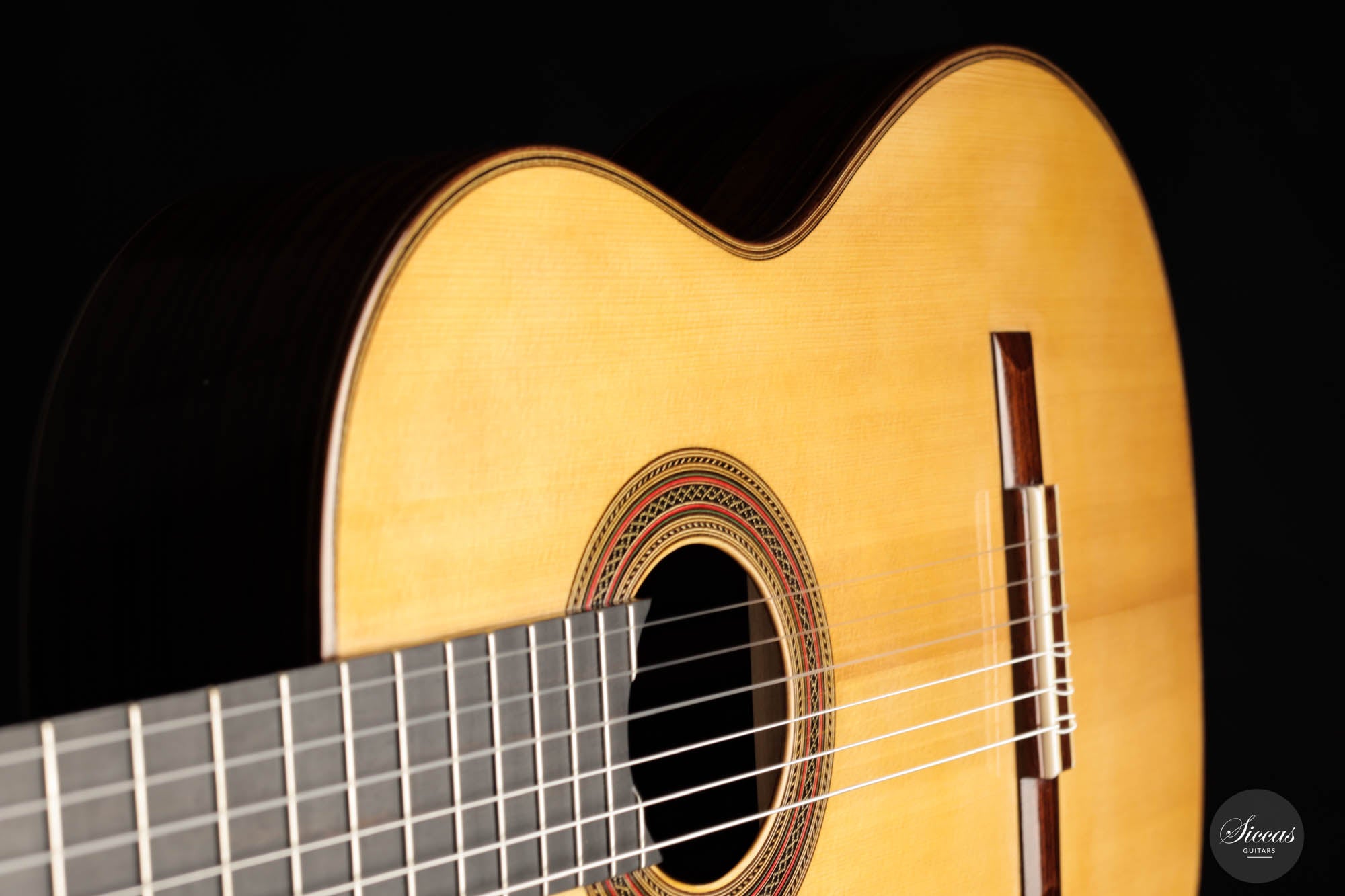 Discover the auditory finesse of the 2023 Karl-Hermann Schäfer guitar. Constructed with a spruce soundboard paired with Indian rosewood for the back and sides, this guitar embodies an exceptional blend of materials meticulously chosen to perfect the sound quality. From an acoustical standpoint, the 2023 Karl-Hermann Schäfer guitar exhibits a complexity, depth, and elegance synonymous with high-end musical instruments. Its sonorous bass notes resonate deeply, while the treble tones present a smooth, clear, and expansive sound. The instrument's construction imbues it with an intriguing and inspiring aura, an inherent quality that, coupled with its prolonged sustain, distinguishes it from its contemporaries. This guitar is not just an instrument; it is a testament to the enduring legacy of fine craftsmanship and sonic excellence.