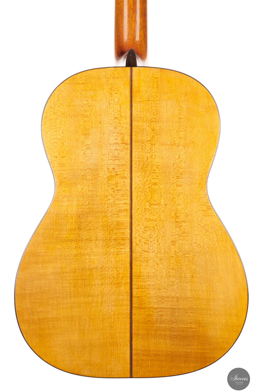 The 2024 Karl-Hermann Schäfer guitar pays homage to the rich traditions of German guitar craftsmanship, inspired by the legendary 1937 German guitars. While the original featured Brazilian rosewood, this modern interpretation brings together a spruce soundboard with the refined elegance of Maple for its back and sides, showcasing a thoughtful difference in material choice.