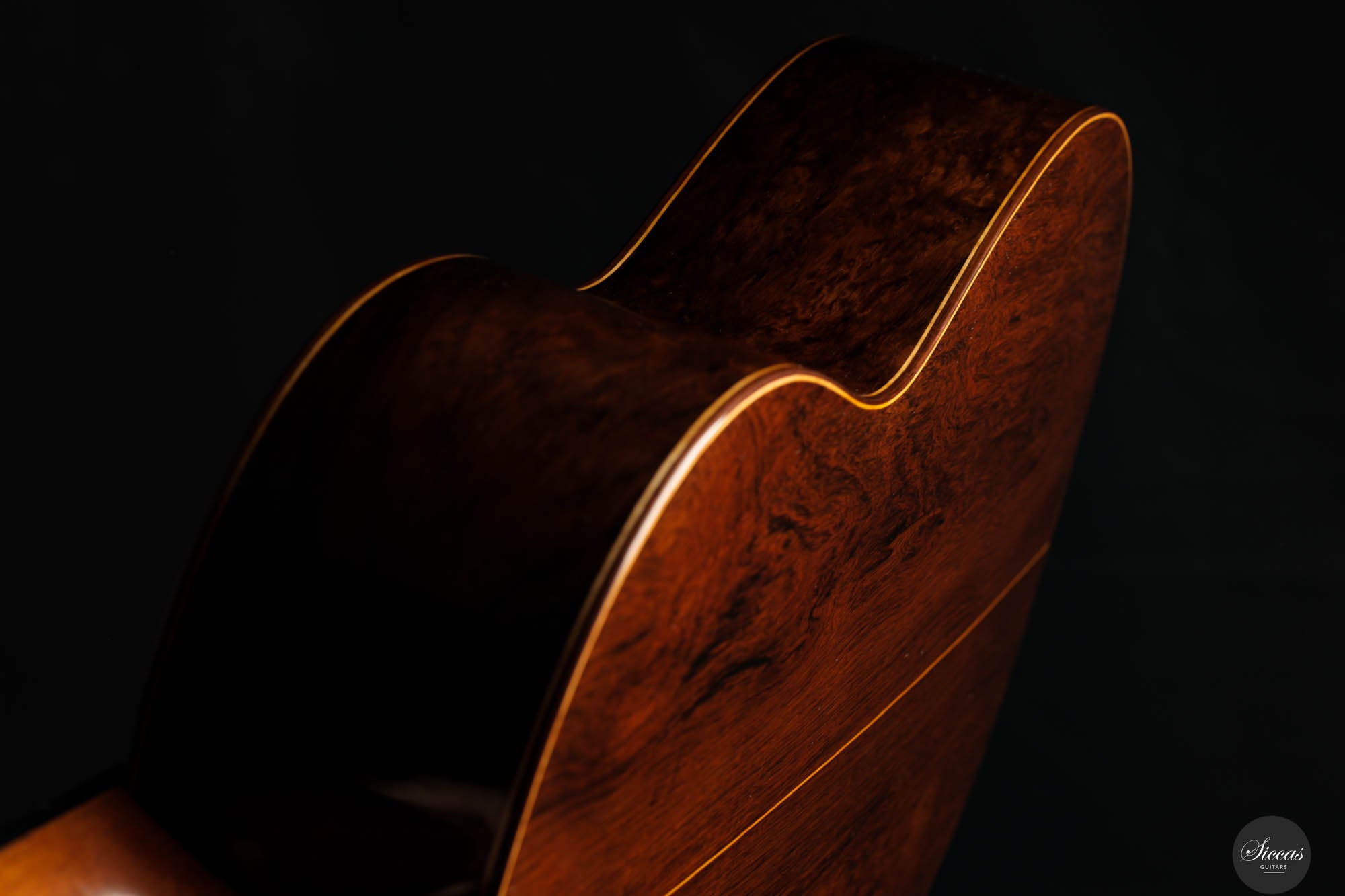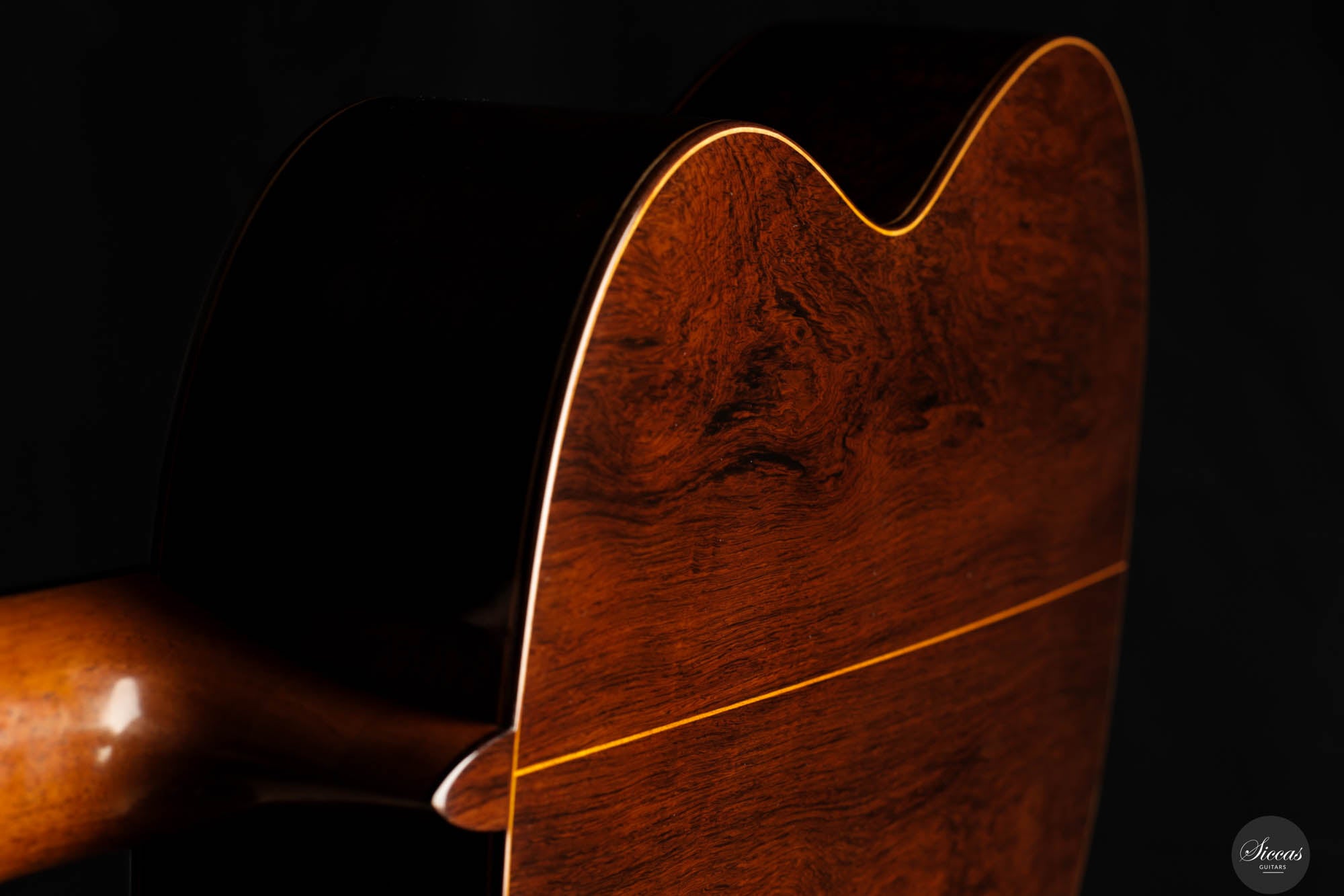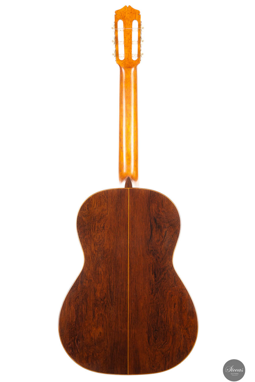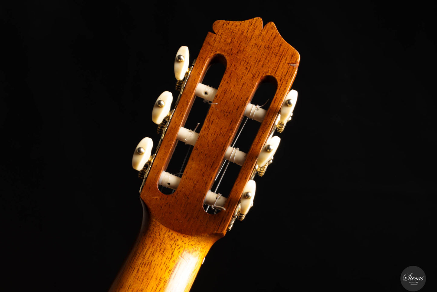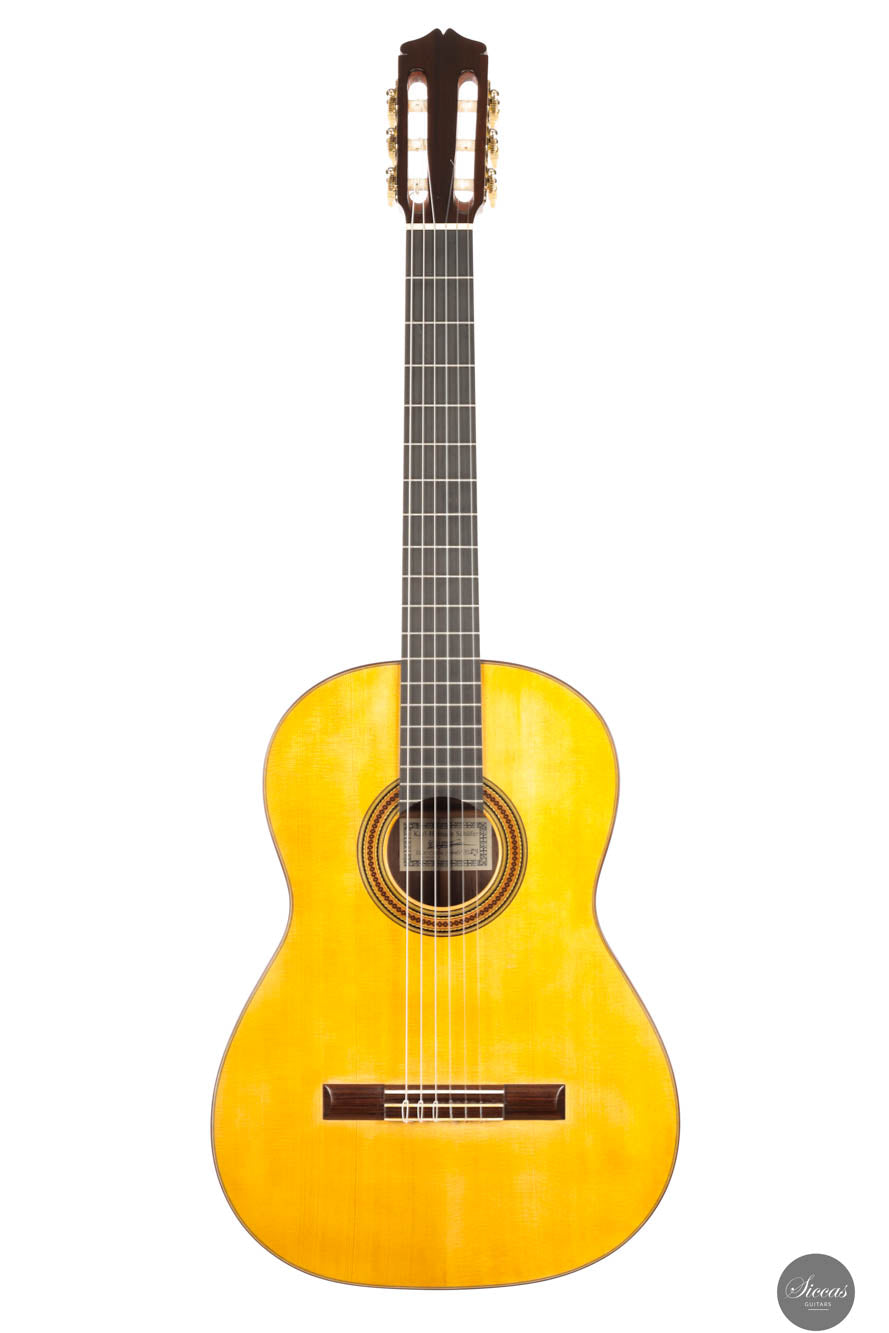 Karl-Hermann Schäfer is undoubtedly one of the few modern luthiers with a profound understanding of early 20th-century Spanish guitar making, particularly the work of Santos Hernández, Antonio de Torres, and other iconic masters. This particular guitar is inspired by the guitars of Santos Hernández, and it reflects Schäfer’s dedication to authenticity, nuance, and historical detail. Tonally, the guitar is strikingly close to a Santos Hernández from the early 1930s, with a similarly angled headstock and an overall playing feel that captures the soul of the original. The instrument delivers a deep resonance between E and F, giving it a distinct “old world” character, while the basses are rich and profound, and the trebles sing with warmth, sustain, and clarity—a rare combination that few luthiers can achieve. It also boasts remarkable evenness across the entire fingerboard and register, making it not only historically accurate but also a highly playable and expressive concert instrument. Internally, the spruce soundboard is supported by a 7-fan bracing system, with five symmetrical braces and two outer braces connected by small diagonal bars, forming subtle “L”-shaped figures. Similar pattern can be found in 1935 Santos Hernandez. As a pre-loved instrument, this guitar is in excellent condition, with only a few minor playing marks. It could easily be rated as near mint, and stands as a beautiful and faithful homage to one of the greatest luthiers of the classical guitar tradition.Regular care extends the life of the instrument
