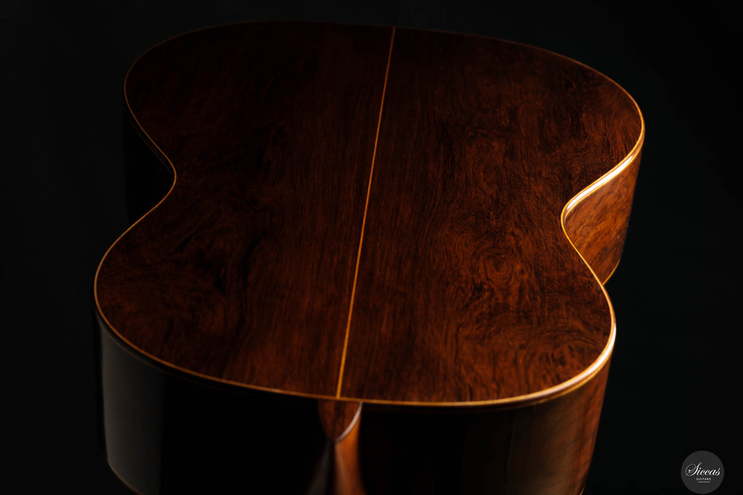 Be mindful when touching your instrument with greasy or unwashed hands: any skin contact is a small attack on the varnish. Of course, a guitar is made to be played, but taking a few precautions helps preserve its beauty: wash your hands before playing, wear long sleeves, and avoid unnecessary direct skin contact with the body of the instrument.