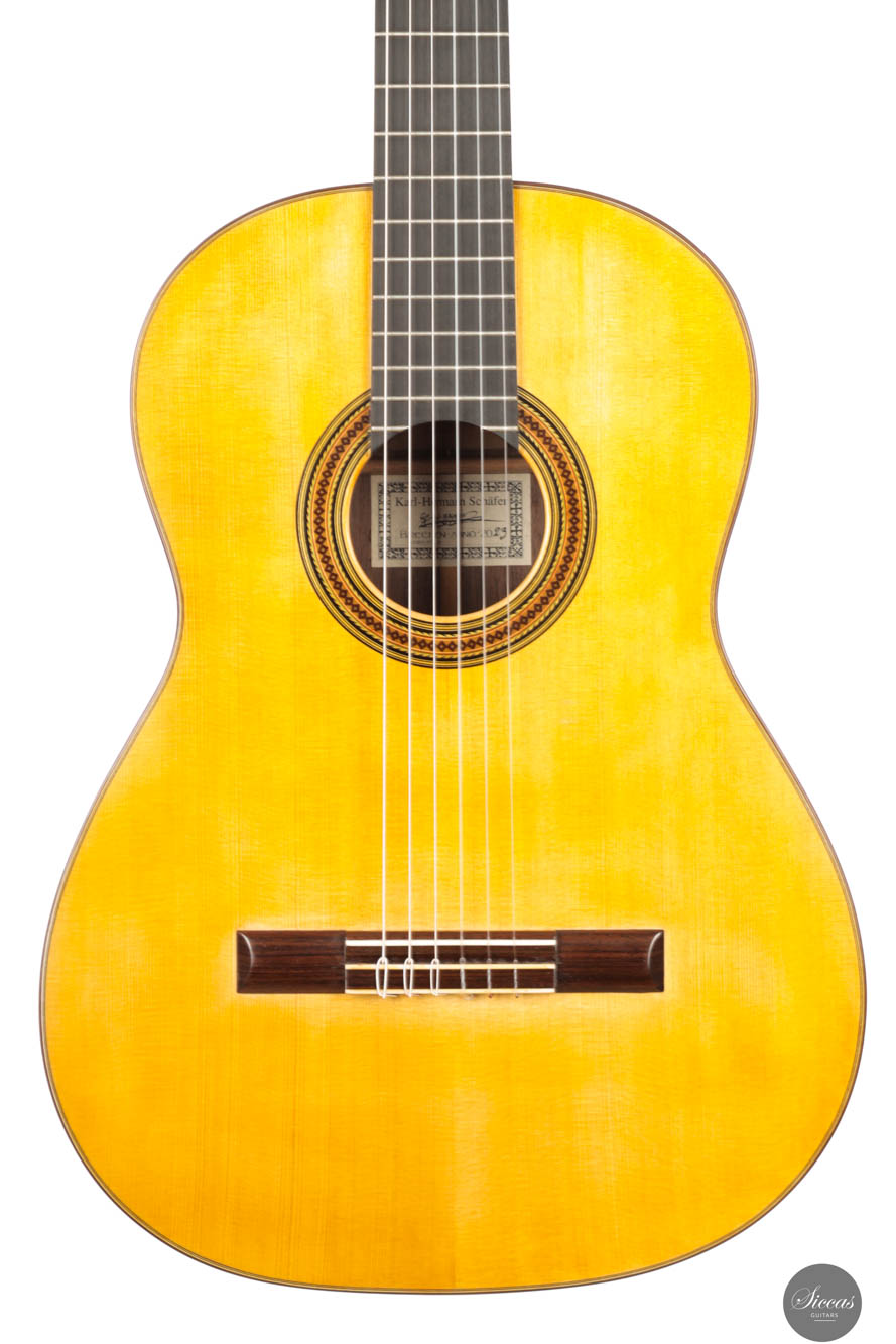 Karl-Hermann Schäfer started making guitars in 1966. He did his apprenticeship under the guidance of master guitar maker Ernest Köröskeny and later studied under master guitar maker Dieter Hopf. After having worked in Hopf’s workshop from 1971 to 1994, he opened his own in Oberneisen and moved to Niederbrechen, Germany, five years later. Karl-Hermann Schäfer has specialized in making the most wonderful replicas one could wish for. These instruments are not only well built, but they also offer the very authentic sound of master instruments of the past.About the guitar