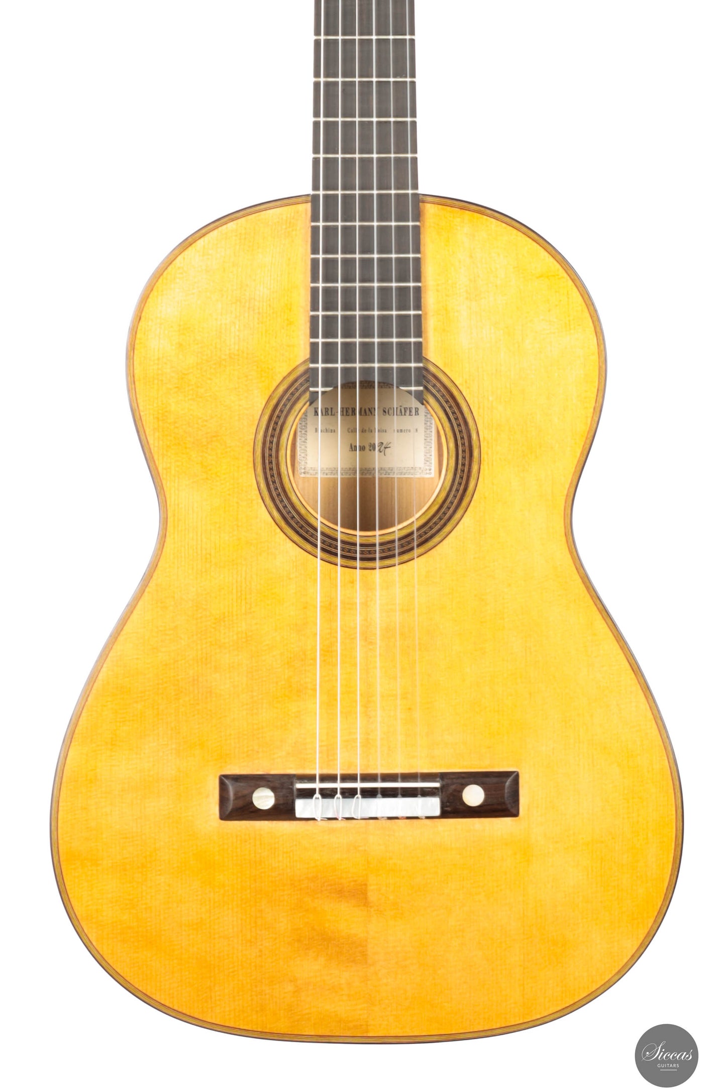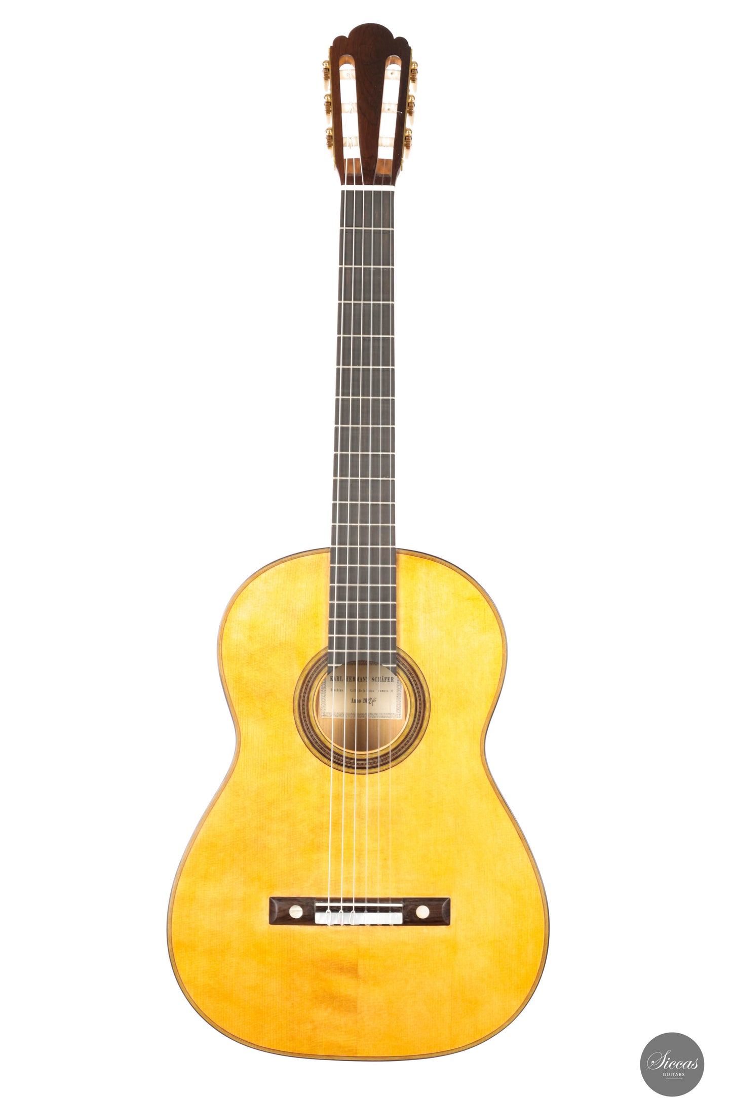 Karl-Hermann Schäfer started making guitars in 1966. He did his apprenticeship under the guidance of master guitar maker Ernest Köröskeny and later studied under master guitar maker Dieter Hopf. After having worked in Hopf’s workshop from 1971 to 1994, he opened his own in Oberneisen and moved to Niederbrechen, Germany, five years later. Karl-Hermann Schäfer has specialized in making the most wonderful replicas one could wish for. These instruments are not only well built, but they also offer the very authentic sound of master instruments of the past.About the guitar