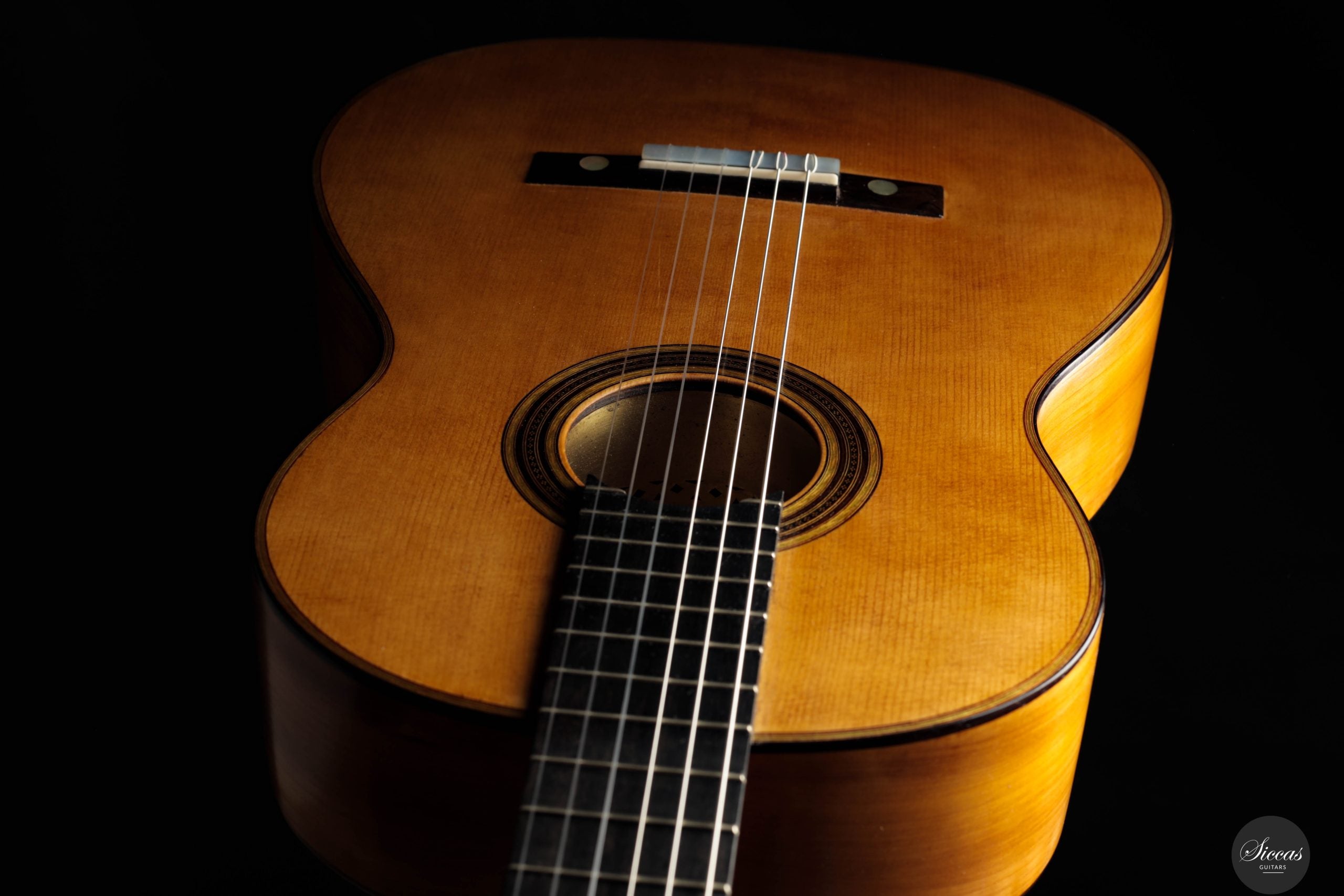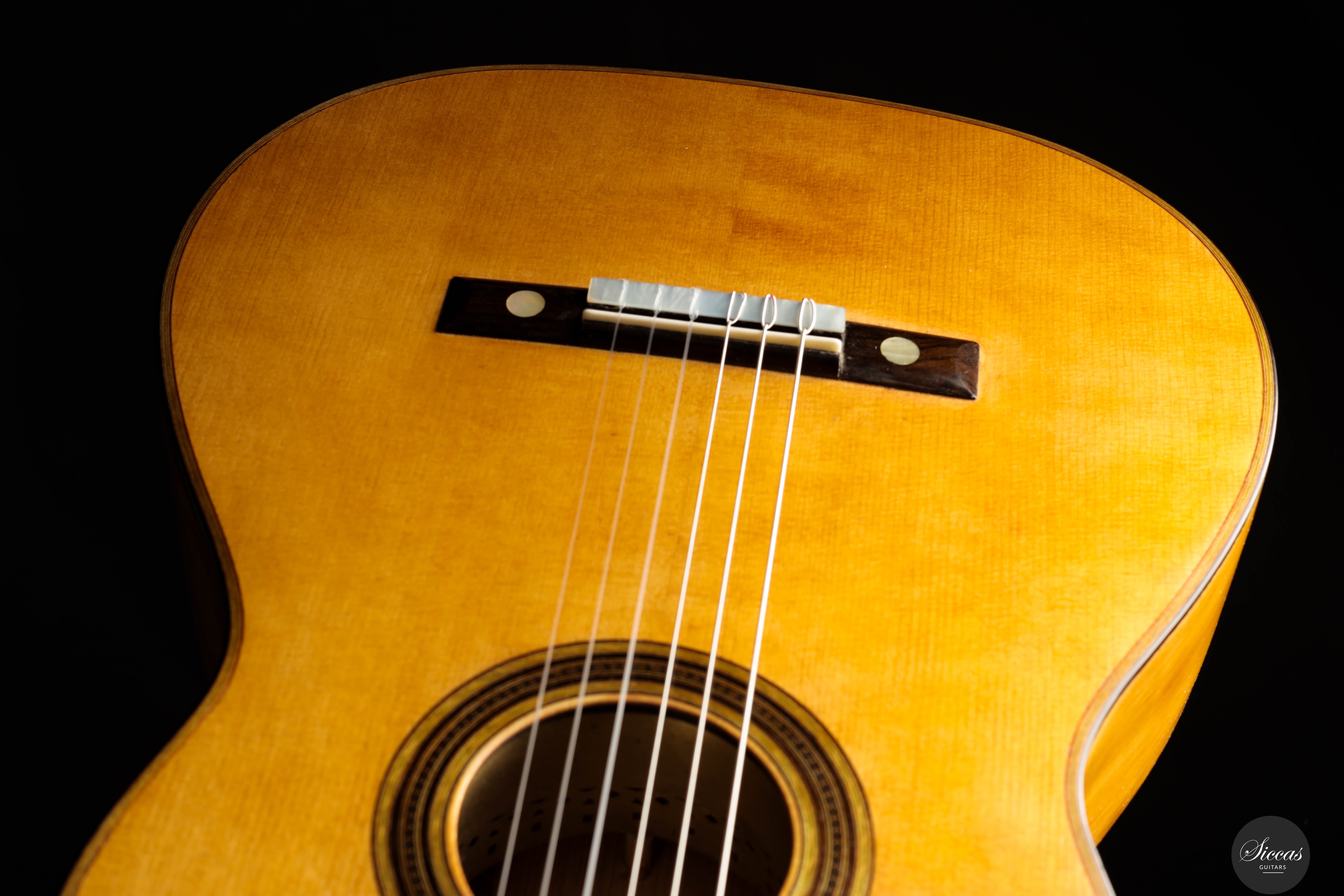 Be mindful when touching your instrument with greasy or unwashed hands: any skin contact is a small attack on the varnish. Of course, a guitar is made to be played, but taking a few precautions helps preserve its beauty: wash your hands before playing, wear long sleeves, and avoid unnecessary direct skin contact with the body of the instrument.