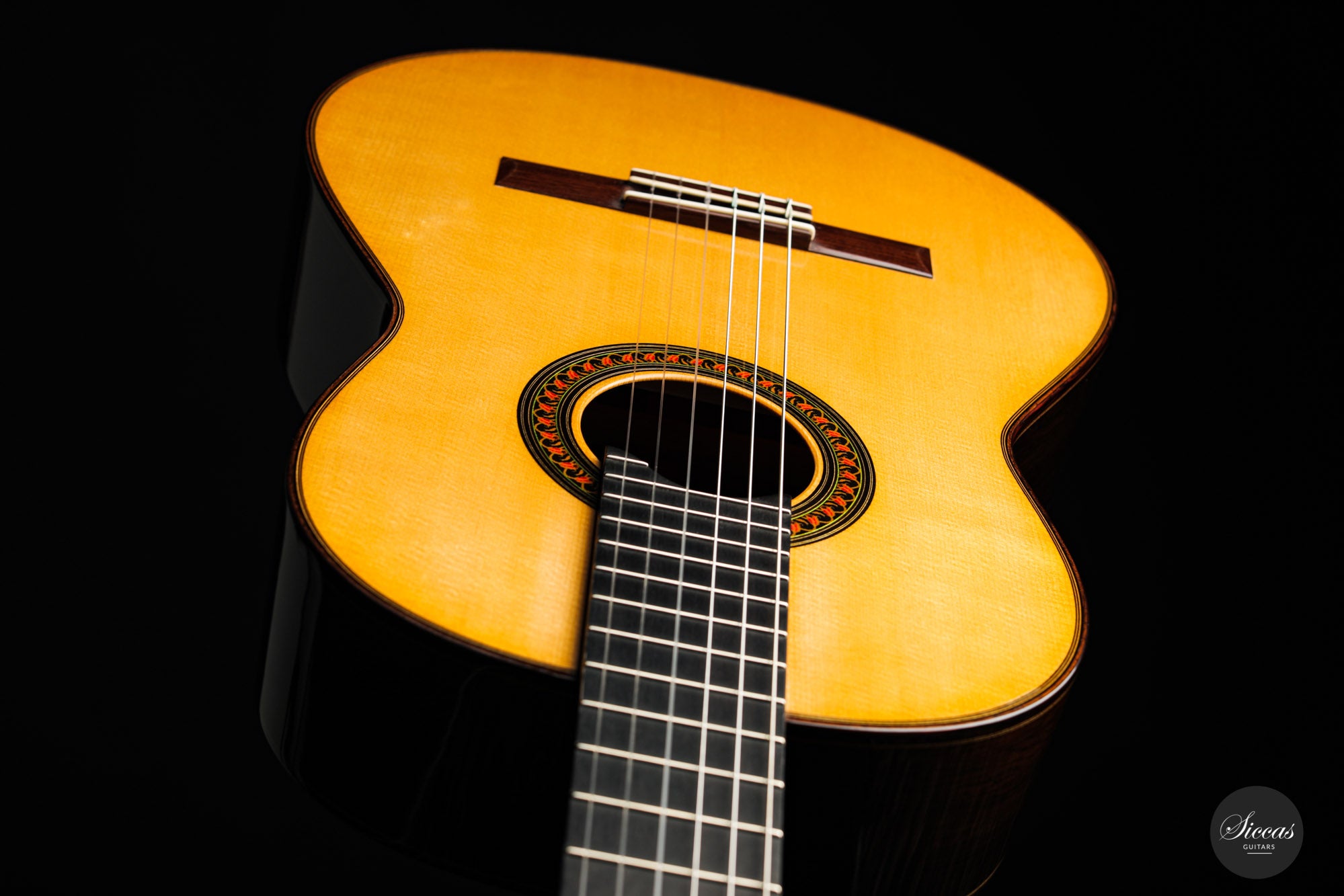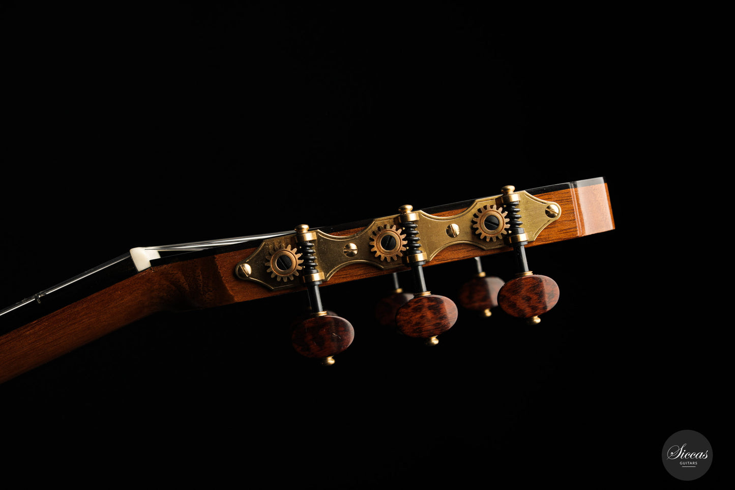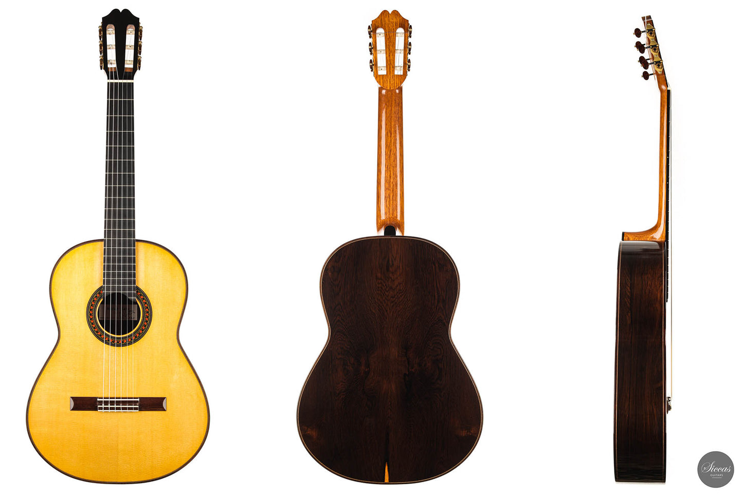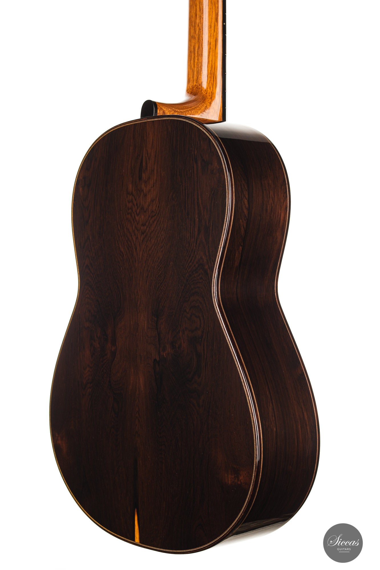 This guitar, built in 2020, is an exceptionally impressive masterpiece with a 63 cm scale length, which gives this Sato Special an excellent playing comfort for the left hand. Producing a powerful, rich, and clear sound on this instrument is amazingly easy, and the quality of the timbre is breathtaking. You can really feel and hear the master's 55 years of experience in creating first-class concert guitars. In addition, this gem of a guitar is built from top-quality CITES-certified Brazilian rosewood and is equipped with the finest handmade tuners from Scheller.