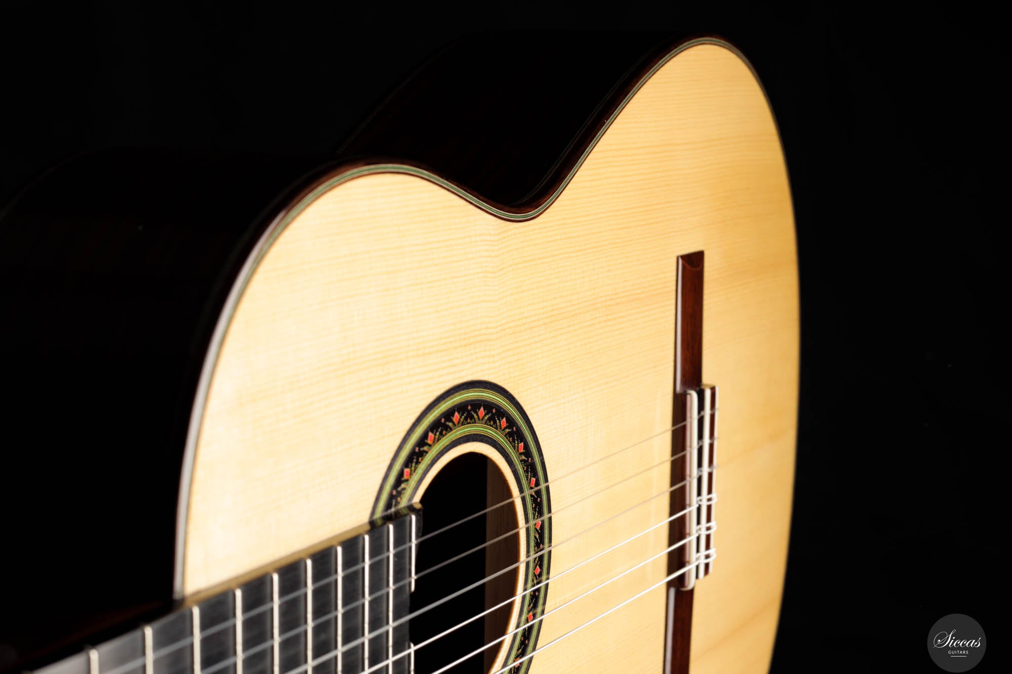 The classical guitar, with its soft nylon strings and characteristic timbre, has become a symbol of chamber music, Spanish tradition, and concert repertoire. Its modern form was shaped by Antonio de Torres in the 19th century, setting the standard for the body, fan bracing, and the 65-centimeter scale length that are still used today. Instruments in this category open up a rich palette from the refined Romantic miniatures of Tárrega to the majestic concertos of Rodrigo. Here you will find guitars that preserve historical continuity and at the same time inspire new interpretations.