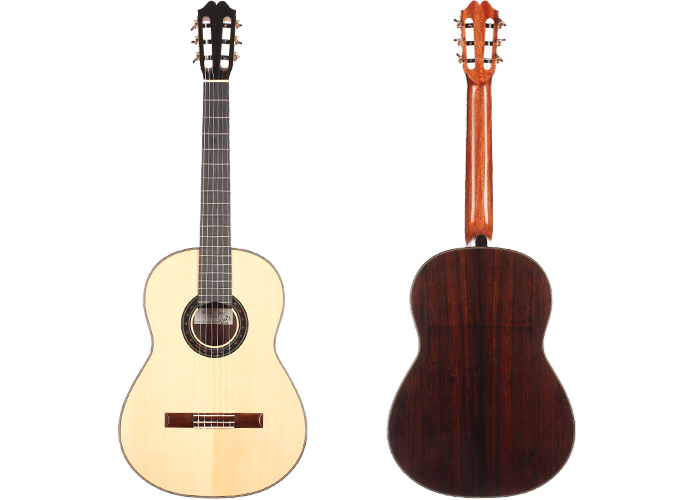 Price on requestLuthier: Fritz OberConstruction Year: 2019Construction Type: TraditionalTop: SpruceBack and Sides: Brazilian rosewood (CITES certified)Soundboard Finish: French polishBody Finish: French polishAir Body Frequency: C sharp / DWeight (g): 1345Tuner: Klaus SchellerCondition: Excellent -