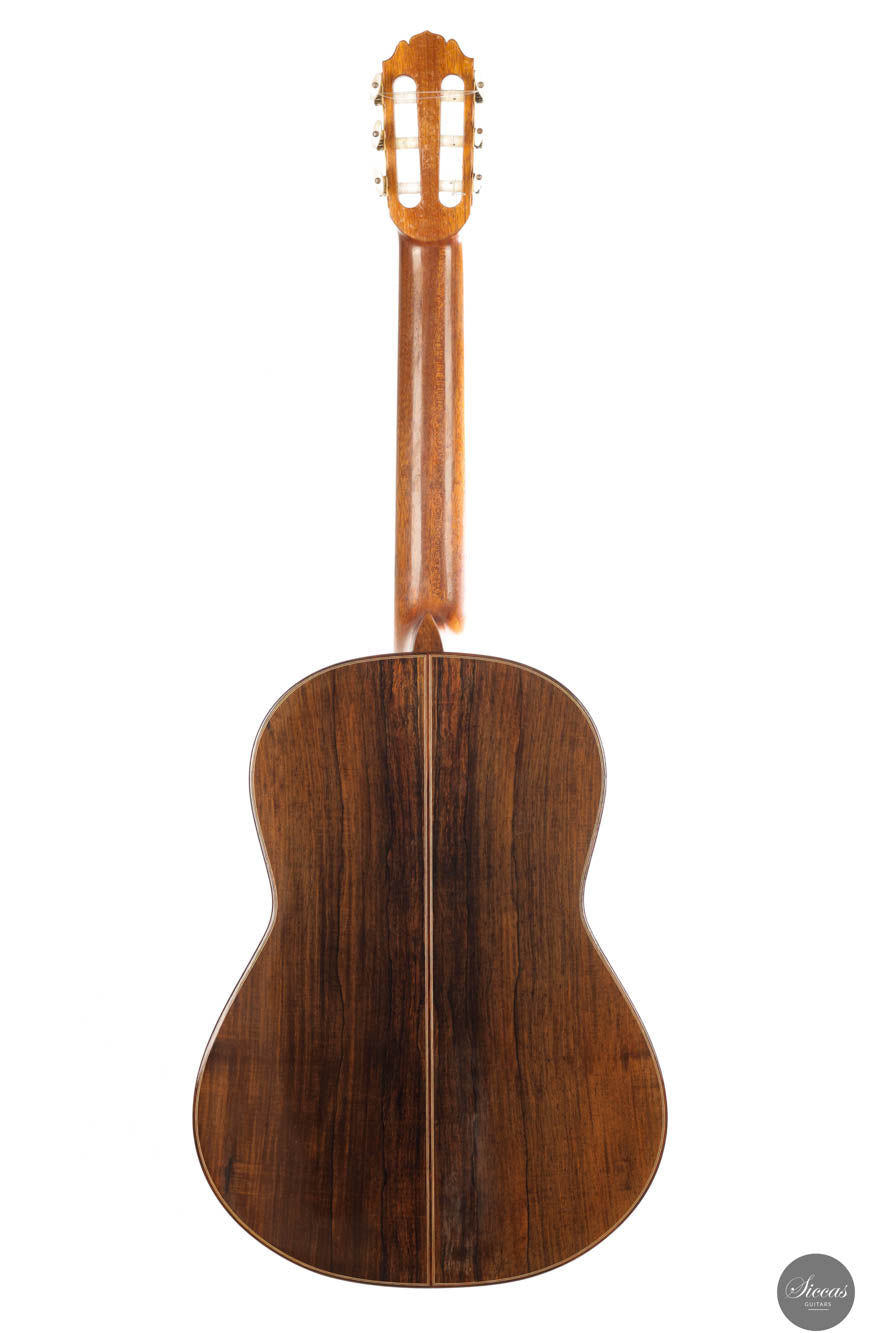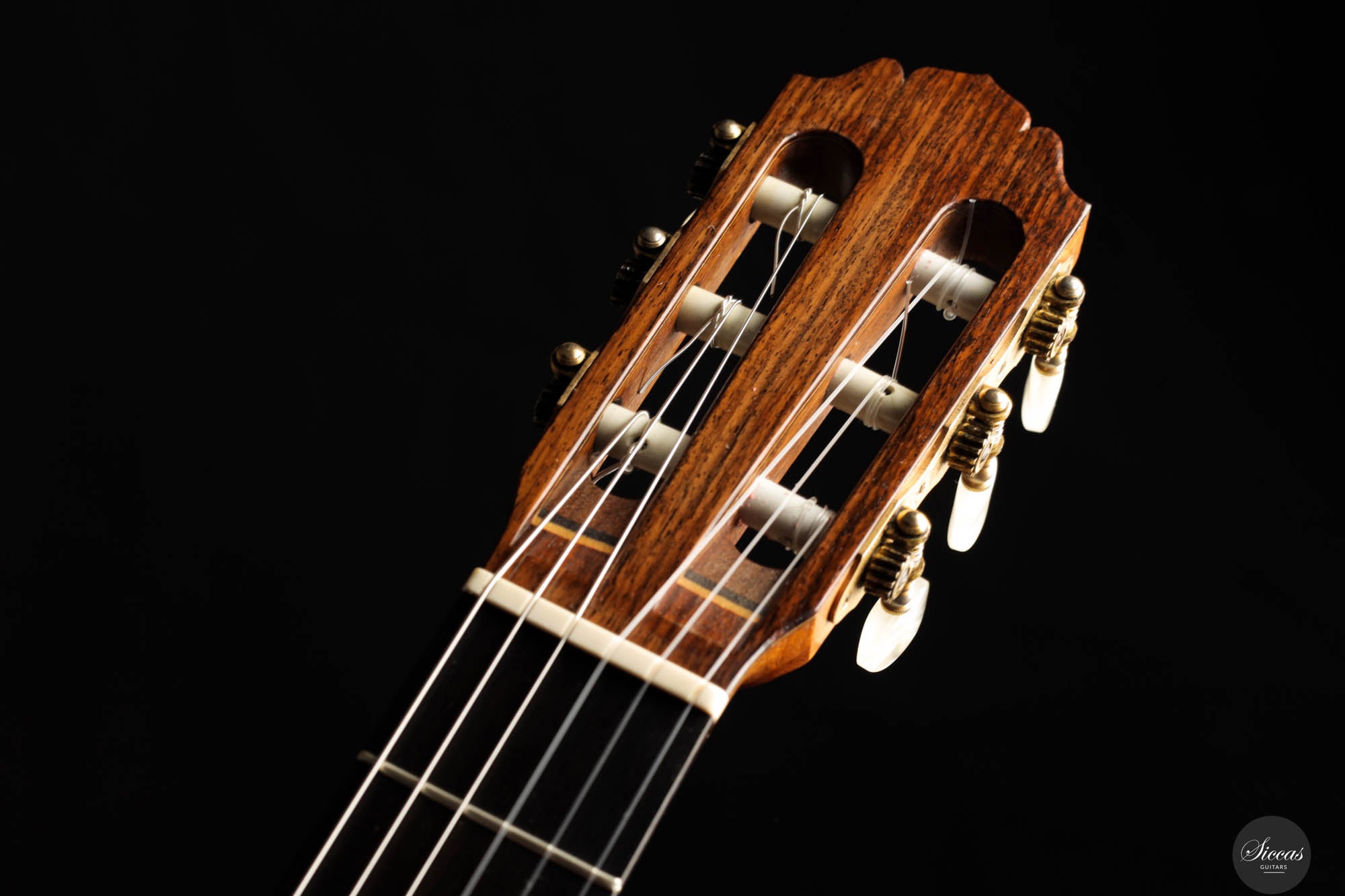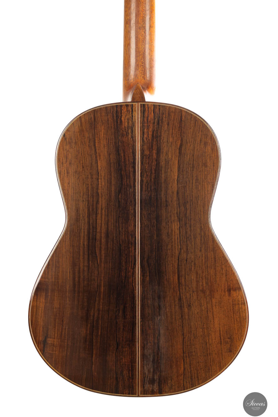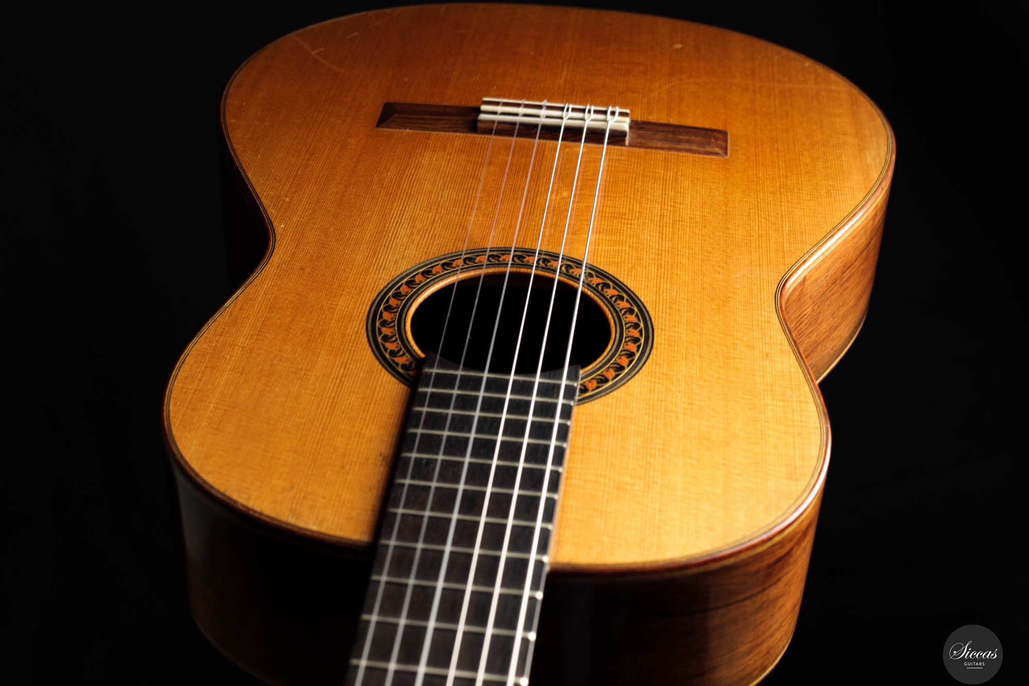 Its sound is mature and refined, offering a rich tonal palette with remarkable depth and clarity. The balance across all registers is impressive, ensuring both powerful basses and clear, singing trebles. Additionally, the guitar provides outstanding playing comfort, making it an effortless joy to play. Its exceptional state of preservation, along with its tonal maturation under optimal playing conditions, makes this a superb second-hand instrument—an excellent choice for discerning guitarists seeking both quality and history in their instrument. The condition of the instrument is very good, with normal signs of wear for its age and a professionally repaired crack on the back, which is considered stable.