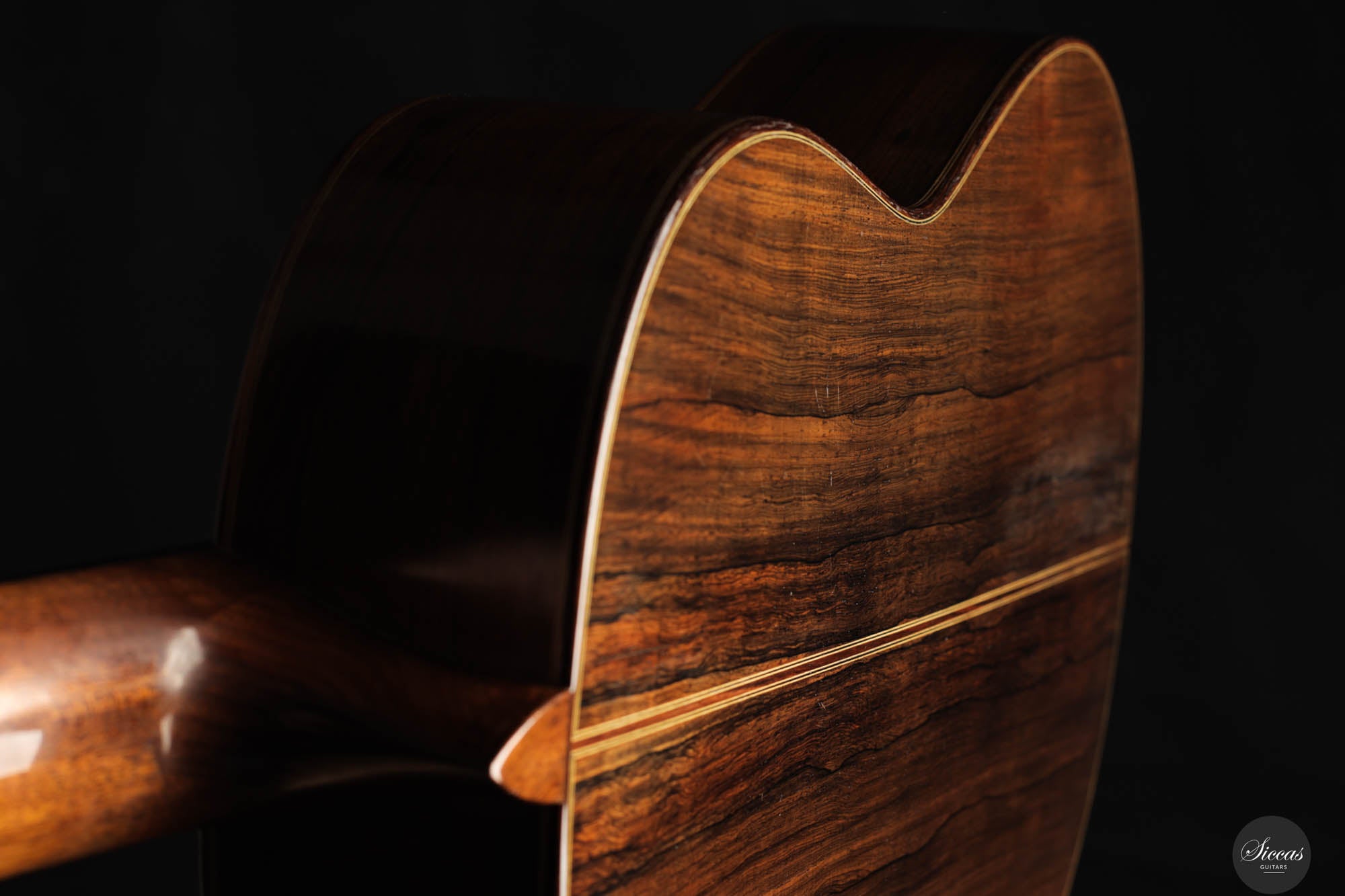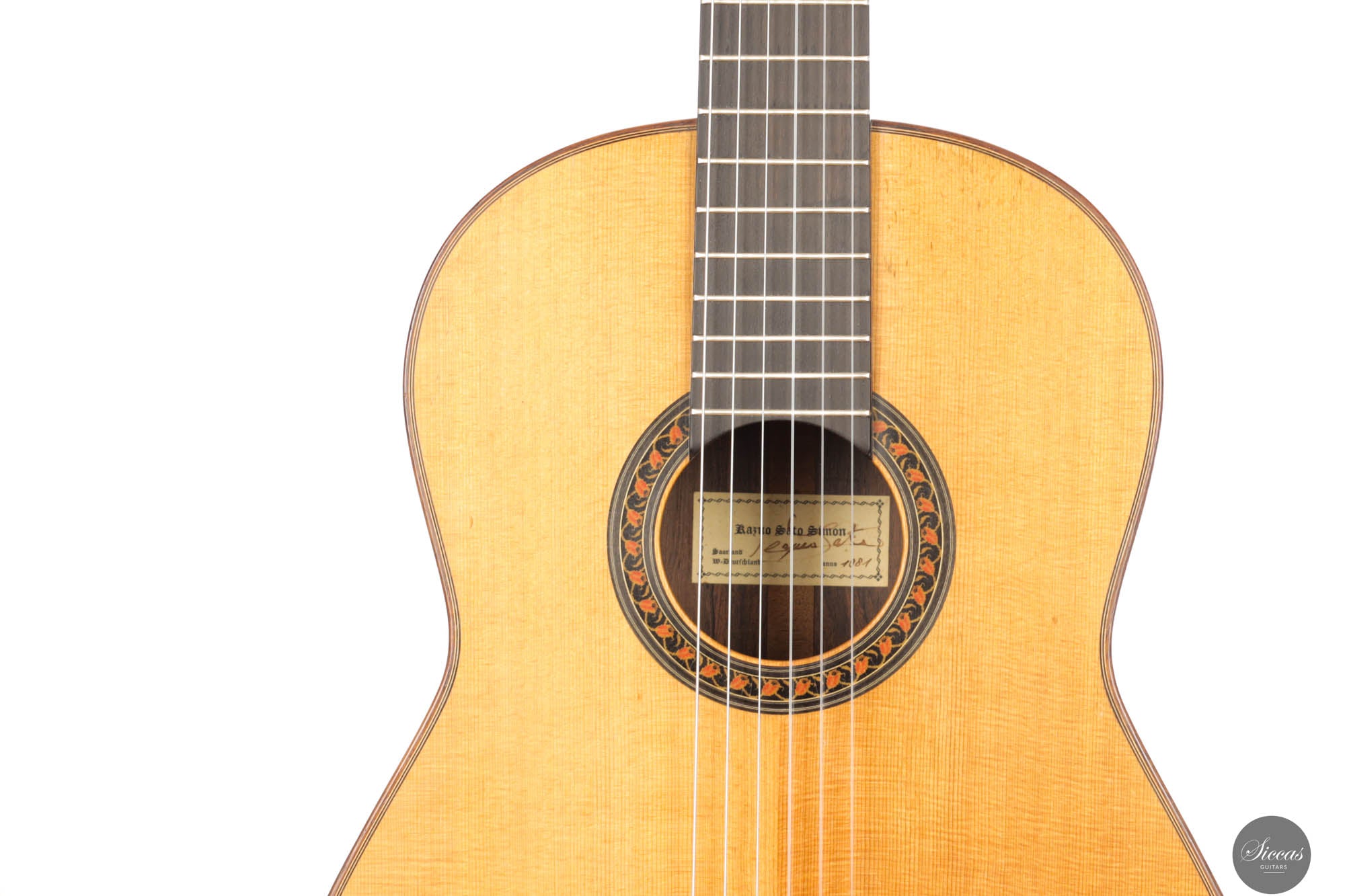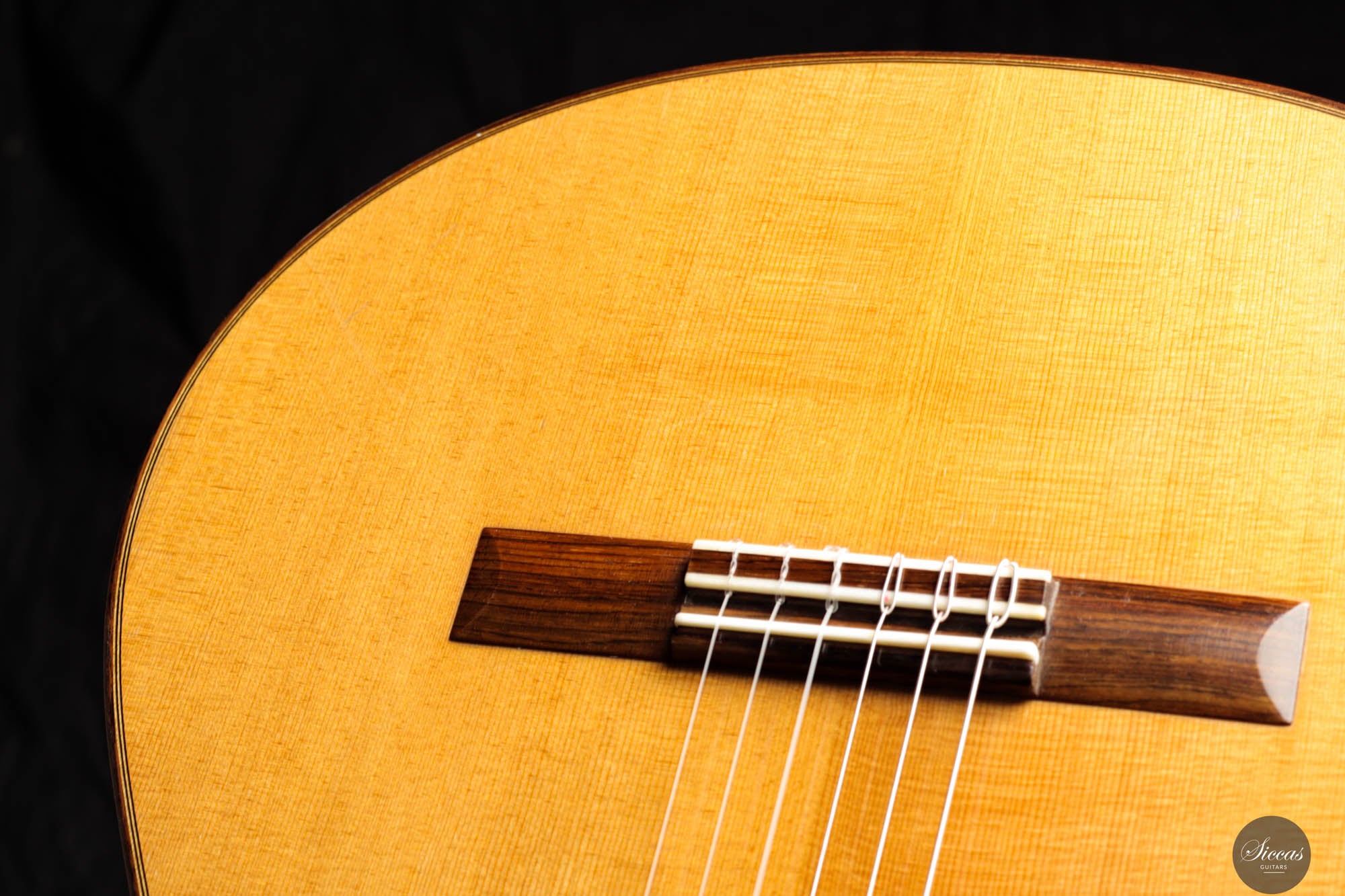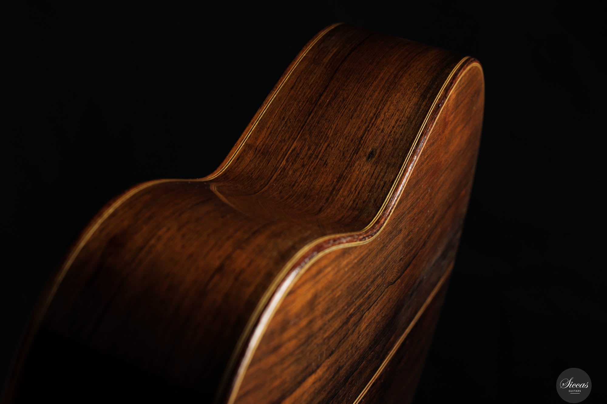 This 1981 Kazuo Sato guitar is an extraordinary instrument, featuring a spruce top paired with exquisite Brazilian rosewood back and sides. The choice of this precious tonewood enhances not only the visual elegance of the guitar but also its tonal qualities, contributing to a deep, resonant voice with exceptional sustain and warmth.