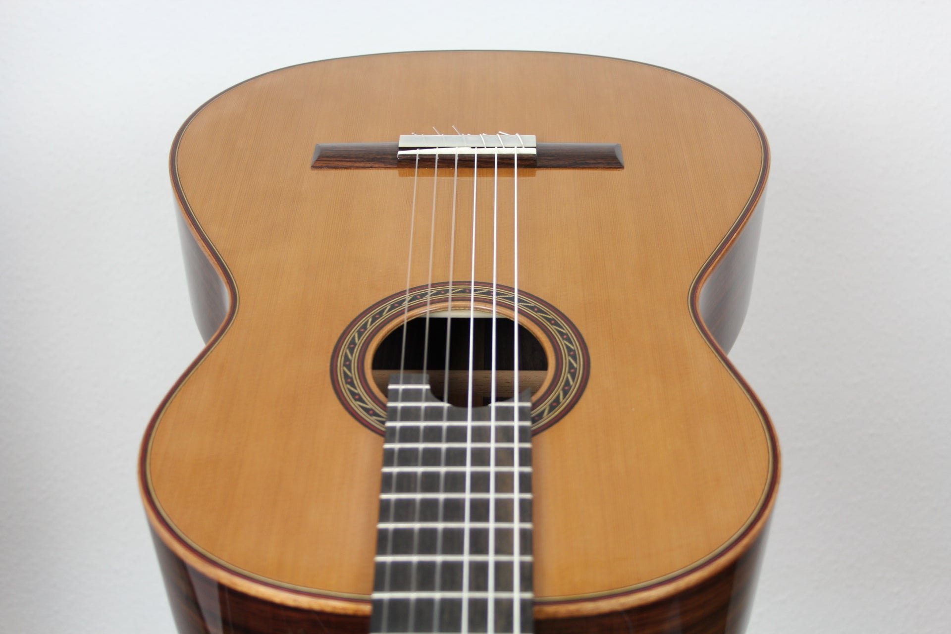 Price on requestLuthier: Ignacio FletaConstruction Year: 2018Construction Type: Traditional BuildTop: CedarBack and Sides: Indian rosewoodSoundboard Finish: French polishBody Finish: French polishAir Body Frequency: A / A sharpWeight (g): 1850Tuner: FusteroCondition: Excellent -