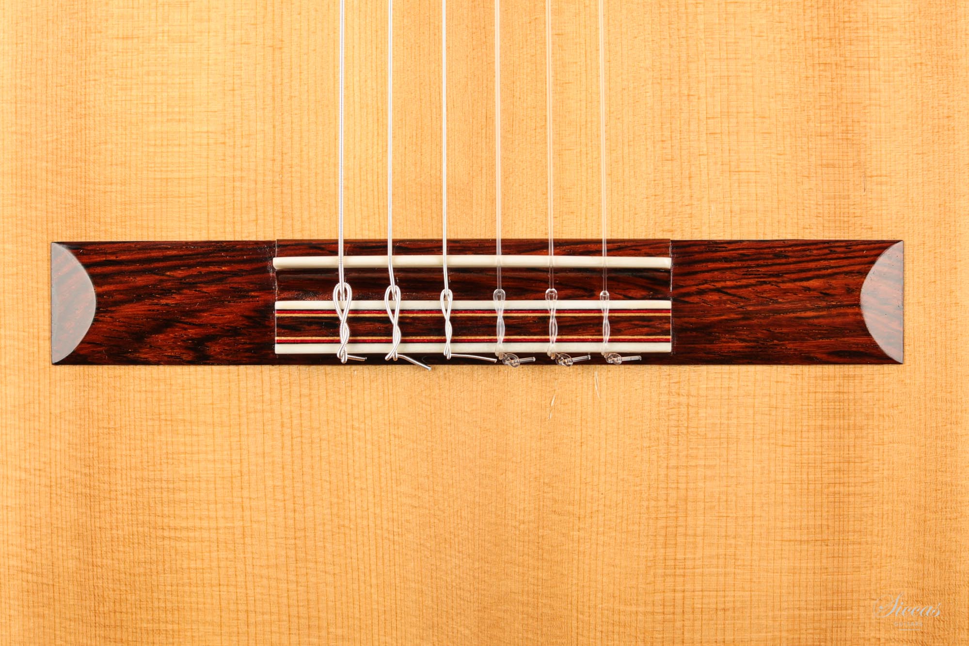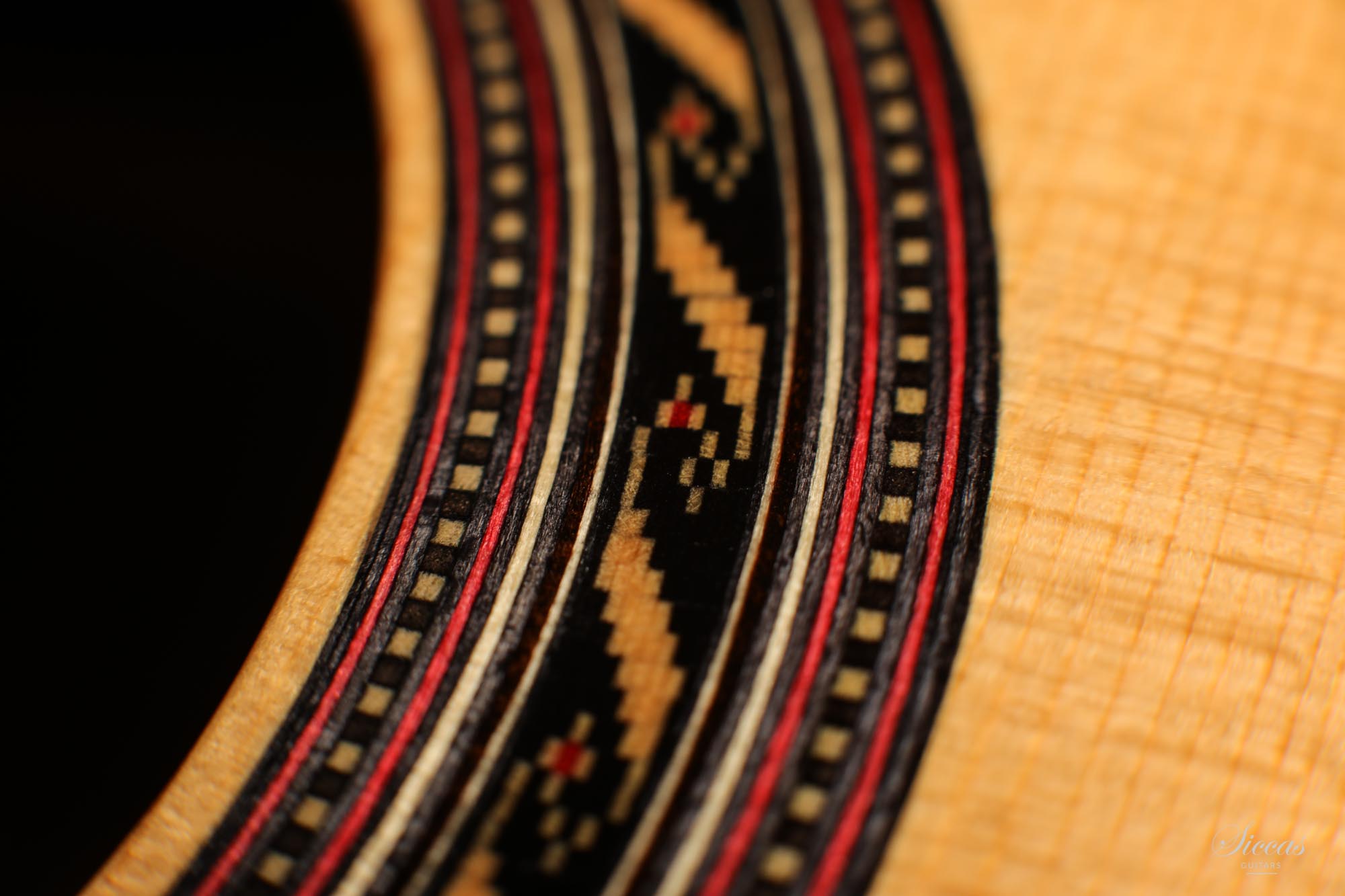 Diese Double-Top Gitarre hat ein innere Schicht aus Zeder und eine außenliegende Fichtendecke. Die Fichte gibt dem Klang ihren dominanten Charakter. Die Zargen sind aus indischem Palisander und zudem mit Zypresse laminiert. Die Mechaniken sind von Sloane. Das Signature-Modell hat ein erhöhtes Griffbrett, welches das Spielen in hohen Lagen bequemer macht. Ein weiteres Merkmal sind die zwei zusätzlichen Schalllöcher in den Zargen nahe dem Halsfuß, die den Luftstrom durch den Klangkörper erhöhen und der Decke mehr „Bewegungsfreiheit“ verschaffen sollen. Dadurch kann sich der Spieler selbst besser hören und die so genannten „Sound Ports“ tragen zusätzlich zur Klarheit, Transparenz und Tiefe bei. Dieses Signature-Modell von 2009 befindet sich in sehr gutem Zustand mit nur einigen oberflächlichen Spielspuren und ohne jegliche Risse oder Reparaturen. Die Gitarre hat einen großen Dynamikbereich und eine sehr schöne klangliche Farbpalette.