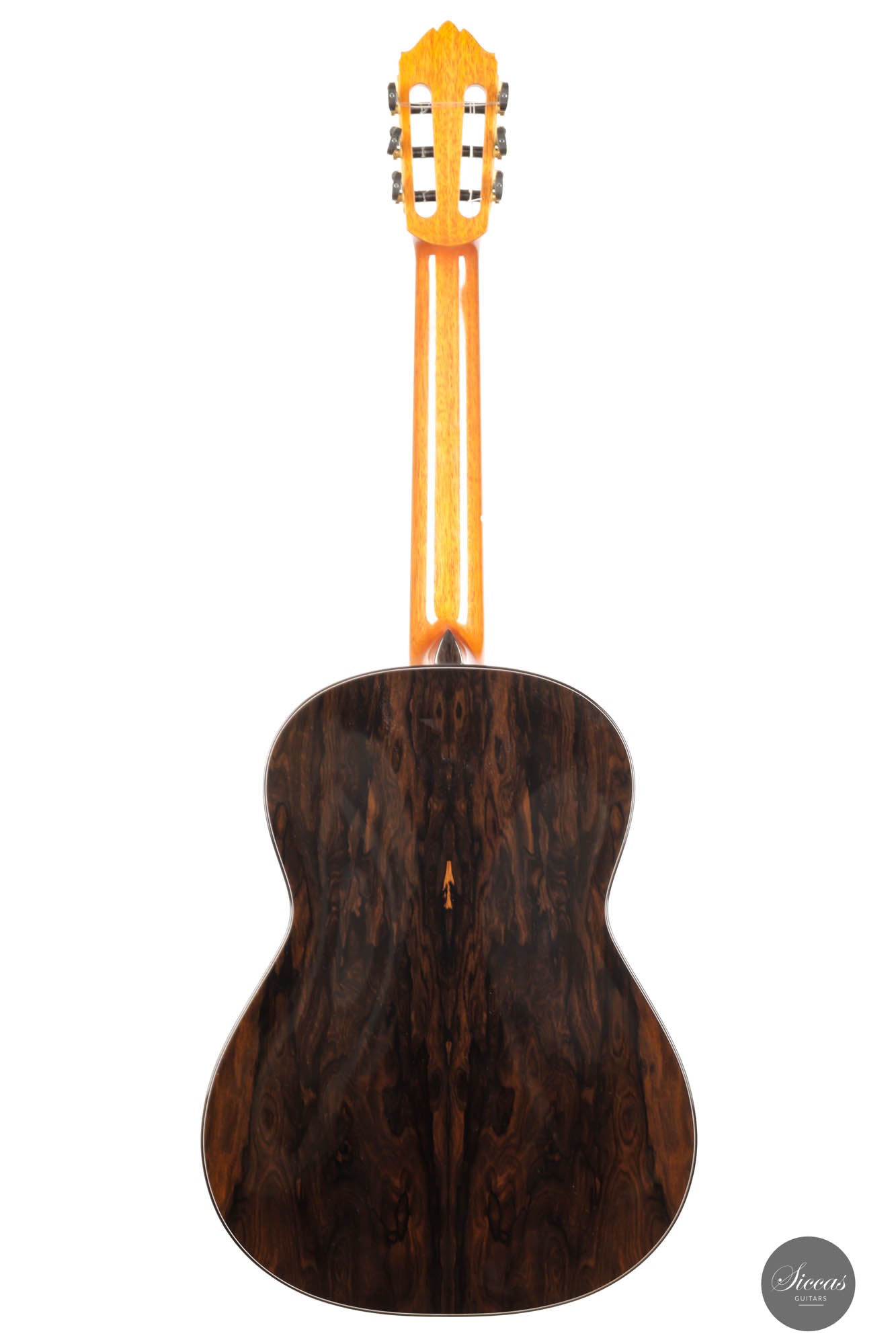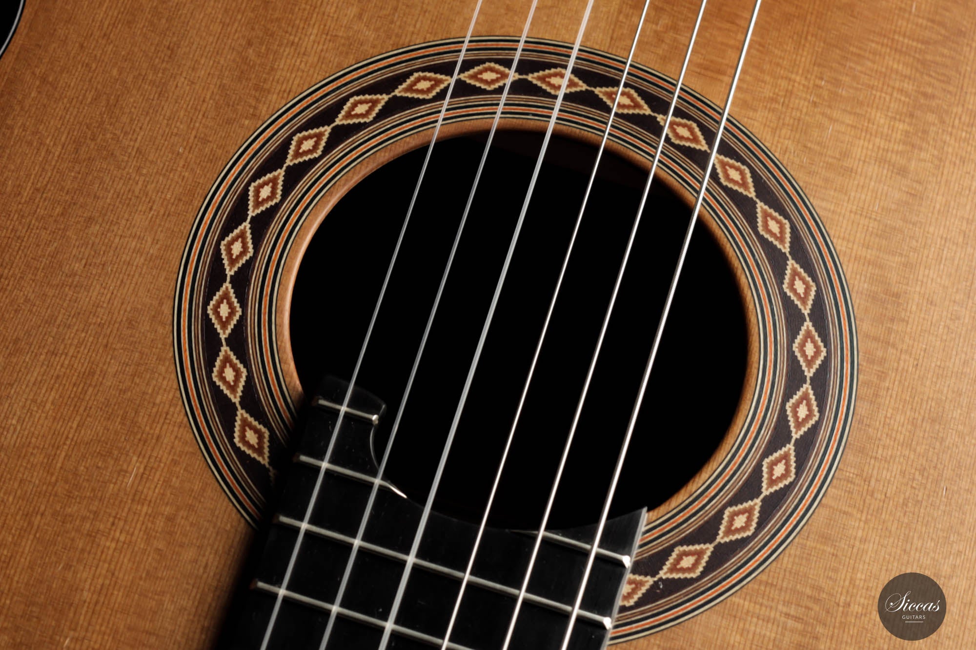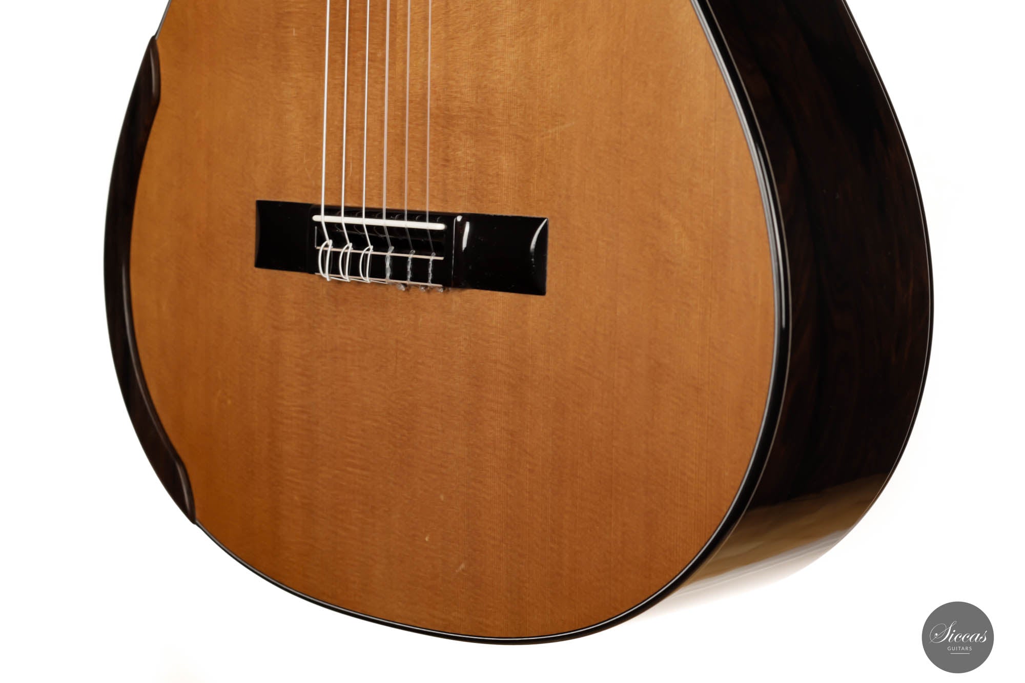 This 2017 lattice guitar is in very good condition. As a pre-loved instrument, it displays minimal playing wears but nothing structural. This beautiful instrument was crafted with an exceptionally thin, responsive cedar top and beautiful dark-grained Ziricote back and sides. The expressive power emanating from this guitar is impressive, making this instrument by Kim Lissarrague of our top 5 most powerful guitars. Not only does it impress with its volume of sound, but also its very rich and flexible tone. This instrument is definitely a true concert powerhouse that can be played in any concert setting. The responsive and strong trebles make this guitar easy for the right hand. Combined with an exceptional neck shape, this guitar is a pure joy to play.