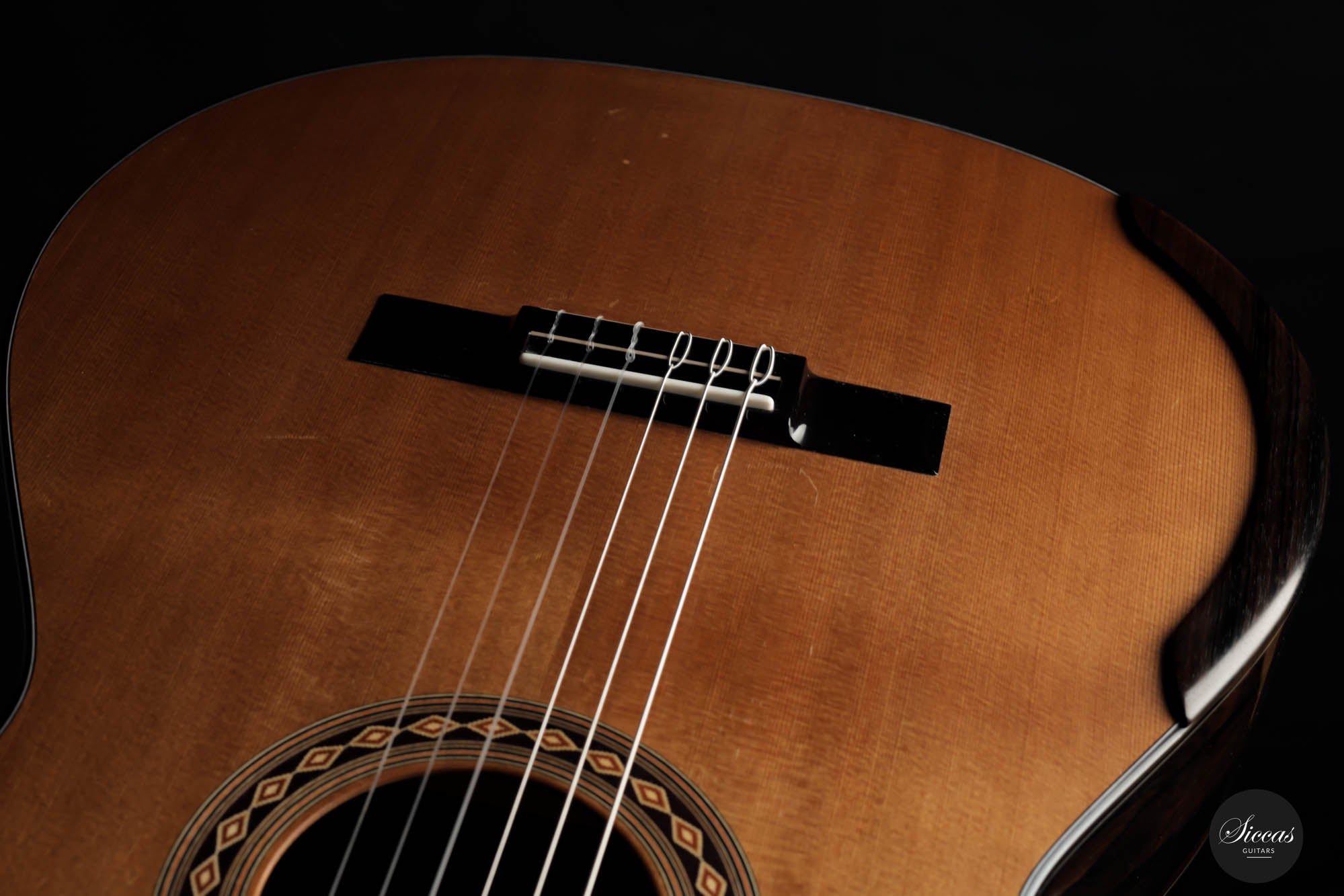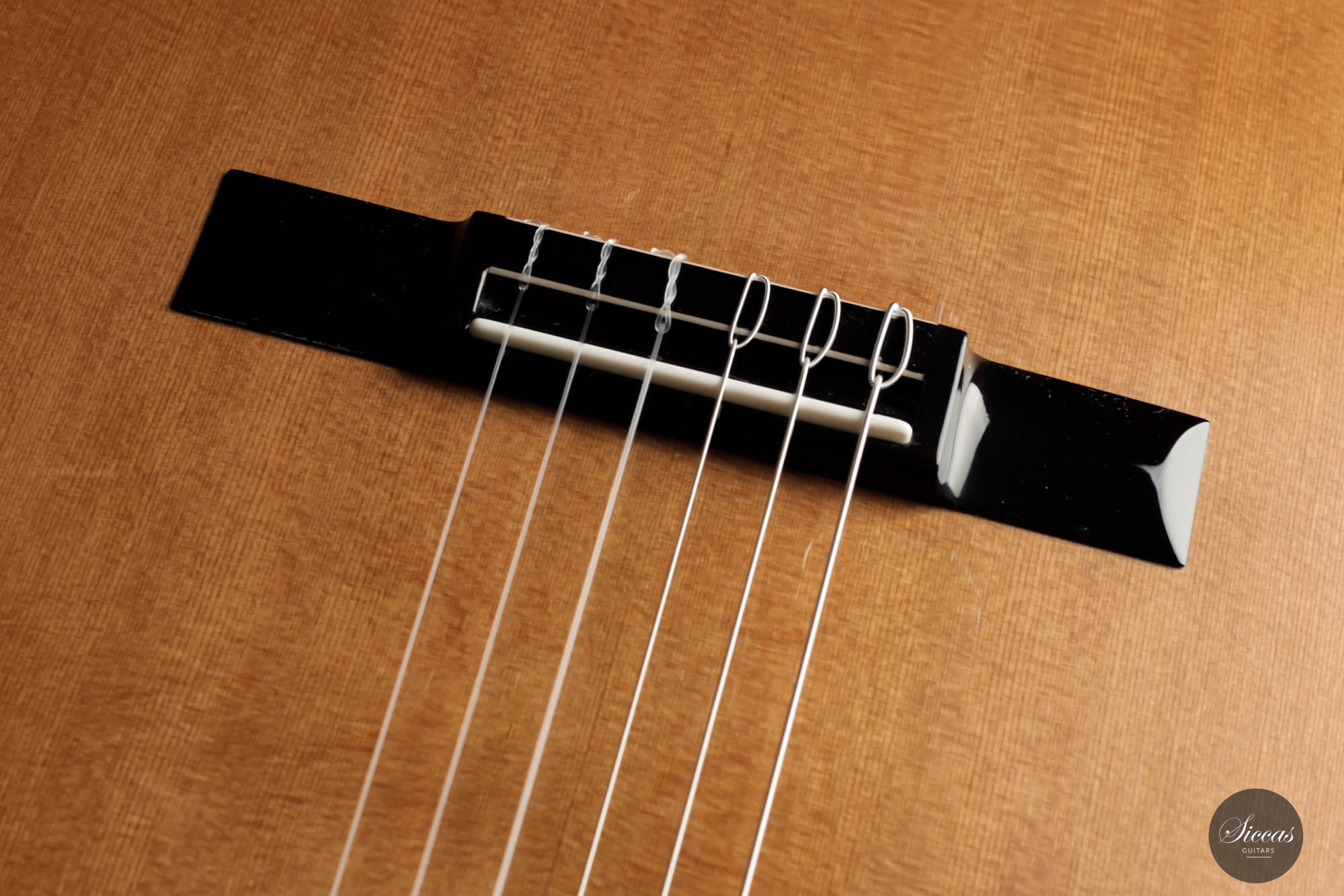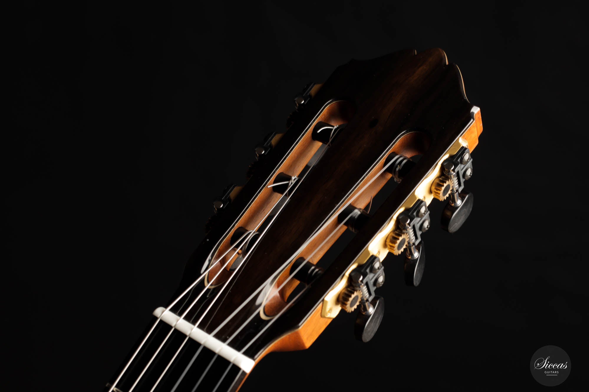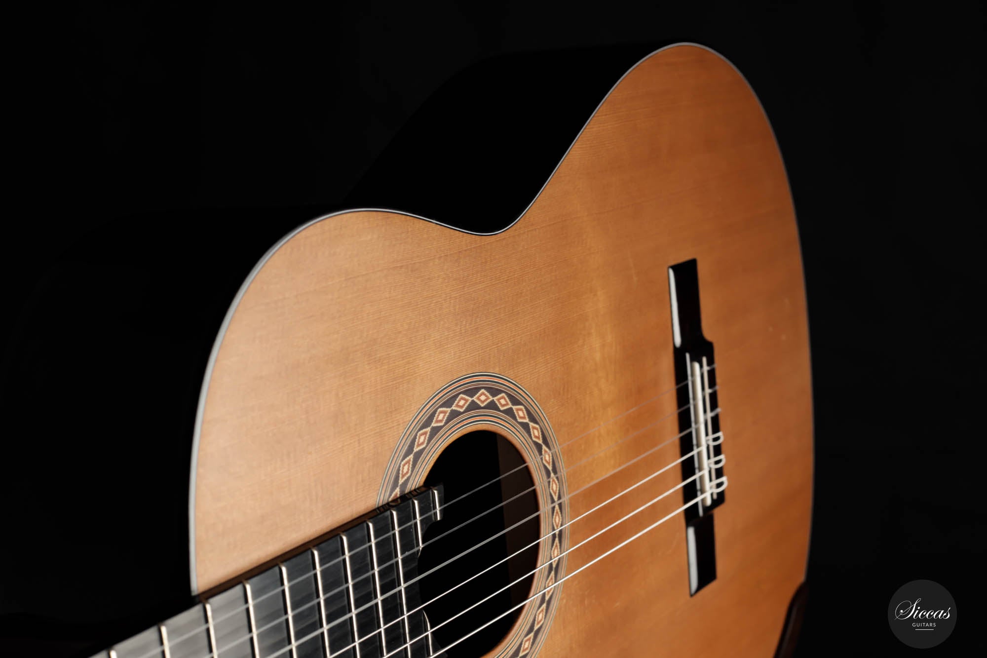 This 2017 lattice guitar is in very good condition. As a pre-loved instrument, it displays minimal playing wears but nothing structural. This beautiful instrument was crafted with an exceptionally thin, responsive cedar top and beautiful dark-grained Ziricote back and sides. The expressive power emanating from this guitar is impressive, making this instrument by Kim Lissarrague of our top 5 most powerful guitars. Not only does it impress with its volume of sound, but also its very rich and flexible tone. This instrument is definitely a true concert powerhouse that can be played in any concert setting. The responsive and strong trebles make this guitar easy for the right hand. Combined with an exceptional neck shape, this guitar is a pure joy to play.
