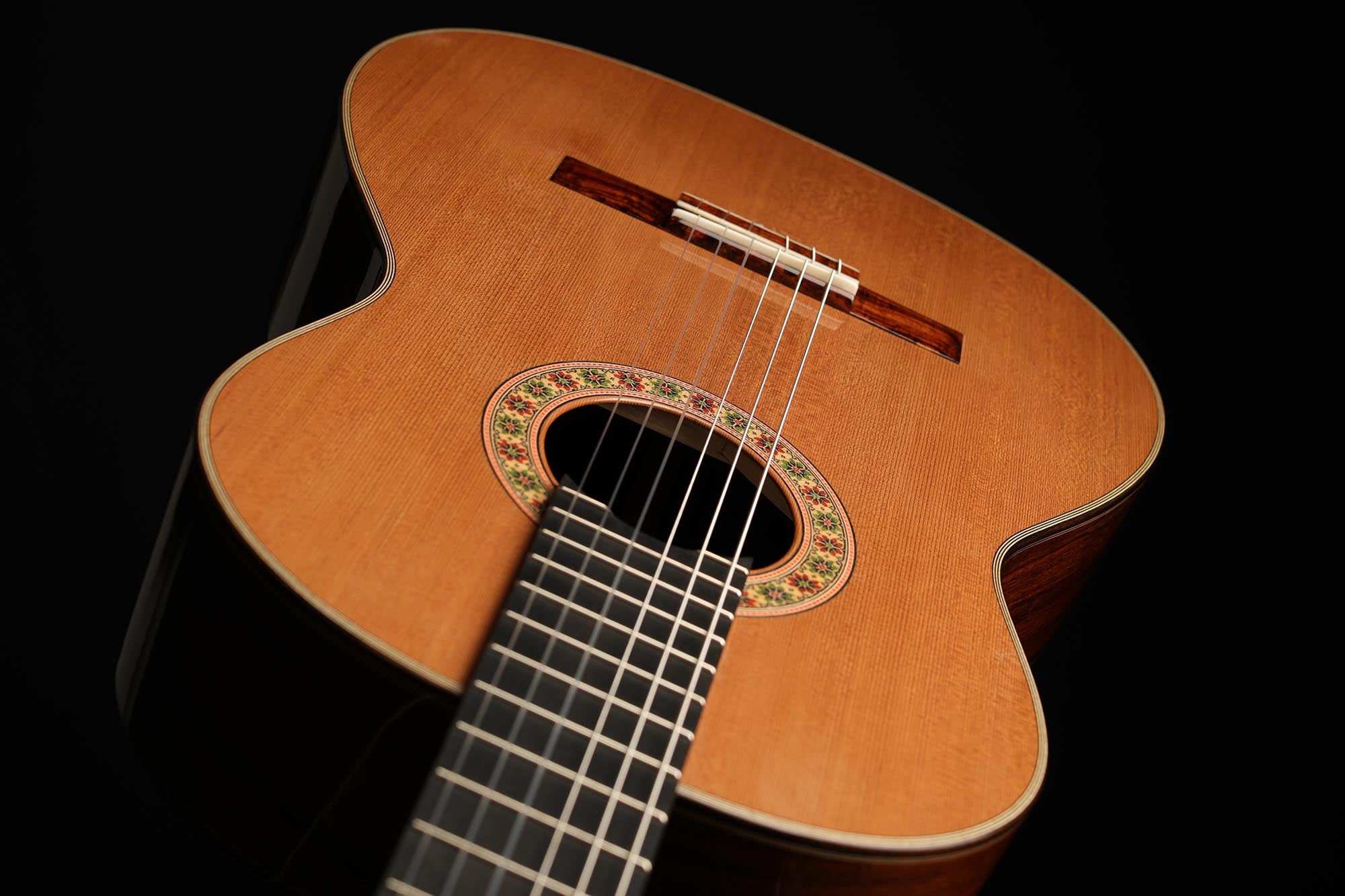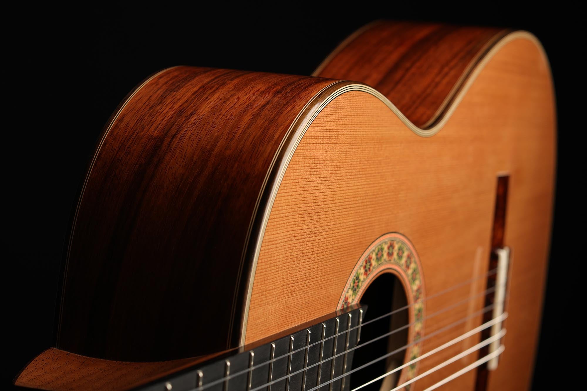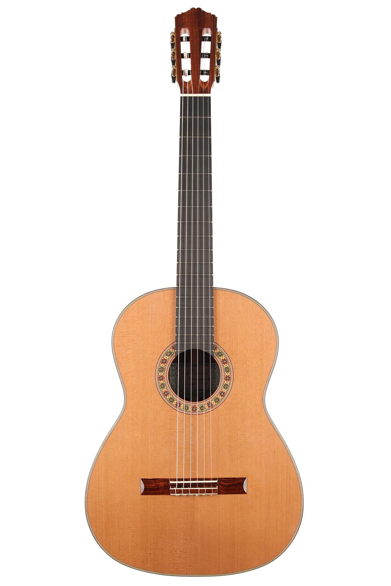 The cathedral model is based on Celedonio Romero's church gate guitar by Miguel Rodriguez, also known as "La Catedral".