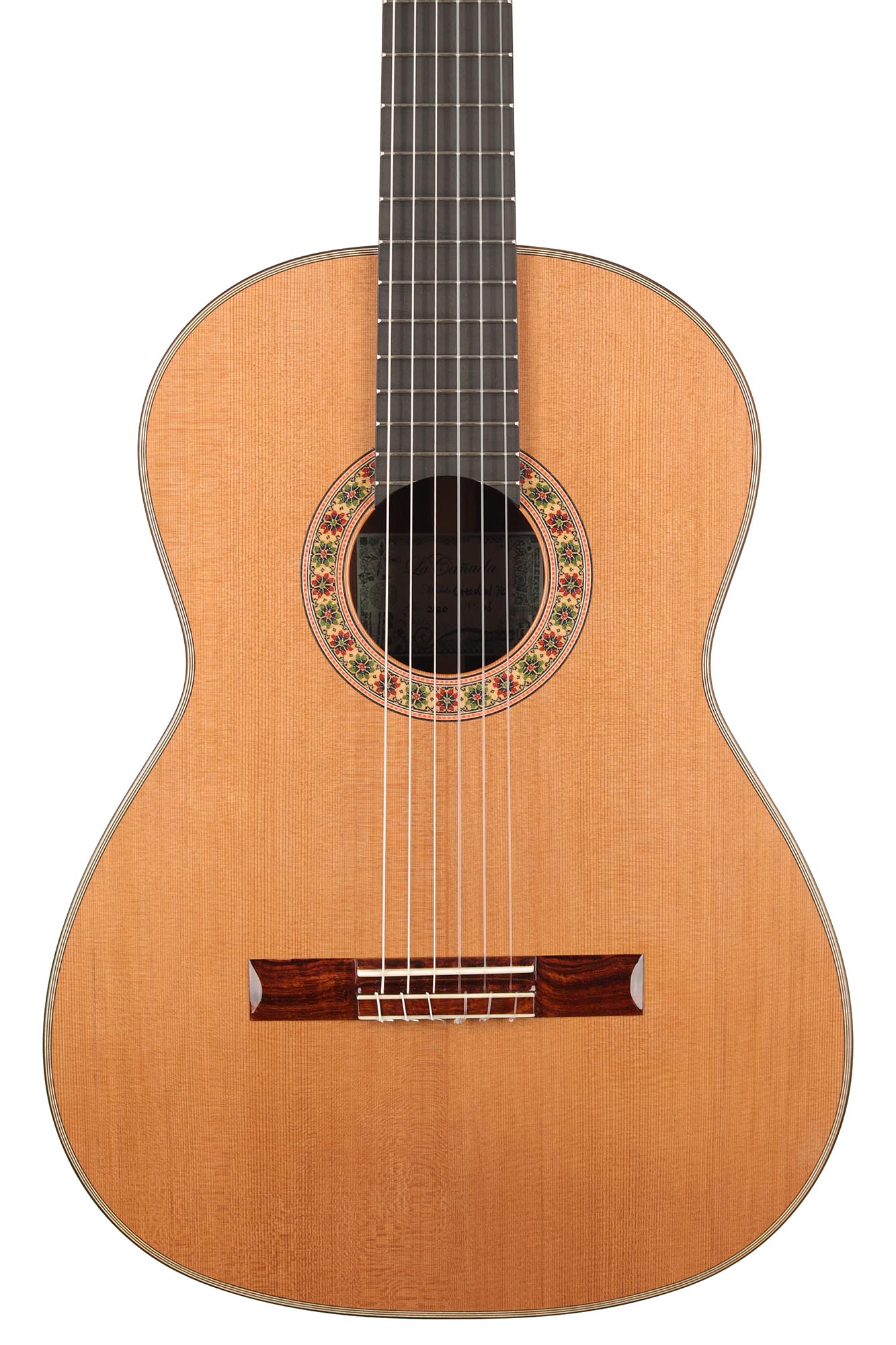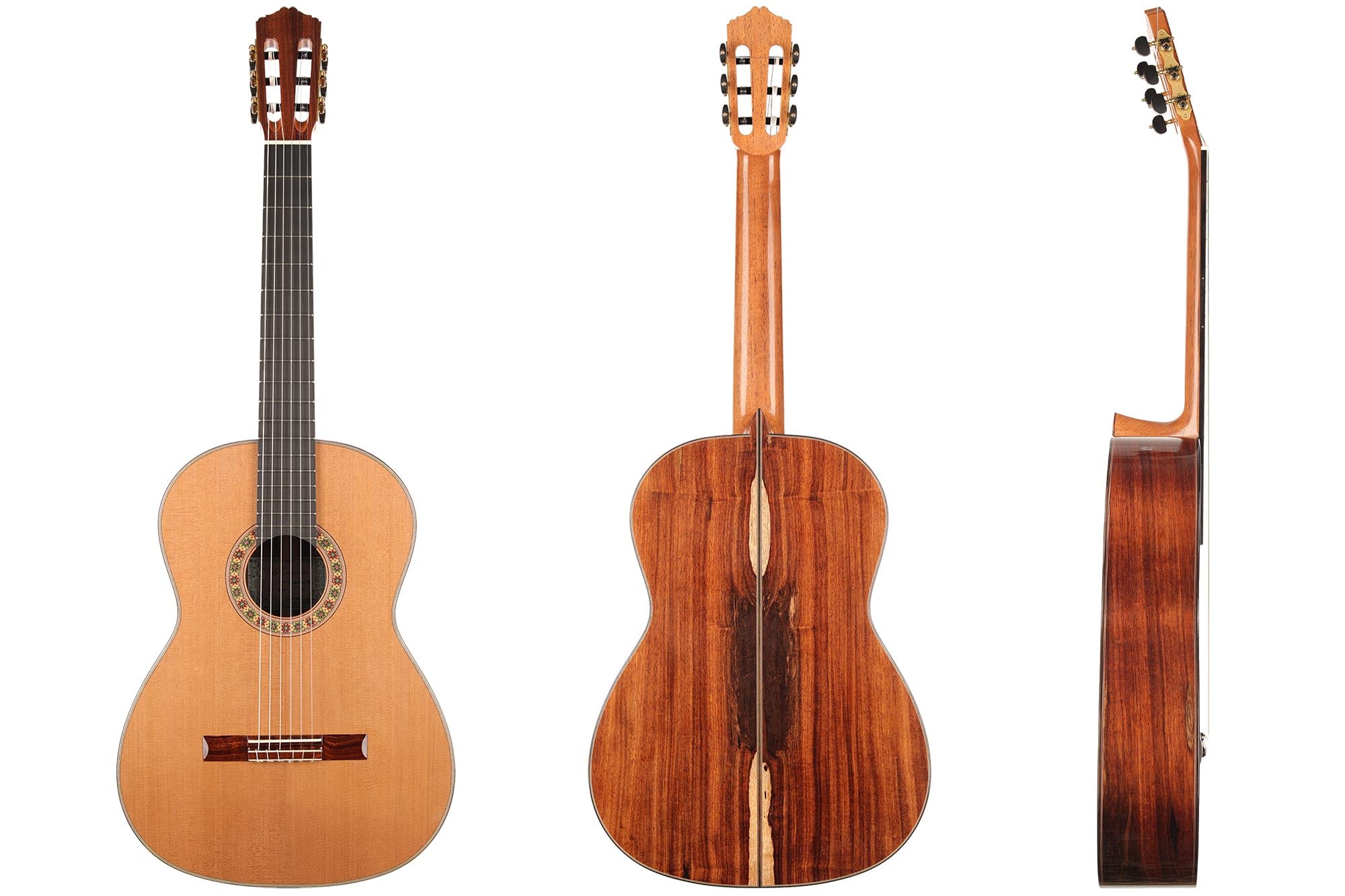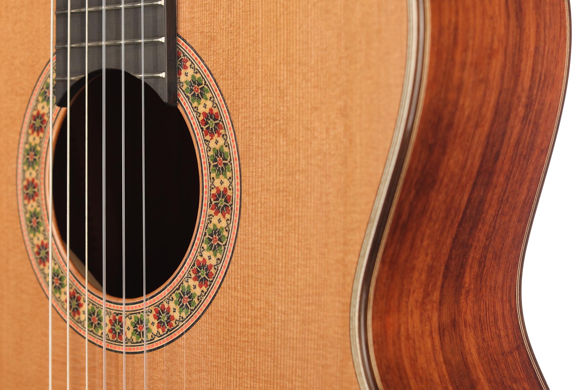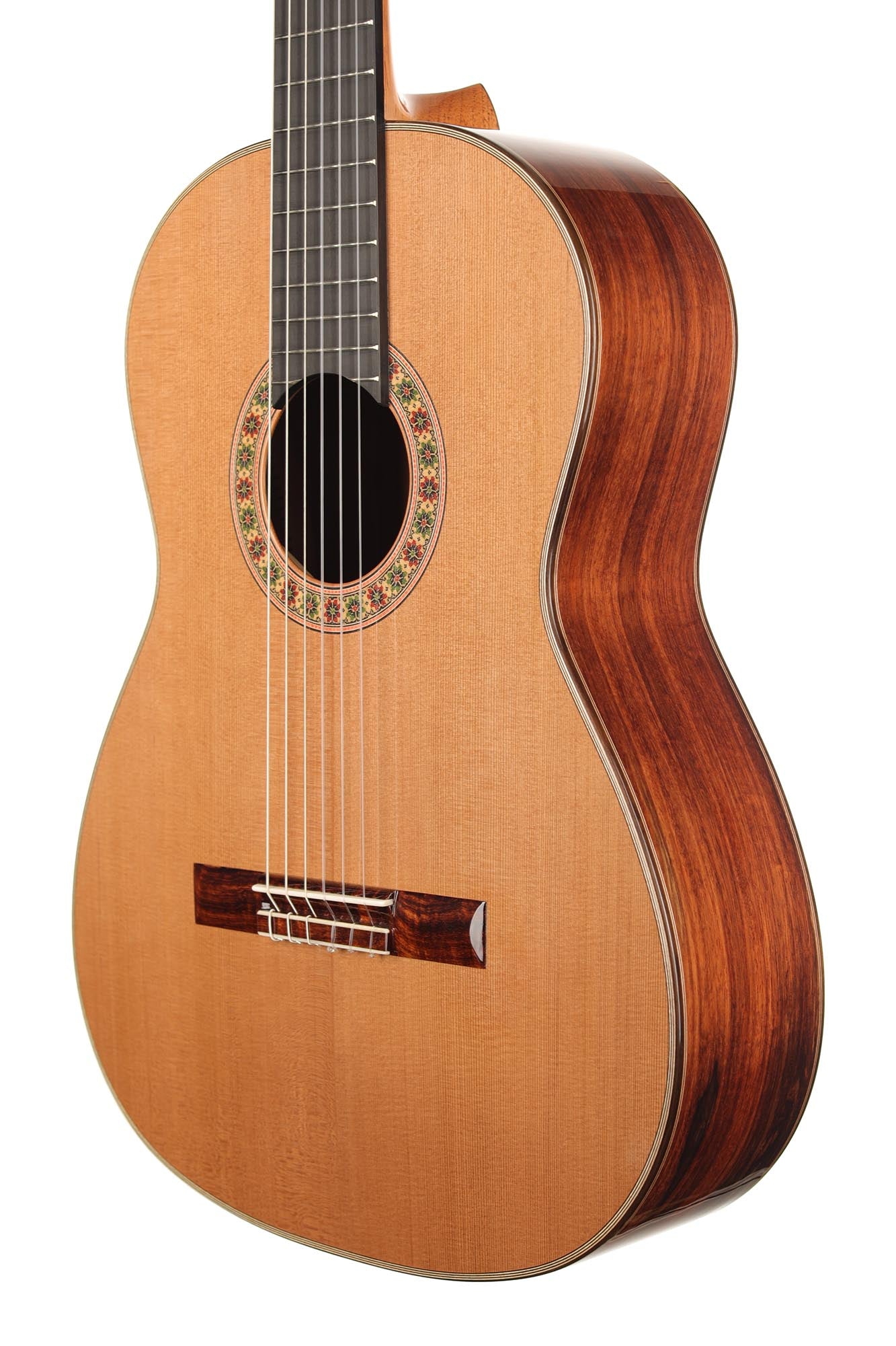 The cathedral model is based on Celedonio Romero's church gate guitar by Miguel Rodriguez, also known as "La Catedral".