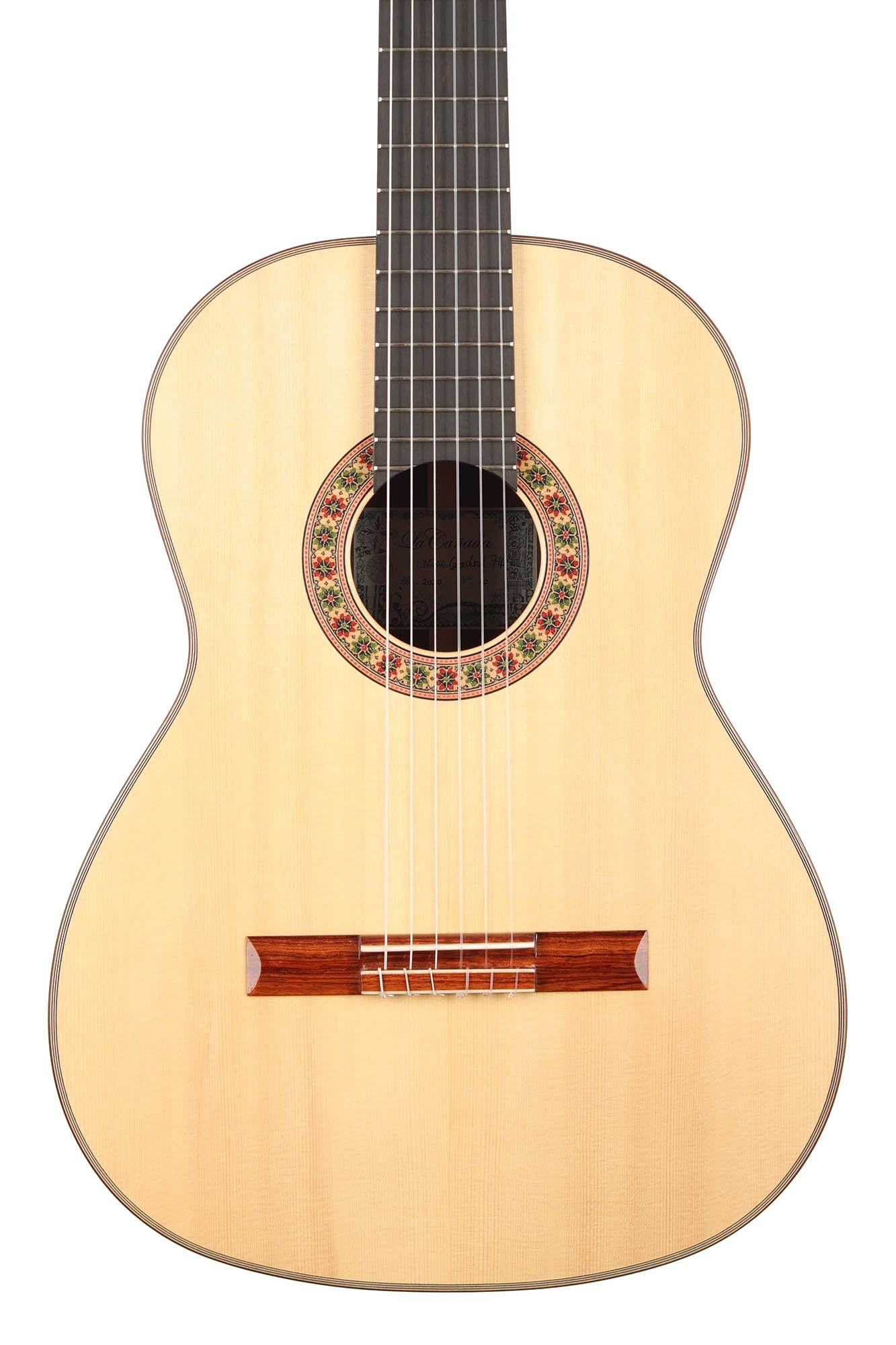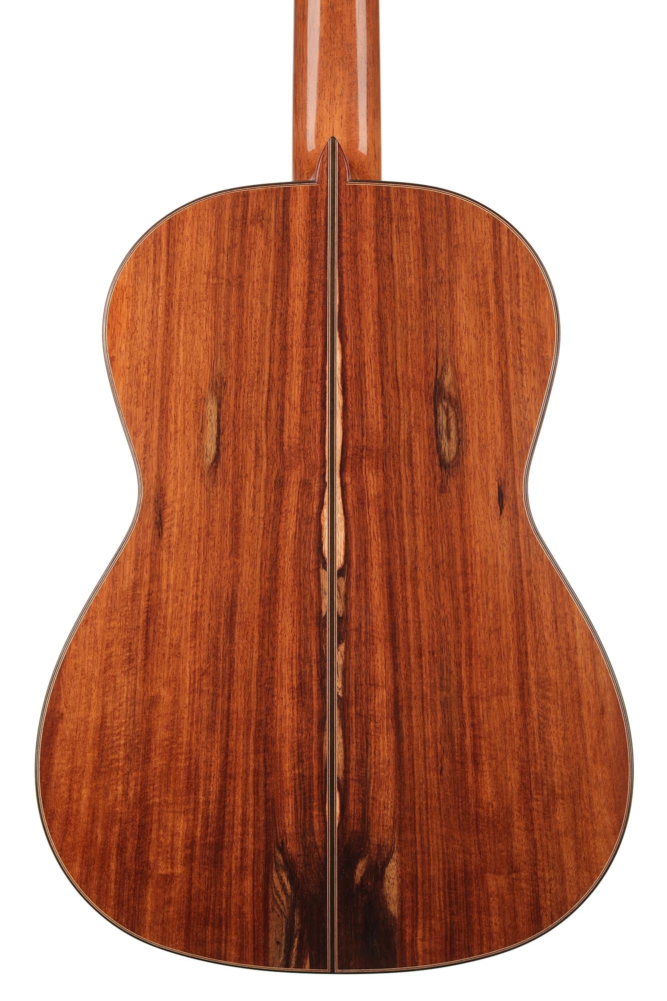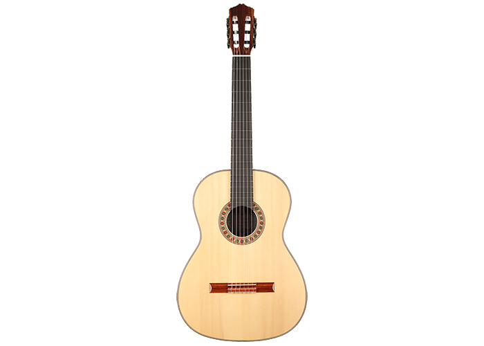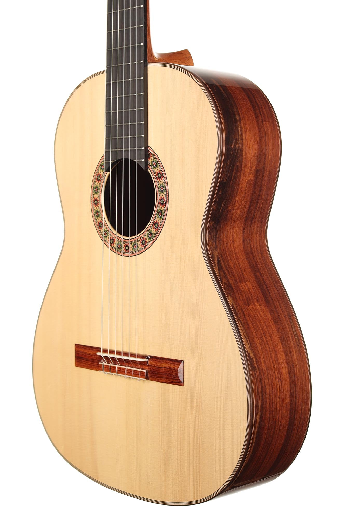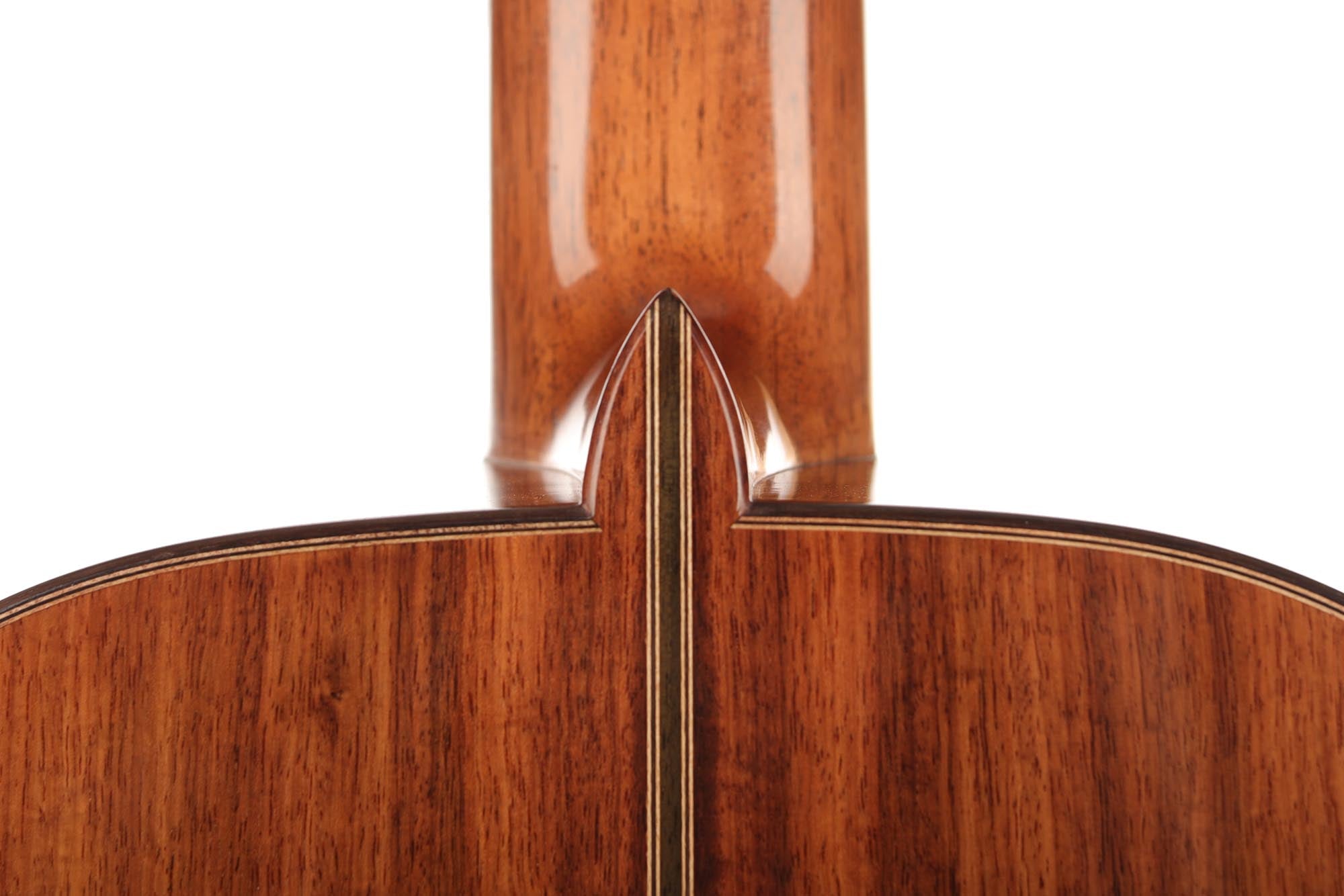 The cathedral model is based on Celedonio Romero’s church gate guitar by Miguel Rodriguez, also known as “La Catedral”.