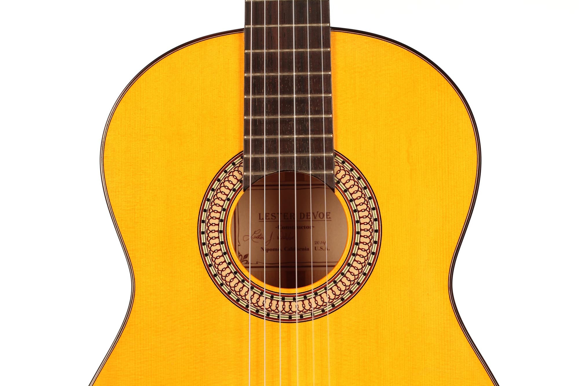 Lester Devoe is an American luthier from the central coast of California. He began studying classical guitar, and later flamenco, in the early 1970s and quickly got interest in guitar making. He is building guitars since 1975 and was greatly inspired by his guitar teacher’s 1924 Santos Hernandez. Starting with this aesthetic, he gradually developed his own ideas and style. His guitars have been played worldwide by generations of flamenco and classical players. From them one can name Sabicas, Paco de Lucia, Vicente Amigo, Grisha Goryachev, Pavel Steidl and many more.