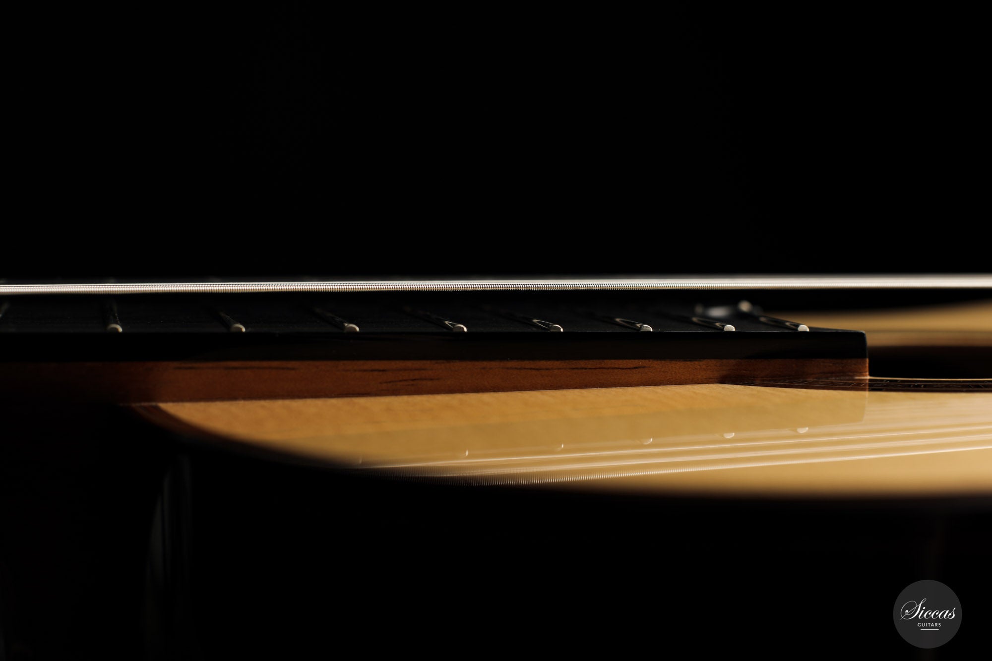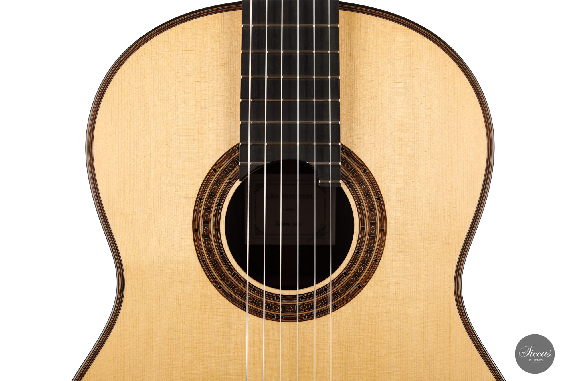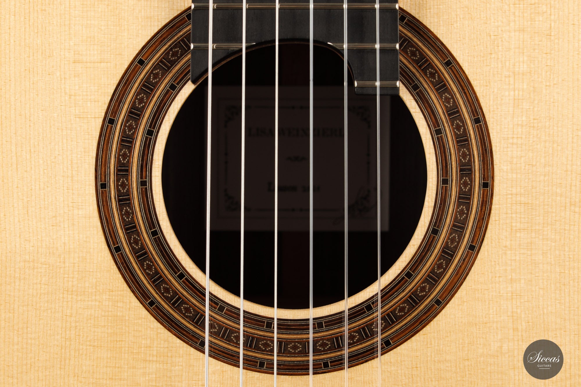 There are some guitars that truly are special and this is one of those. The craftsmanship is of the absolute highest level that we get to see here at Siccas guitars, Lisa only builds a small number of guitars per year, because she spends a lot of time to perfect the entire building process. The gorgeously crafted rosette shows some vibrant matching colors, the most splendid purflings, and a neck that is super comfortable. When playing on the instrument, one can immediately feel its responsiveness and the fine attack, a very lyrical sustain, and a deep bass response. Looking further into the design, the guitar is built with double sides that make the structural integrity more firm. Using this technique allows the luthier to build lighter, thus creating a complex tone with a lot of core. This guitar suits the musician that wants perfection delivered with a lush, sweet, and singing tone.