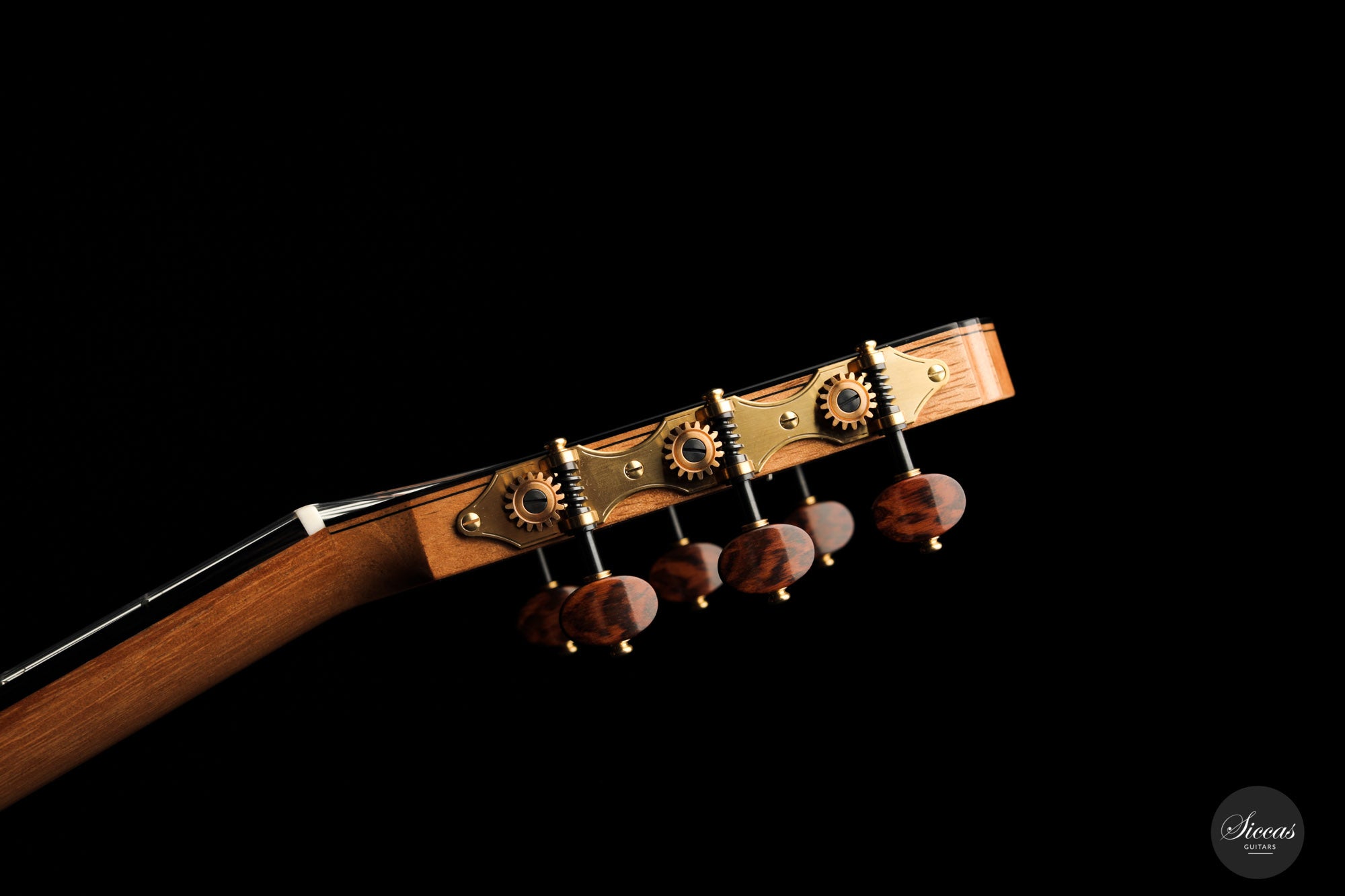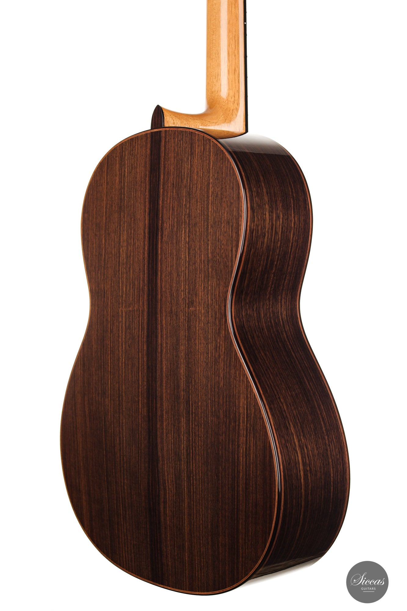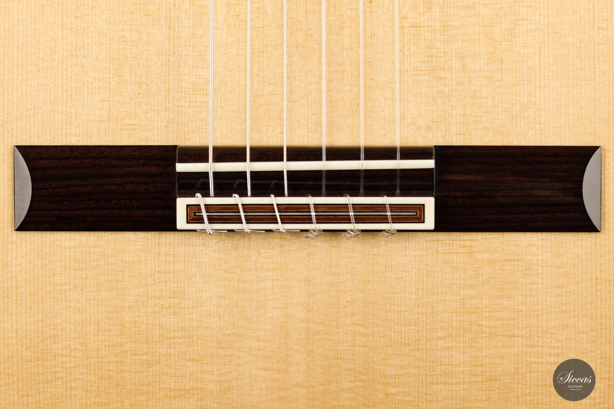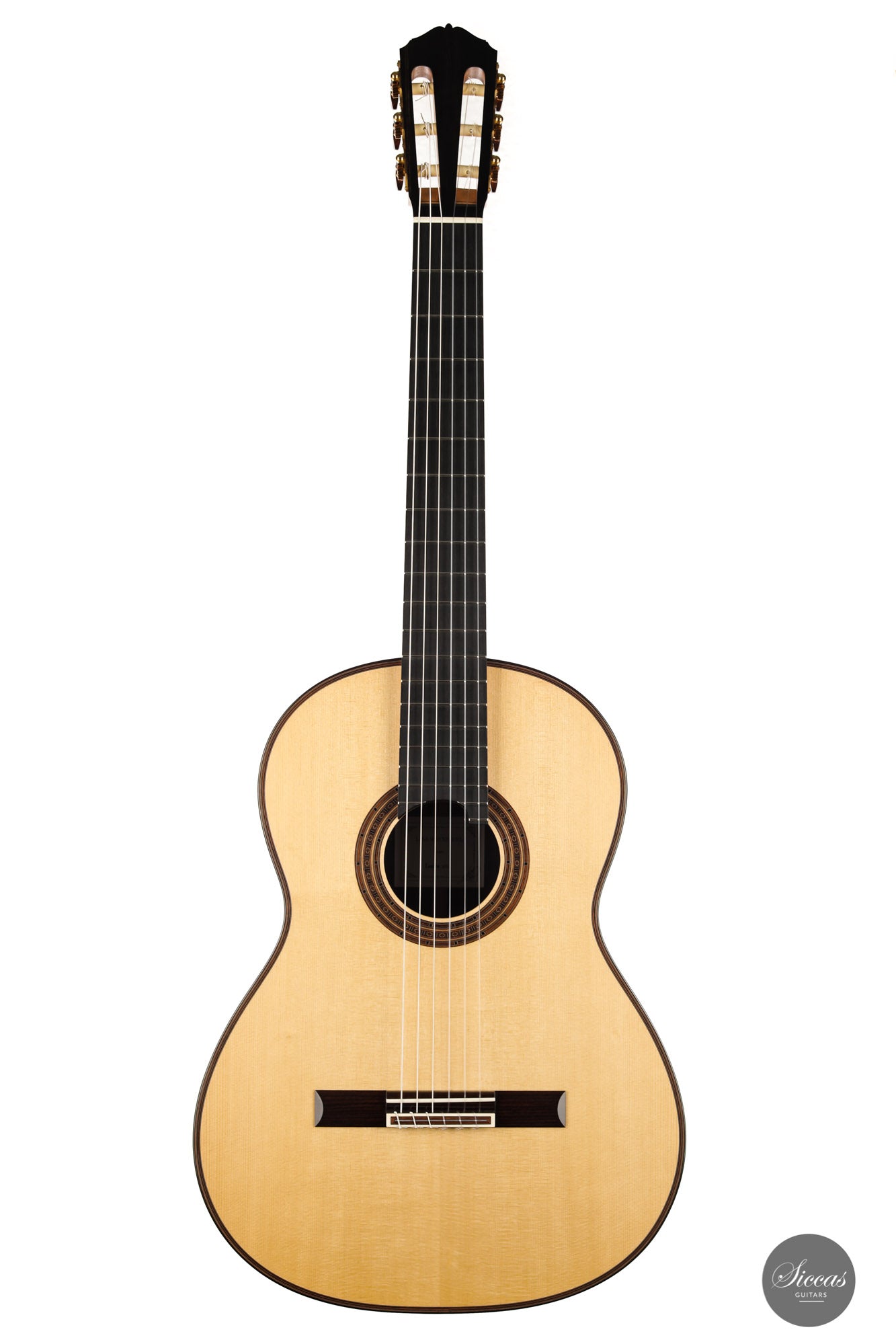 There are some guitars that truly are special and this is one of those. The craftsmanship is of the absolute highest level that we get to see here at Siccas guitars, Lisa only builds a small number of guitars per year, because she spends a lot of time to perfect the entire building process. The gorgeously crafted rosette shows some vibrant matching colors, the most splendid purflings, and a neck that is super comfortable. When playing on the instrument, one can immediately feel its responsiveness and the fine attack, a very lyrical sustain, and a deep bass response. Looking further into the design, the guitar is built with double sides that make the structural integrity more firm. Using this technique allows the luthier to build lighter, thus creating a complex tone with a lot of core. This guitar suits the musician that wants perfection delivered with a lush, sweet, and singing tone.