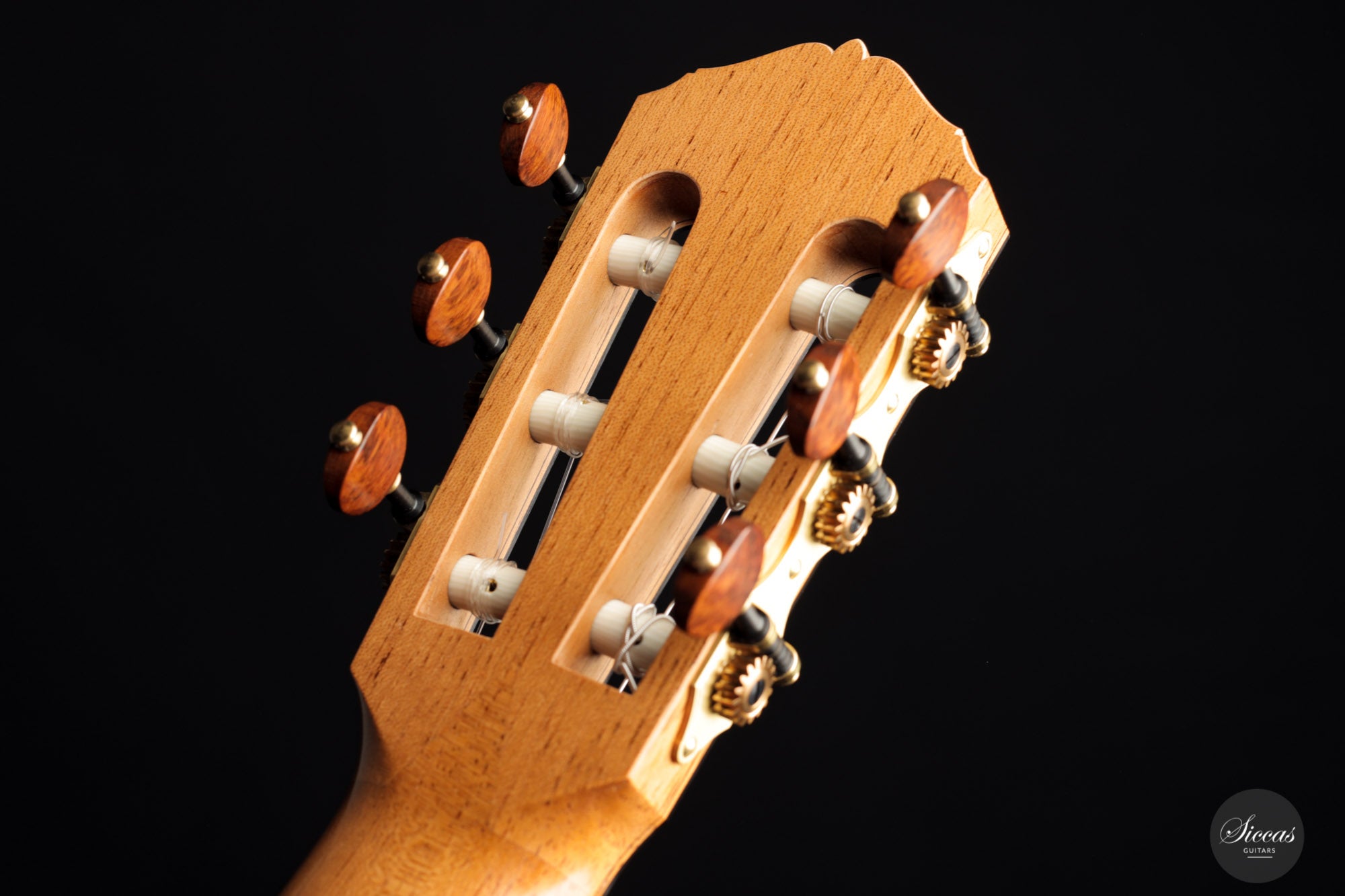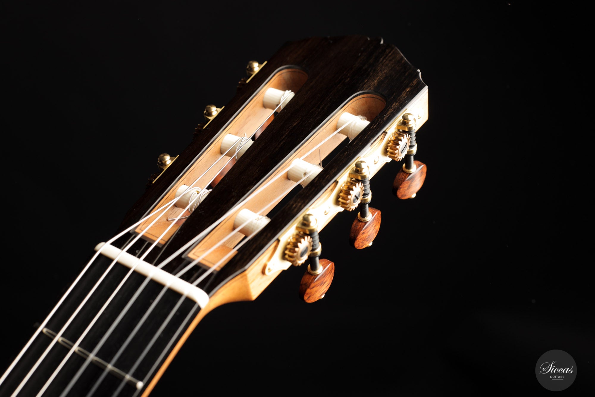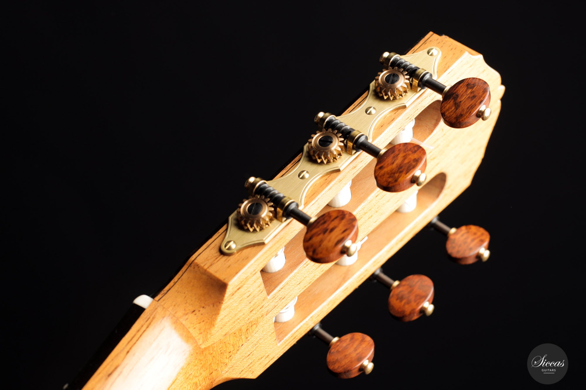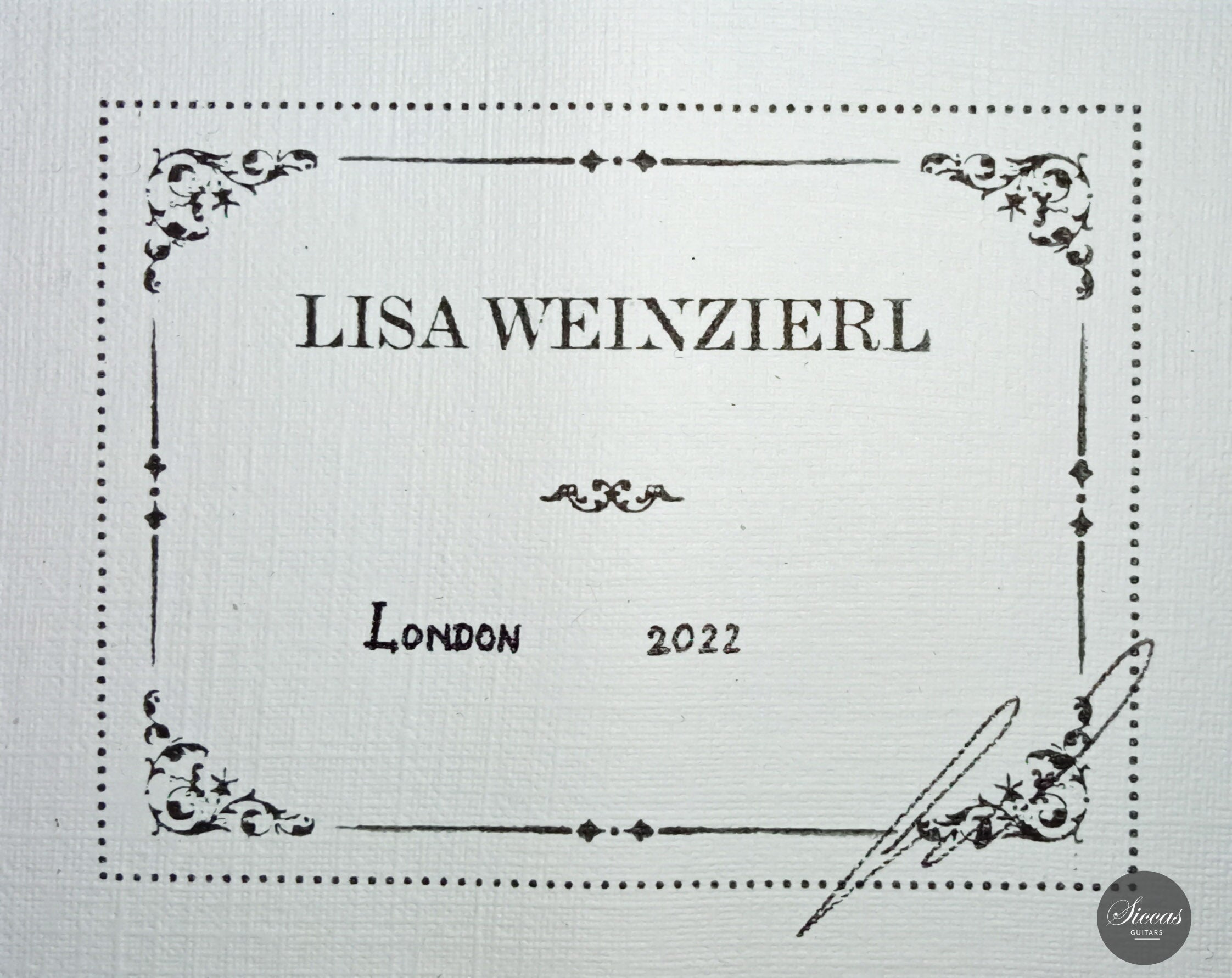 Some guitars are truly unique, and this is one of them. The craftsmanship that Lisa Weinzierl displays is simply impressive. Considering how much work she puts into each of her instruments makes it easy to understand why her annual production run is limited to just a few guitars. French polished at the highest level, Lisa's guitars show an elaborate traditional bracing, a raised fingerboard, a beautifully rounded neck with a german “V” joint, and premium quality German-made Scheller tuners. Hand-made and almost without the use of machines, her guitars are absolute gems.