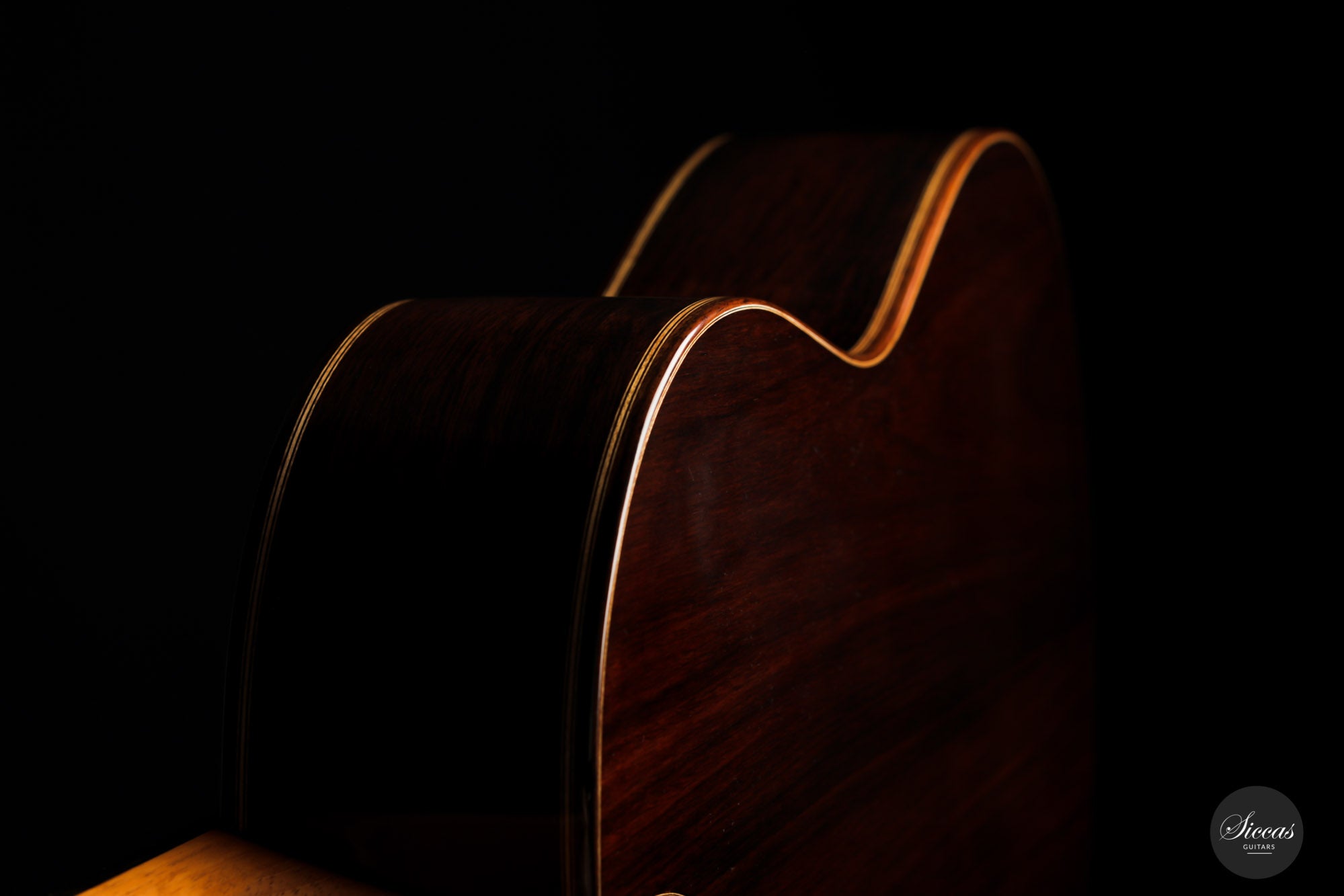 The sound exhibits a great overall balance, with deep and rich basses. It is well attuned to the richness of tone color but does not compromise the tonal vigor and lightness of playing. The treble sings beautifully and overall the character of this Italian masterpiece is reminiscent of guitars from days long gone, which may be in no small part due to Lorenzo Frignani's large collection of antique guitars; a unique sonic universe, full of inspiration for a knowledgeable master luthier of his class.
