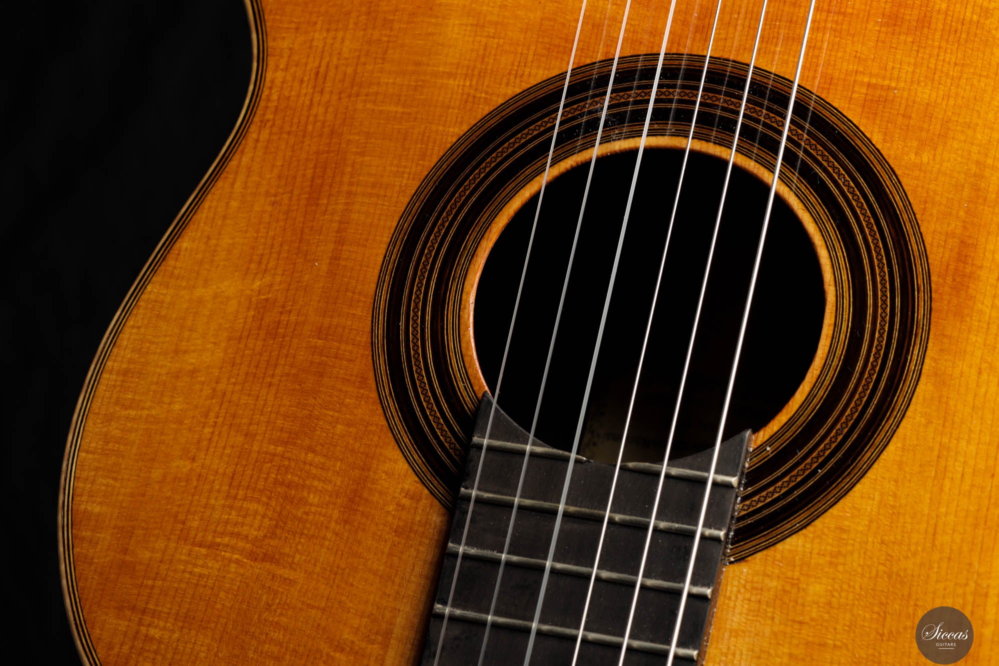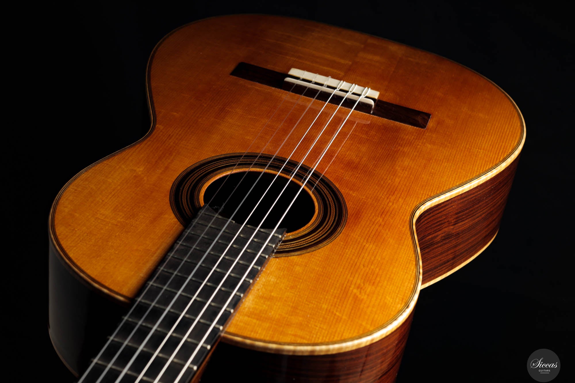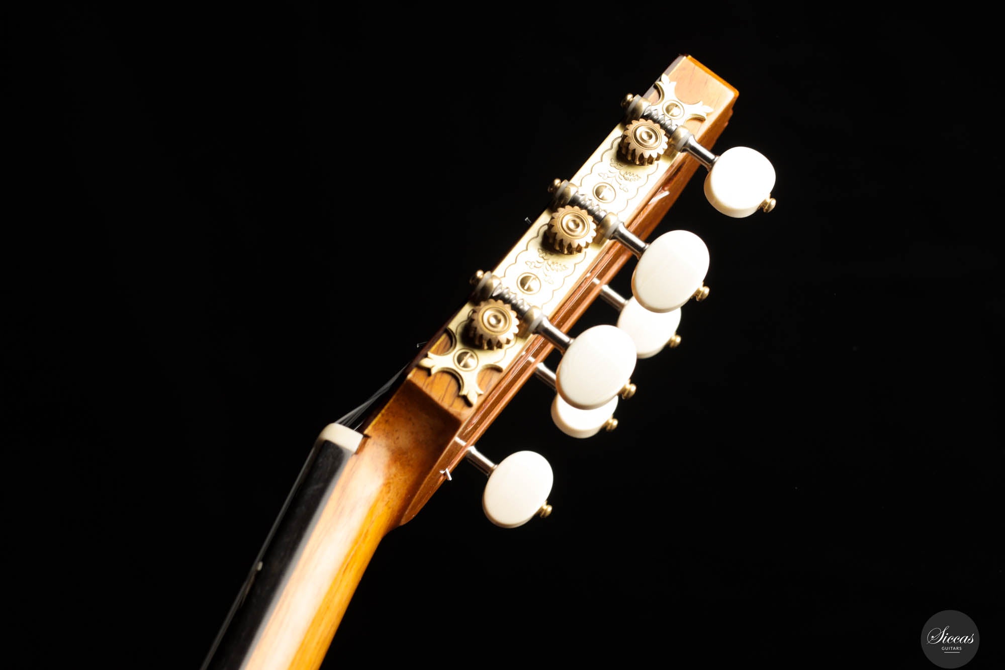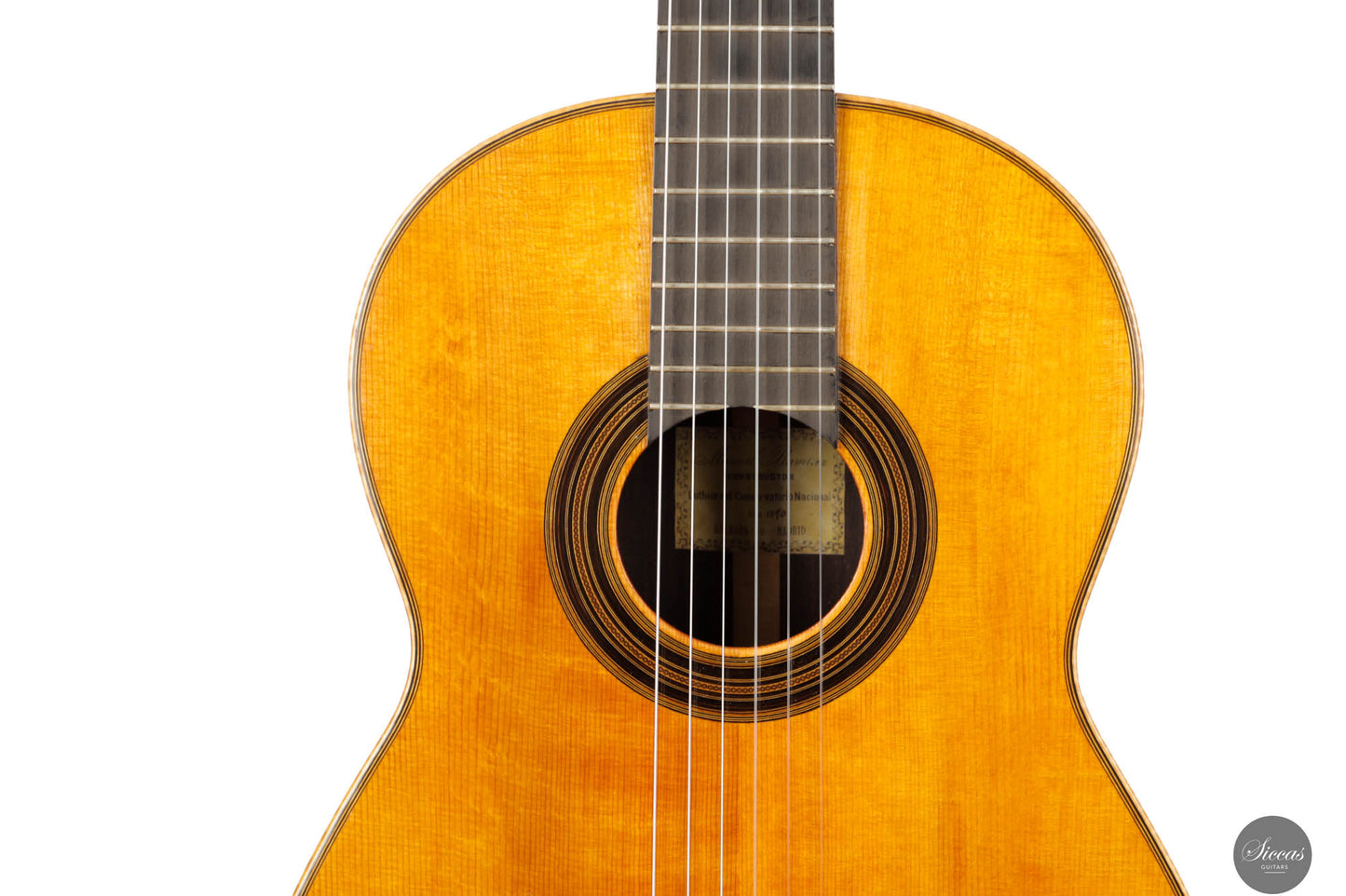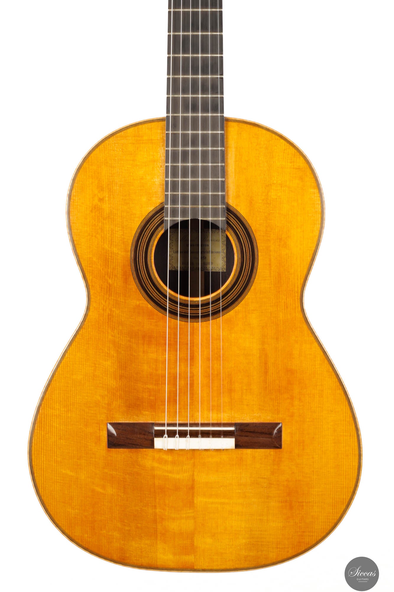 This 1910 Manuel Ramirez copy, a stunning creation dated 2022 and numbered 249, emerges from the esteemed workshop of Lorenzo Frignani, a maestro in the world of luthiery. This guitar is more than an instrument; it's a bridge across time, faithfully capturing the essence of its historic counterpart. The guitar's old-world tone immediately transports the player and listener alike to a bygone era of guitar craftsmanship. This remarkable replication is a testament to Frignani's deep understanding and appreciation of the original 1910 Manuel Ramirez guitar. His unique position as both a luthier and an important collector, especially as the owner of the original Ramirez, has afforded him unlimited access to study and replicate its intricacies. The resulting instrument is not just a copy, but a near-perfect echo of the original, reflecting Frignani's dedication to authenticity and precision in craftsmanship.