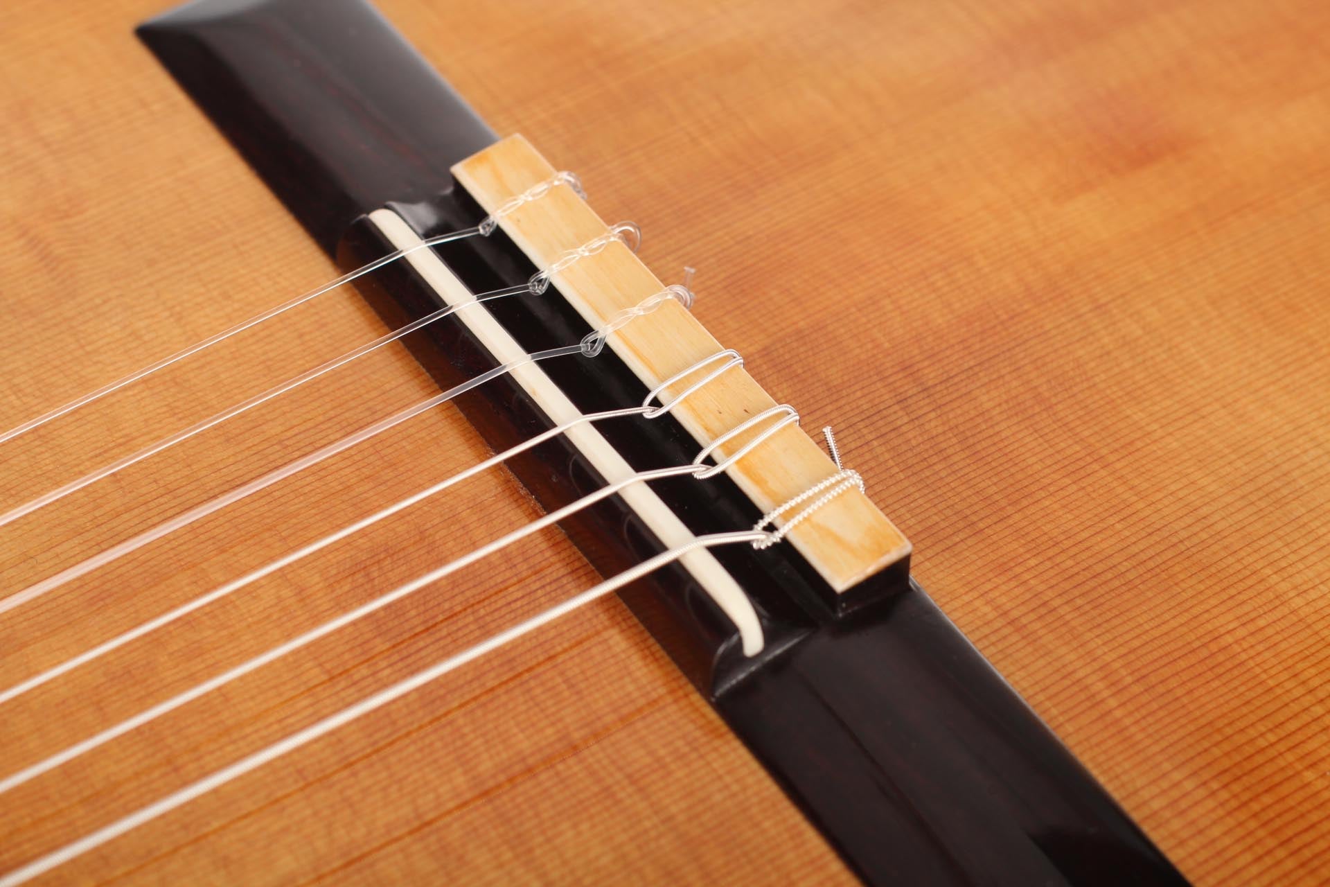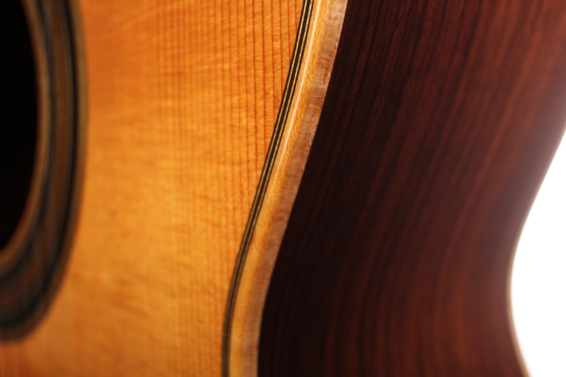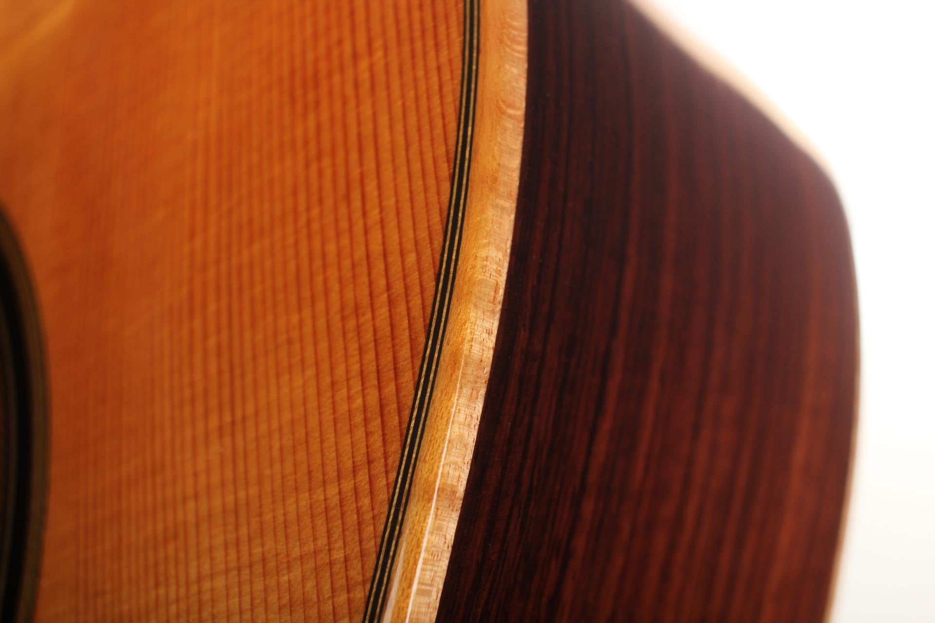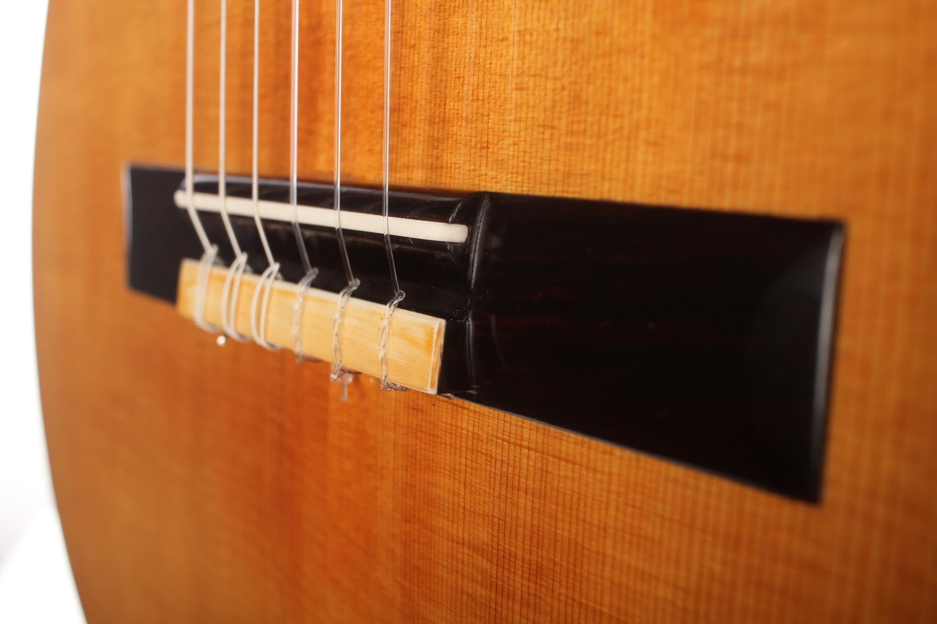Every instrument constructed in Lorenzo Frignani's workshop is made of the highest quality seasoned woods, as for example this special 1910 Manuel Ramirez copy. The original is part of his private collection. Lorenzo's goal is to build a guitar that is as close to the original as possible regarding construction and quality of sound. He enjoys to copy original guitars and to create a sound that is rare these days. This new Manuel Ramirez copy has a spruce top and Indian Rosewood back and sides. The French-polish finish was “aged” to give the instrument a used look. The craftsmanship is impressive and shows the love for every detail. The sound is lovely and comes extremely close to the original instrument – it has a beautiful warm old world sound. Hear and see our video that we recorded with this guitar to get an impression and feeling of this magnificent instrument. As tuning machines Lorenzo Frignani has chosen Alessi tuners, which fit aesthetically very well with the instrument. A Hiscox Pro II case is included.