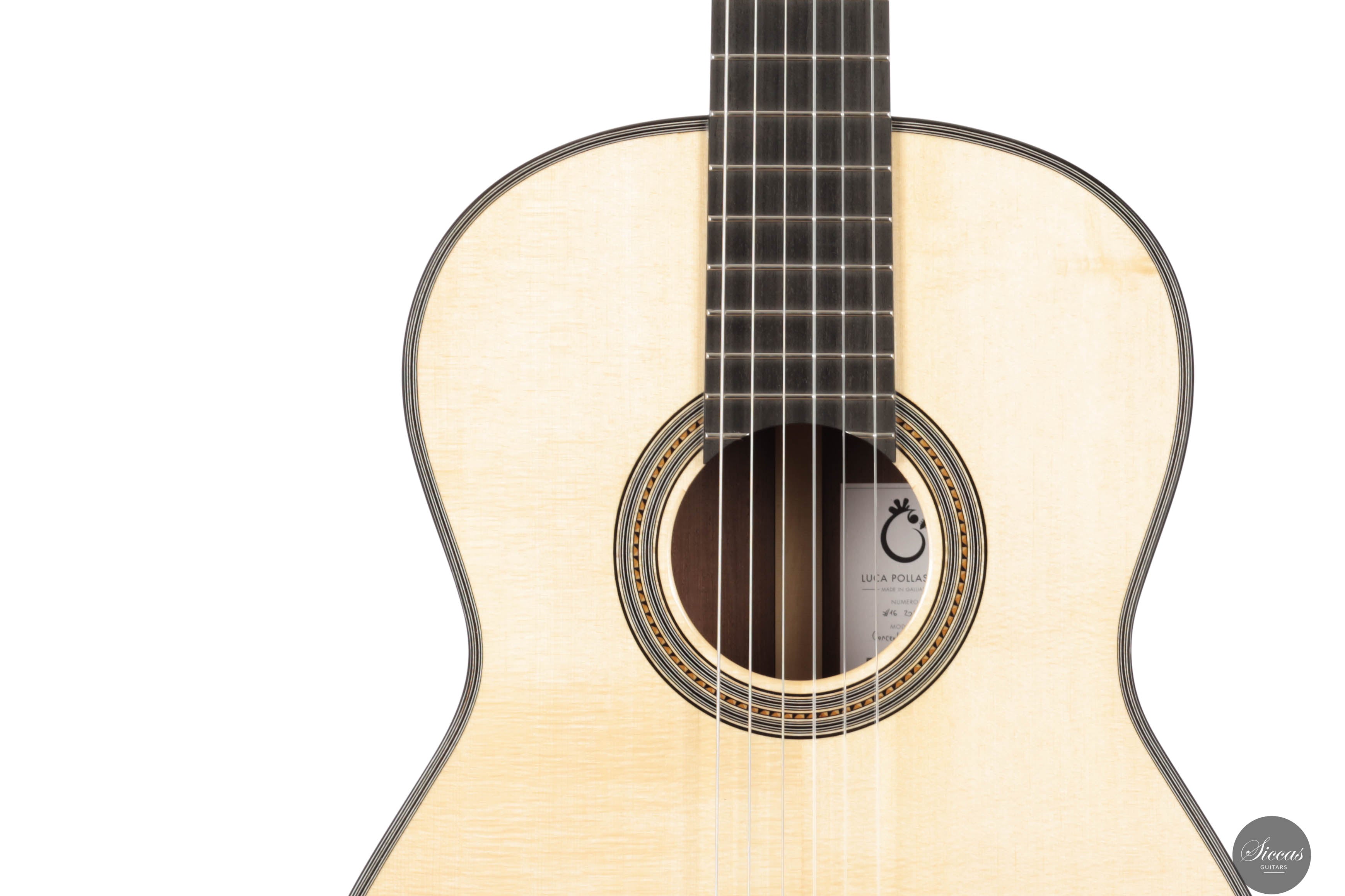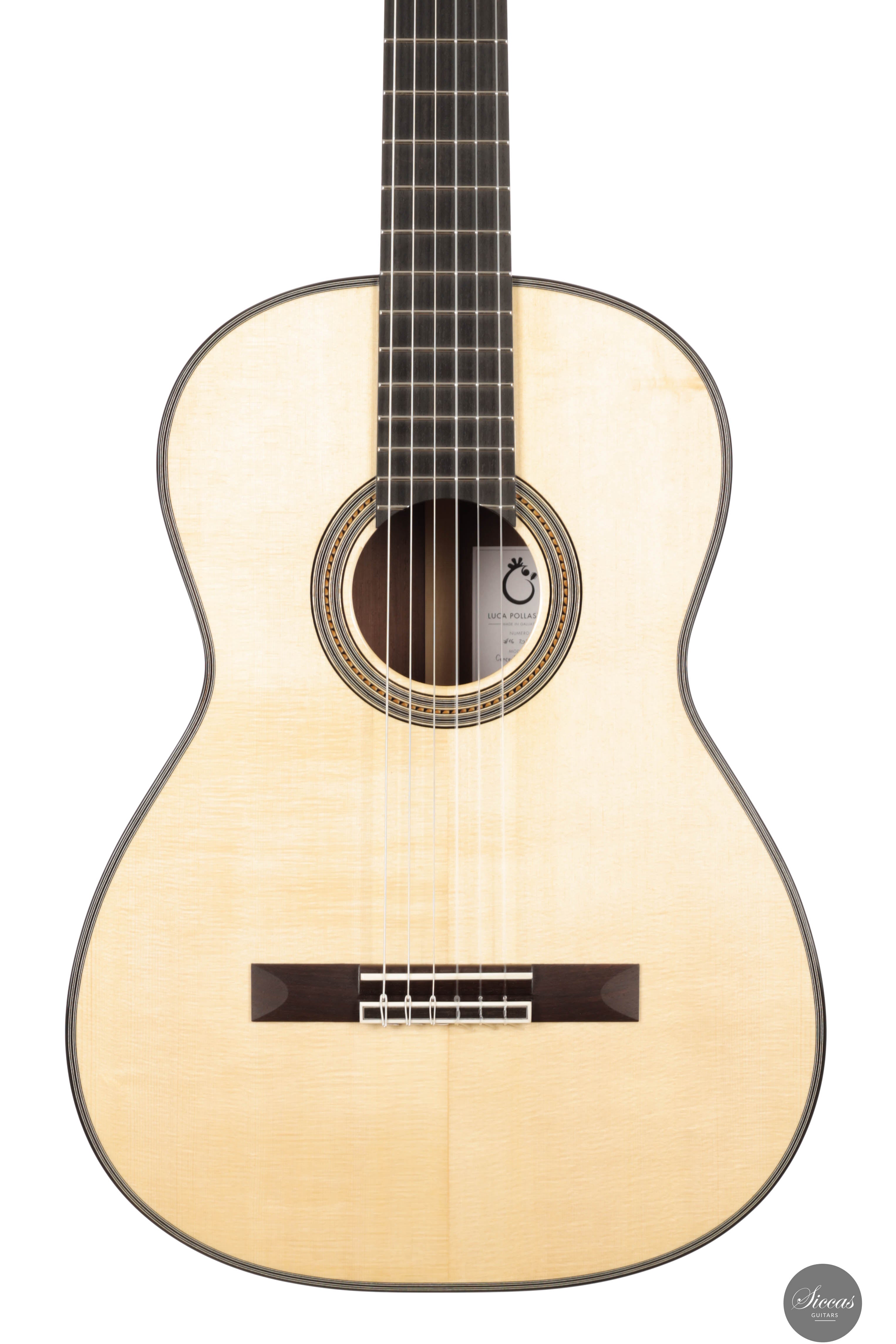 Born in Galliate in 1994, Luca Pollastro discovered his passion for woodworking and music at a young age. During his final years of high school, he began building musical instruments as a self-taught craftsman. In 2015, he enrolled at the Civica Scuola di Liuteria in Milan, where he specialized in plucked instruments and studied under the guidance of Lorenzo Lippi and Fabio Bonardi. He graduated in 2019 as a Master Luthier. Following his studies, he completed an apprenticeship with Aldo Illotta, further refining his skills in the construction of classical and acoustic guitars. In 2020, he established his own workshop in Galliate, focusing on building concert classical guitars and performing high-quality repairs on plucked instruments. In 2024, he made his debut as an exhibitor at the prestigious Roma Expo Guitars. Luca’s guitar-making philosophy is rooted in tradition and inspired by the great masters of the past, while remaining attentive to the needs of today’s performers. His meticulous selection of woods, precision in construction, and dedication to sound quality and playability have made his instruments increasingly sought after by discerning guitarists.About the guitar
