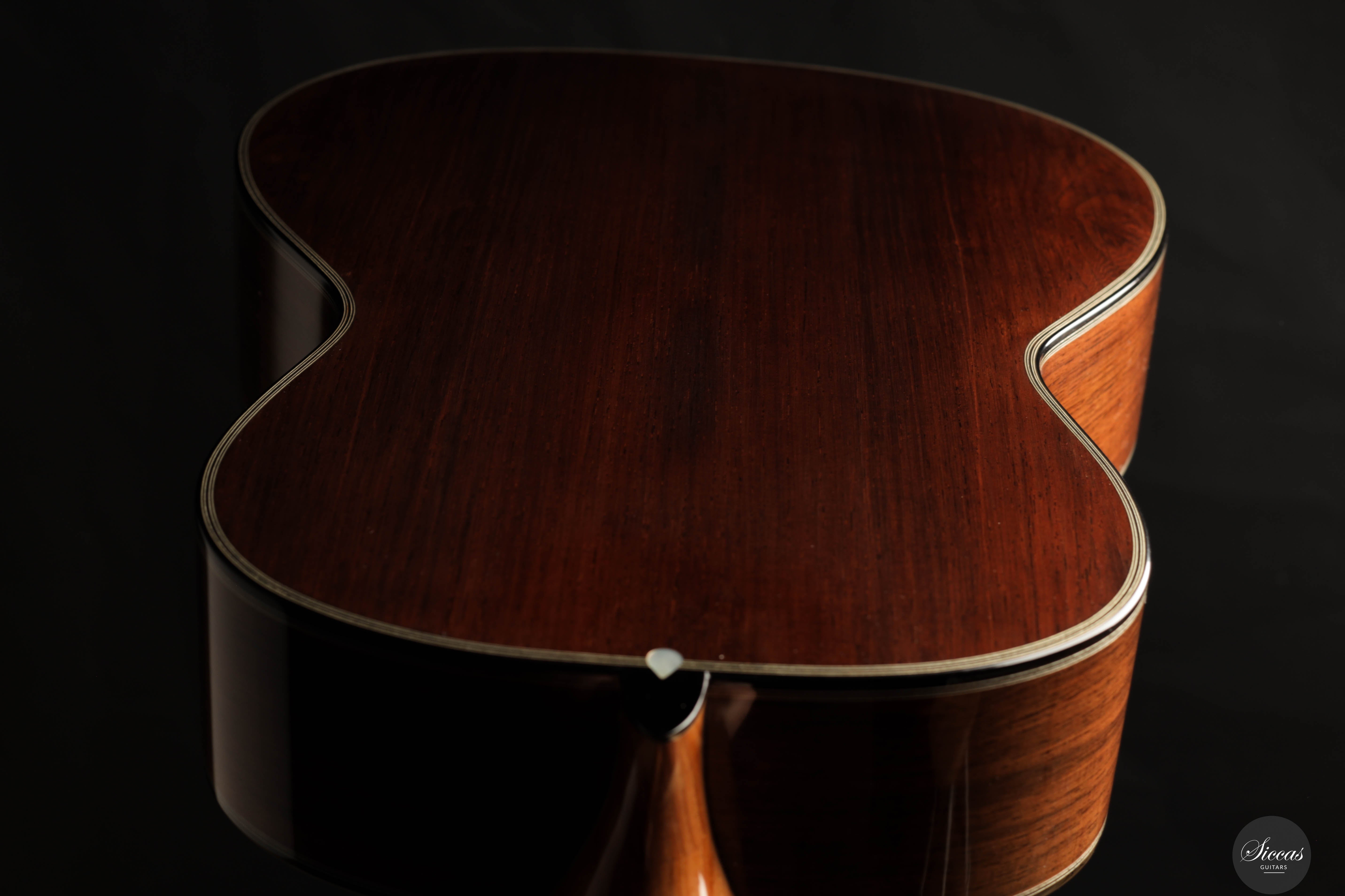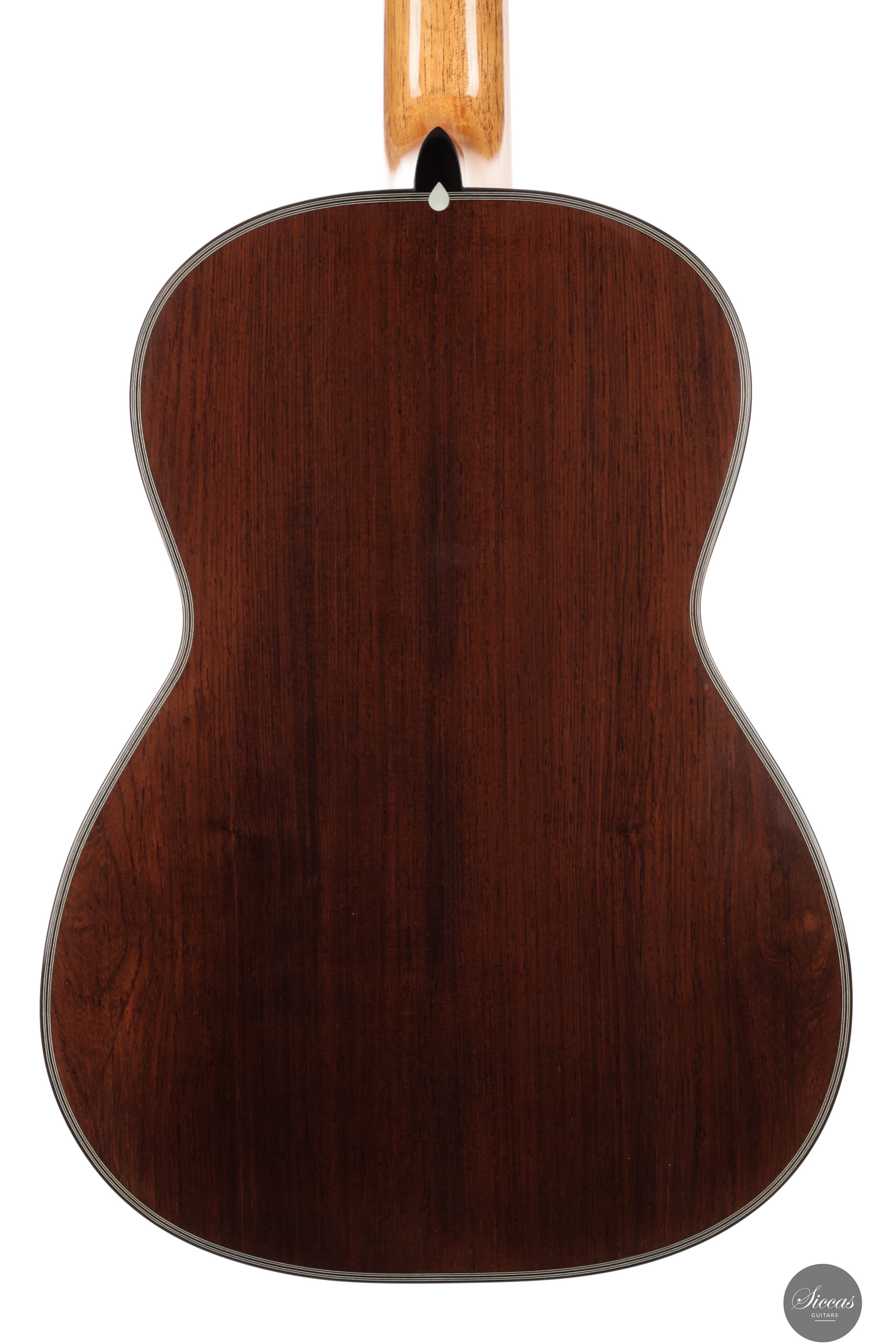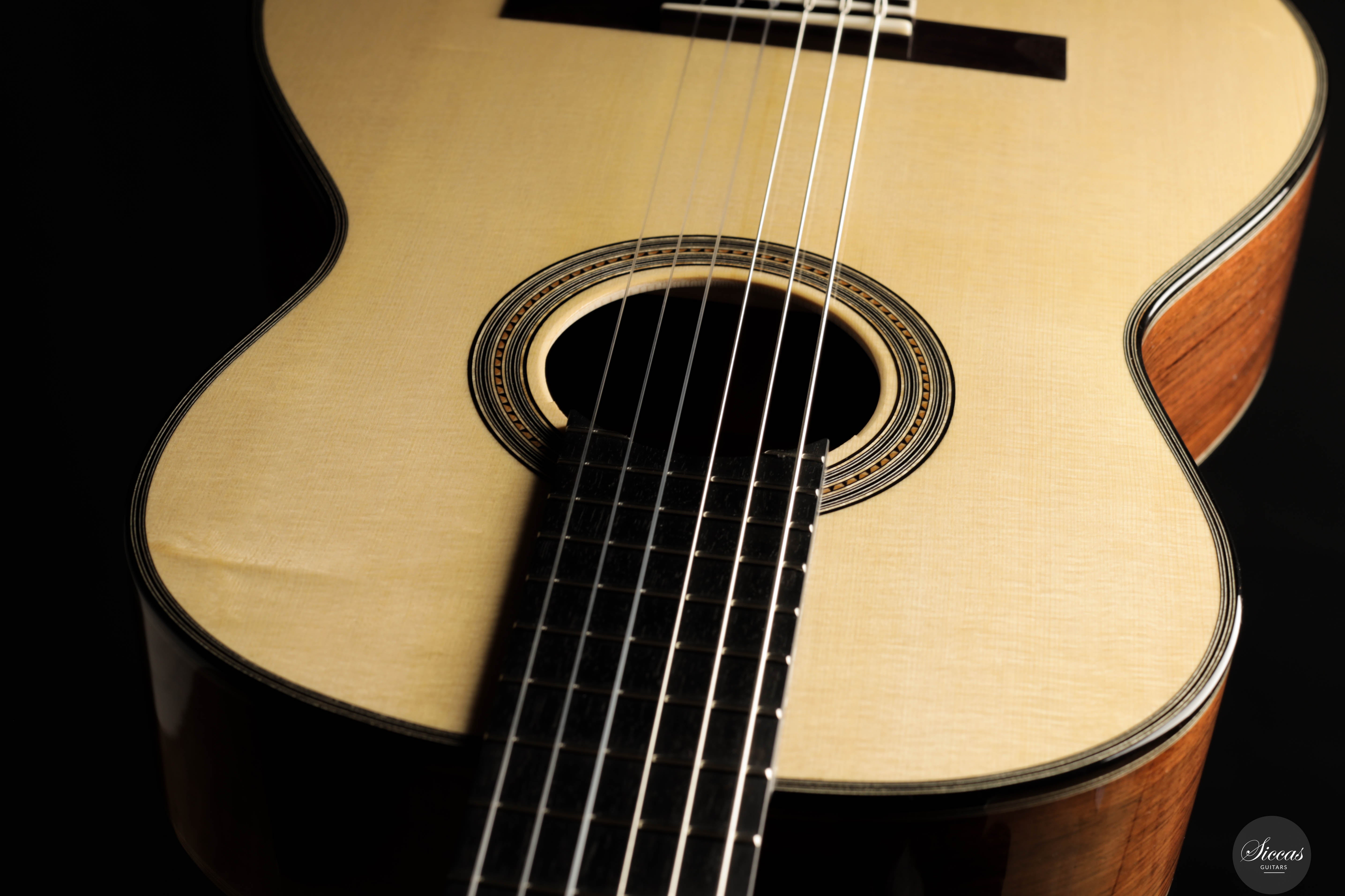 The REG 2025 Limited Edition “Concerto No. 16” is a continuation of Luca Pollastro’s personal concert guitar model. It features a traditional seven-fan bracing system assembled with natural hide glue. The result is an instrument that delivers a dynamic, refined voice with strong projection, tonal clarity, and a warm, expressive character that blends traditional resonance with contemporary demands. For this model, Luca selected an Italian spruce top and Madagascar rosewood for the back and sides, both carefully chosen for their tonal properties and visual beauty. The neck is carved from Spanish cedar and paired with an African ebony fingerboard. A standout detail is the custom-carved headstock, which adds an elegant visual focal point to the instrument. The guitar is finished with a hand-applied French polish that enhances both the wood’s natural texture and the overall resonance. The binding and purfling elements reflect Luca’s refined taste for subtle ornamentation, bringing cohesion to the instrument’s visual identity. Every element, from construction to decoration, expresses the clarity of his vision and the maturity of his craft.Regular care extends the life of the instrument