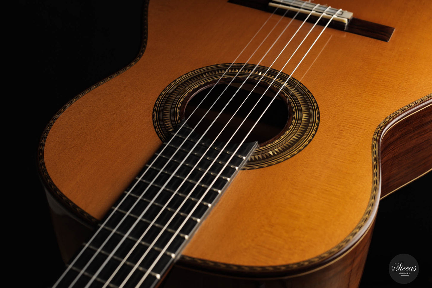 The Manuel Adalid La Catedral 10 Anniversary model is a veritable pinnacle of craftsmanship, representing the zenith of the Adalid line. The majesty of this instrument emanates from its magnificent cedar double-top, which enables the guitar to achieve a staggering volume, adding depth and resonance to each note. Exceptional Madagascar back and sides are skillfully incorporated into the design of this guitar. Notably, they are doubled with cypress, an innovative construction method that greatly augments the structural stability of the instrument. Beyond its structural grandeur, the Manuel Adalid La Catedral 10 Anniversary model excels in playability. The expertly crafted neck and meticulously designed fretboard afford an unparalleled tactile experience, allowing musicians of all styles to express their creativity unimpeded.